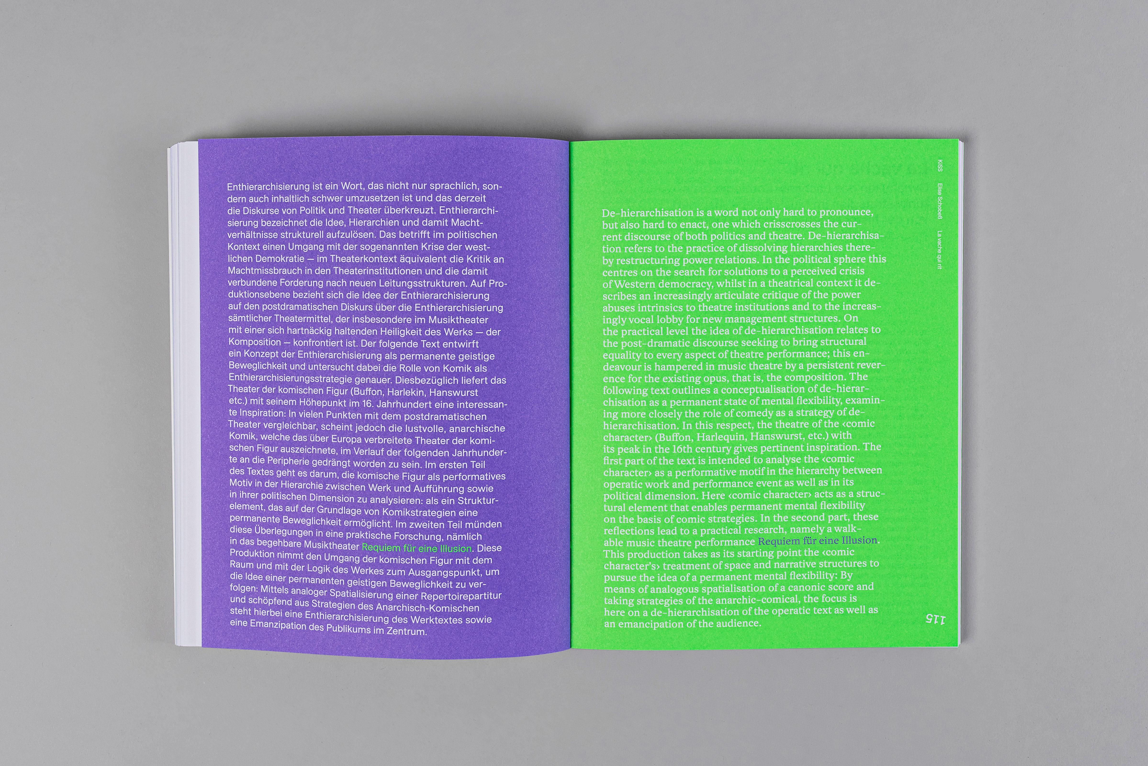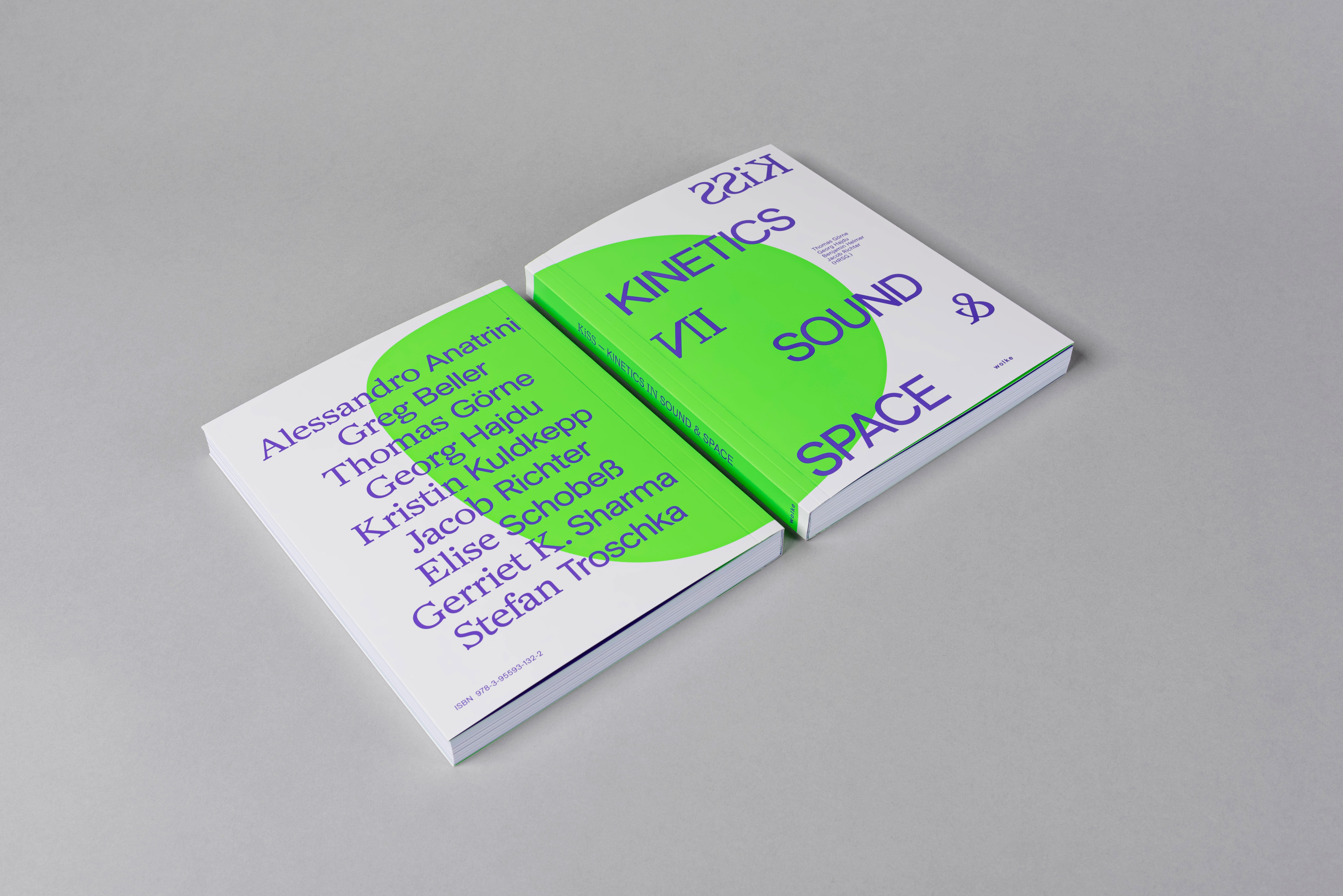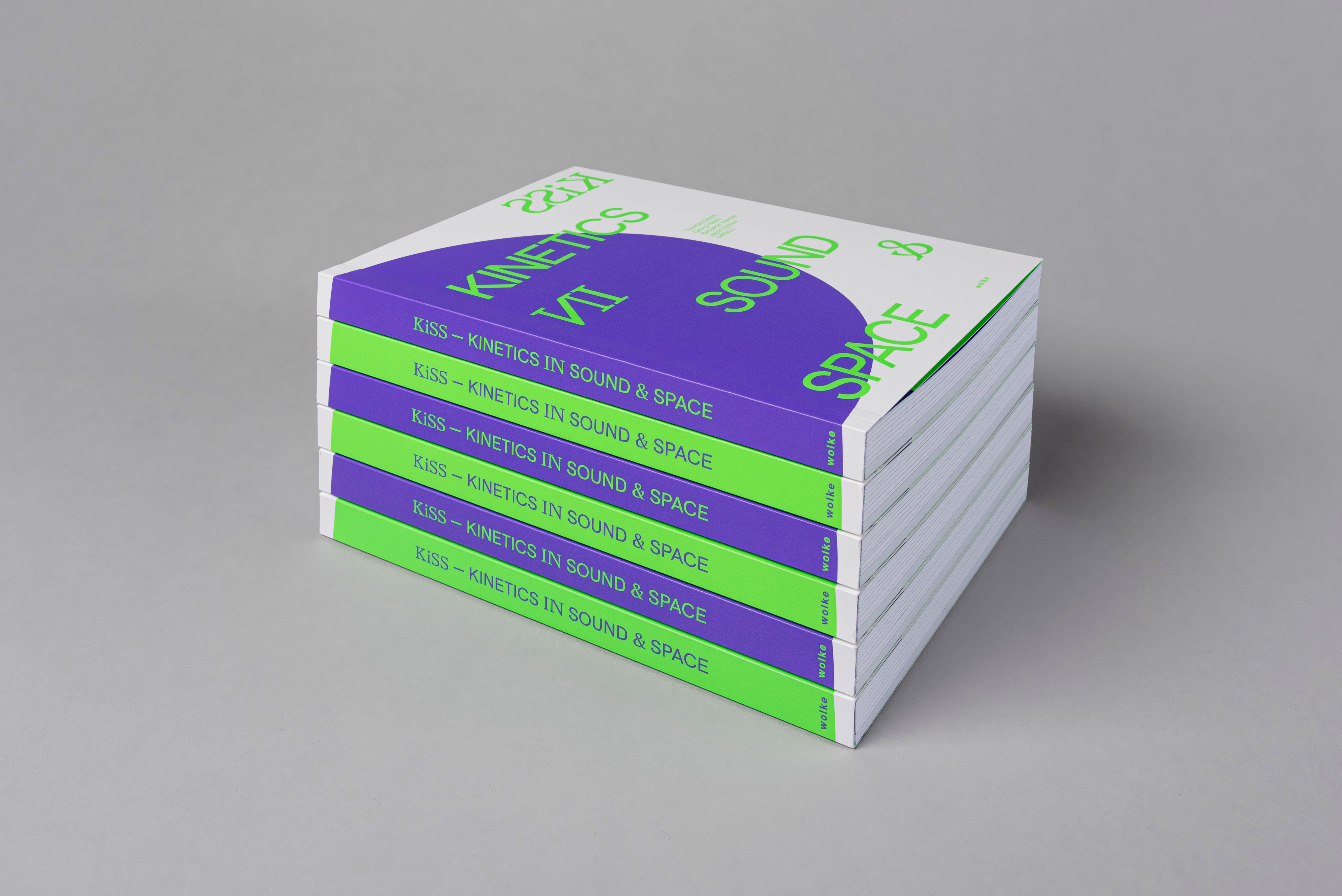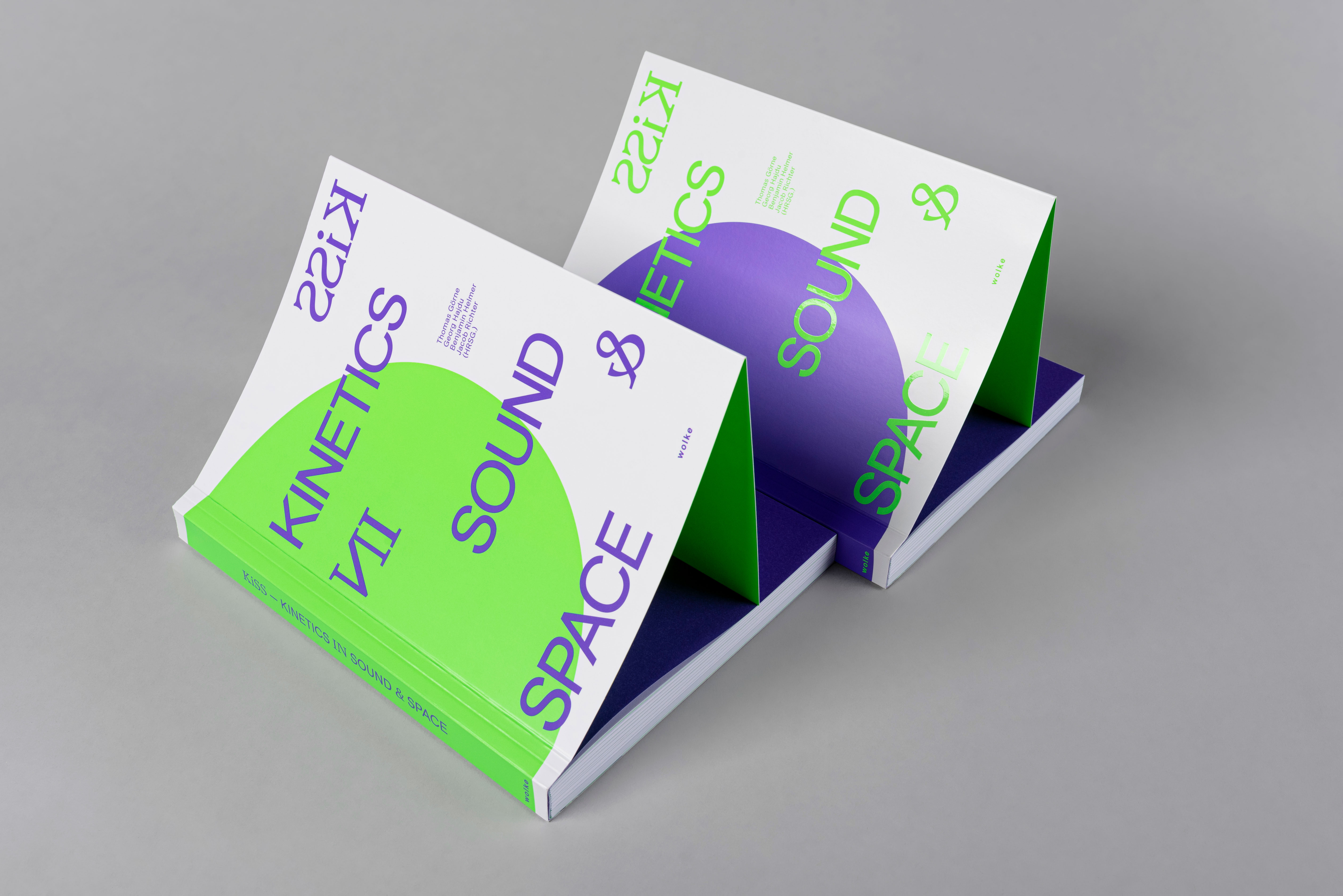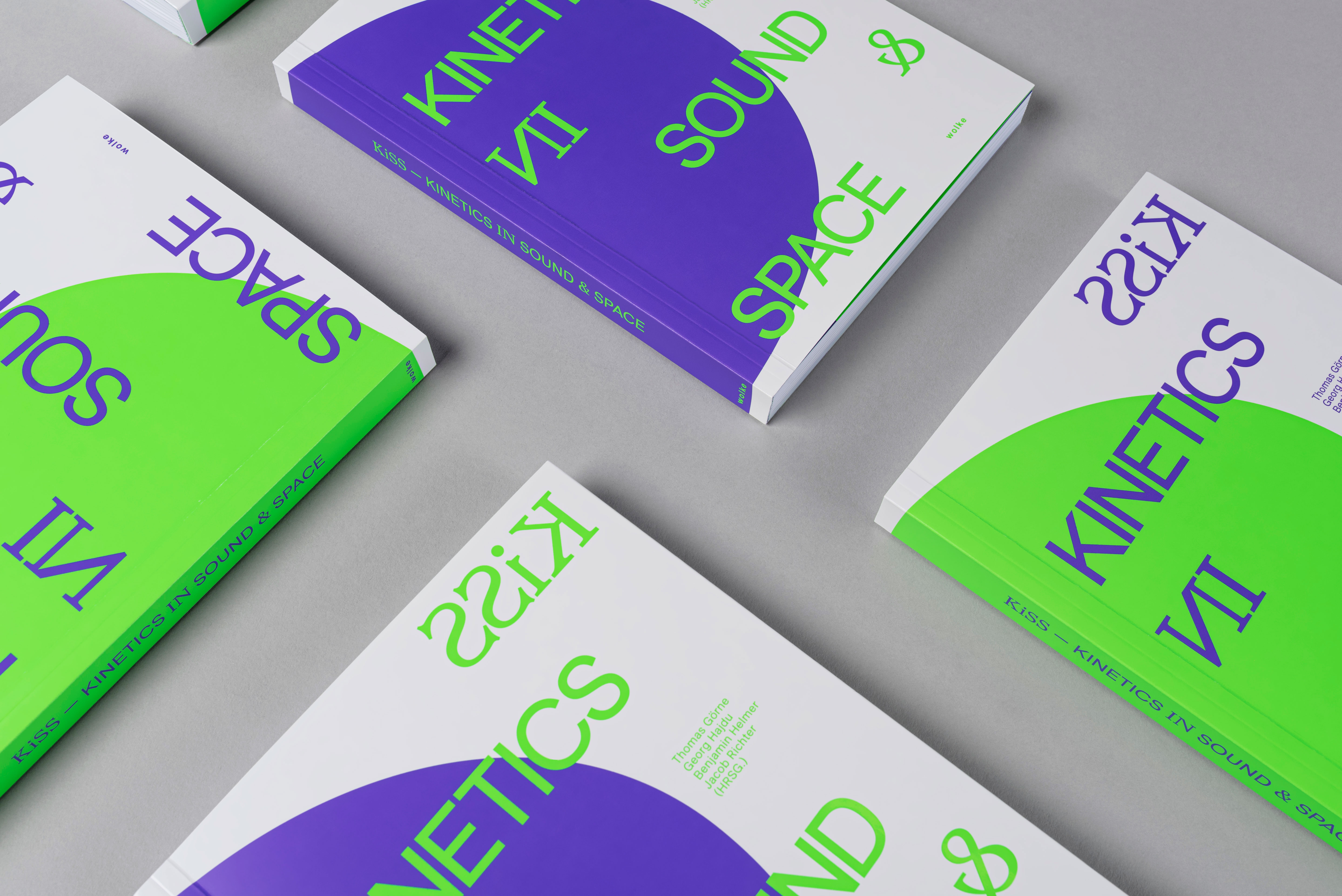 To enhance the dynamic nature of the research presented in the book, we developed a design concept centered around the concepts of contrast and movement. We recognized that presenting such a dynamic topic in a static medium would create an inherent contrast, and we wanted to emphasize this contrast through our design. The cover features two contrasting designs with switching colors, while the entire book uses only two contrasting Pantone colors (neon green and purple) and black, including all images and graphics. Our design approach not only reflects the research content of the book but also represents our own artistic research on spatial sound and sound space.
