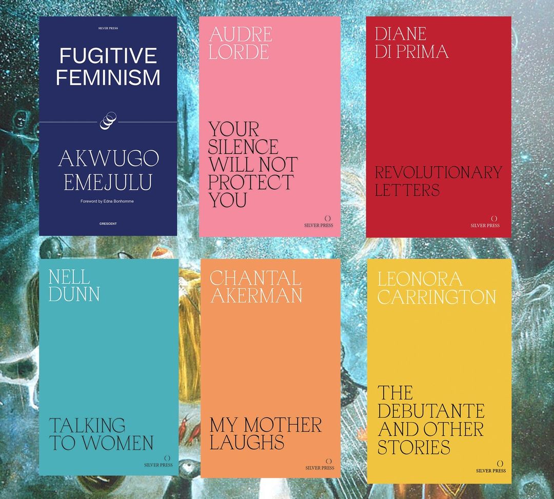 In 2017, Silver Press published The Debutante and Other Stories, the first collected edition of Leonora Carrington’s short stories, and Your Silence Will Not Protect You, which brought Audre Lorde’s essays and poems together in one volume for the first time. In 2018, they published a new edition of Nell Dunn’s book of conversations from 1965, Talking to Women. In autumn 2019, they brought out the first translation of the filmmaker Chantal Akerman’s memoir from 2013, My Mother Laughs. In 2021 Silver Press published Revolutionary Letters by poet Diane di Prima.