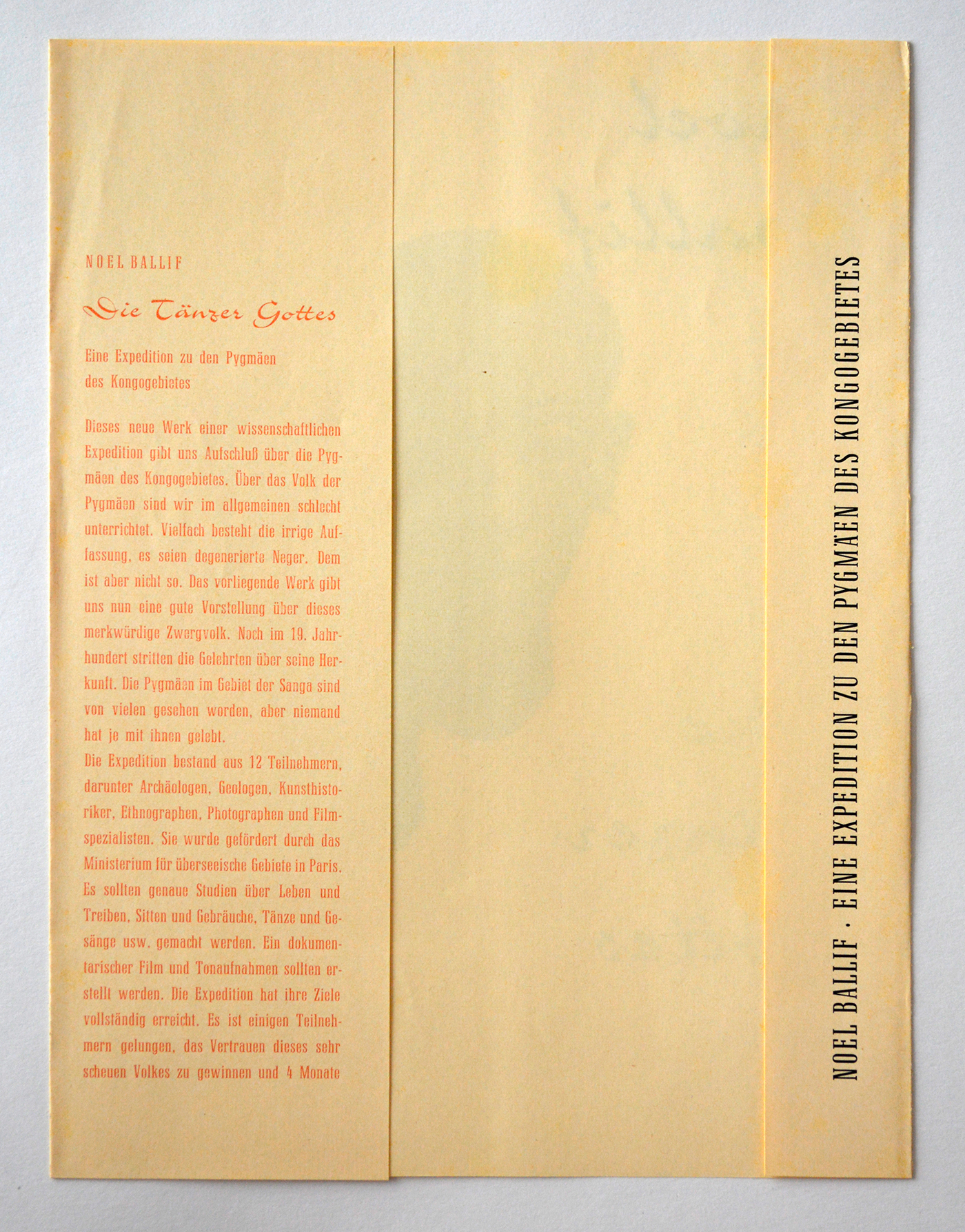 This book jacket for a German edition of Ballif’s Dancers of God, a book about pygmies, is one of the “serving suggestions” that were included in the specimen for Charme (1957). The designer of this brush script typeface is Helmut Matheis, who celebrates his 96th birthday today.