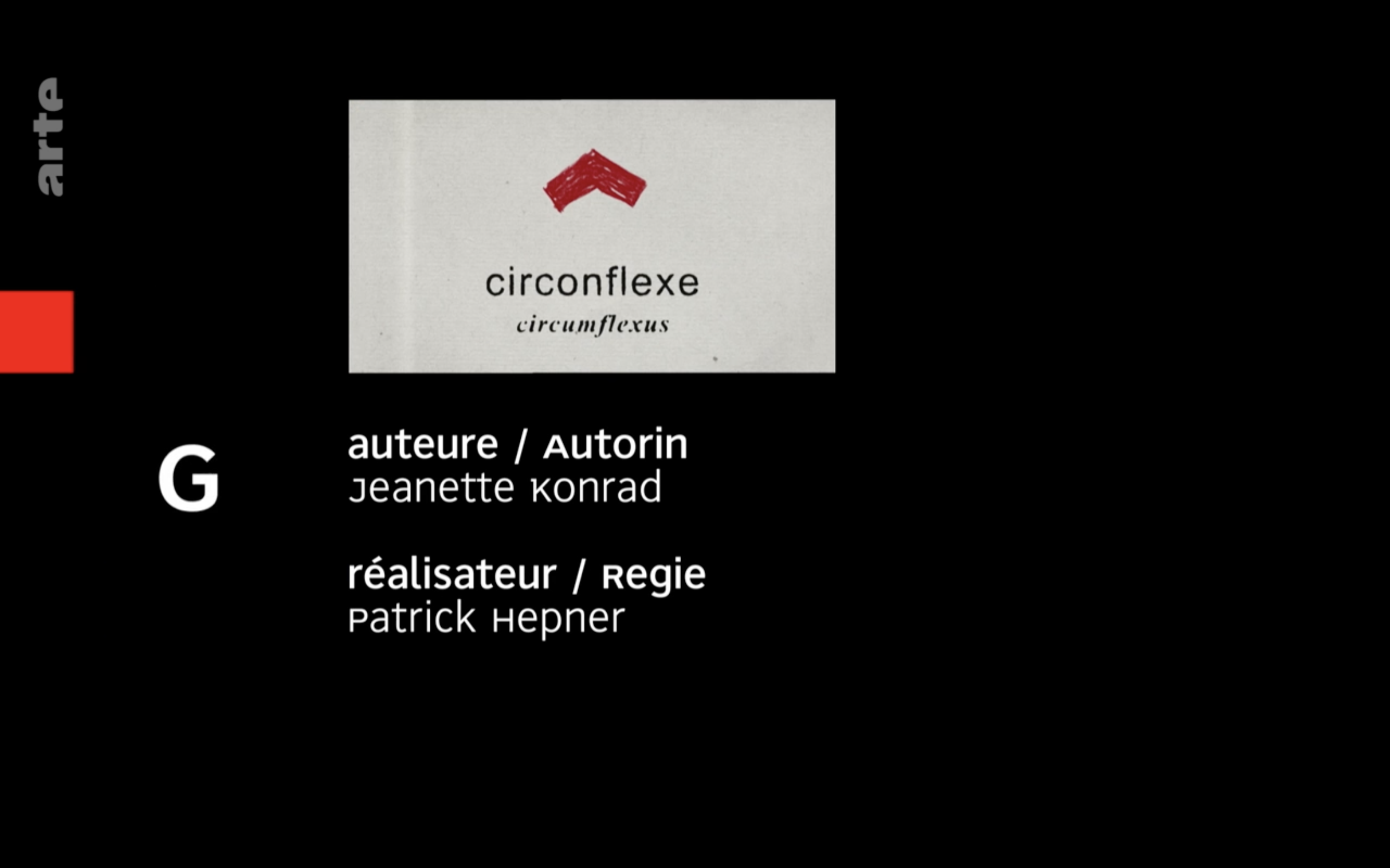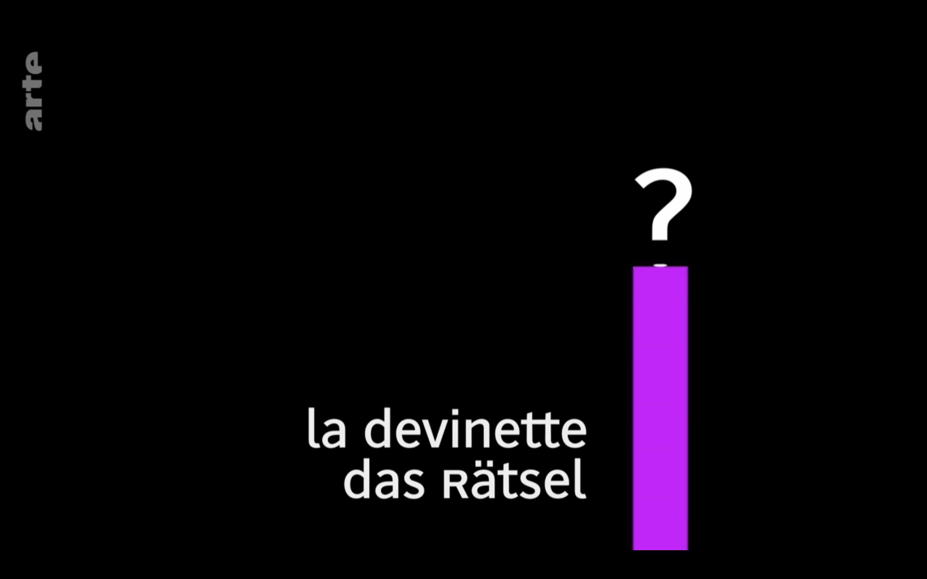 Each sequence is produced by a different illustrator and presenter, but the TV dressing remains the same. It is composed in BVH Newut, which has the particularity of having the uppercase letters at the same height as the lowercase letters. This characteristic allows representing the bilingual French-German texts in an equal gray value in a unique way.