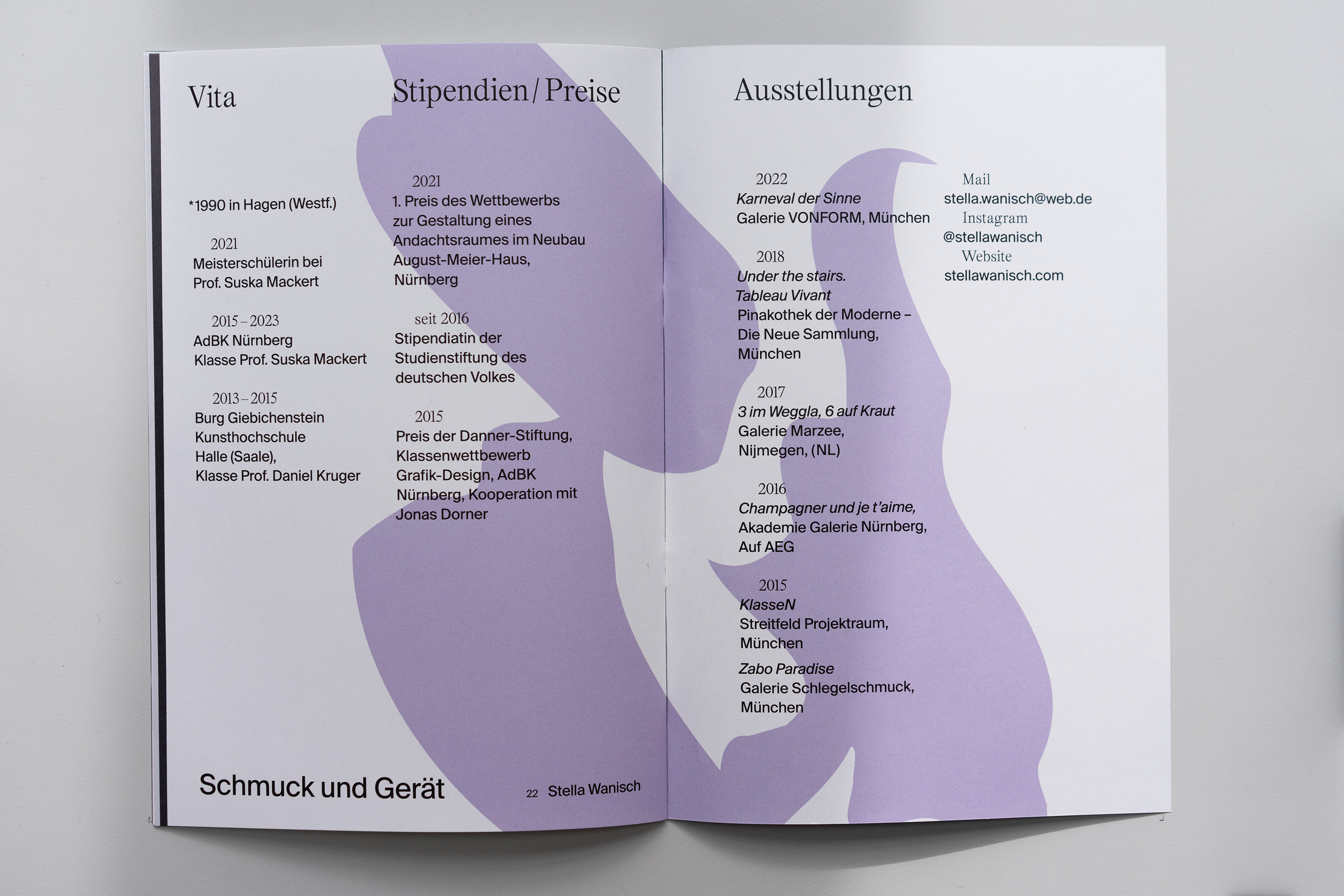 For the catalog we used Suisse Int’l and Suisse Intl Mono (by Swiss Typefaces) as well as Kéroïne (by Charlotte Rohde). The catalog was printed on Salzer Touch and Circle Offset Premium White paper.