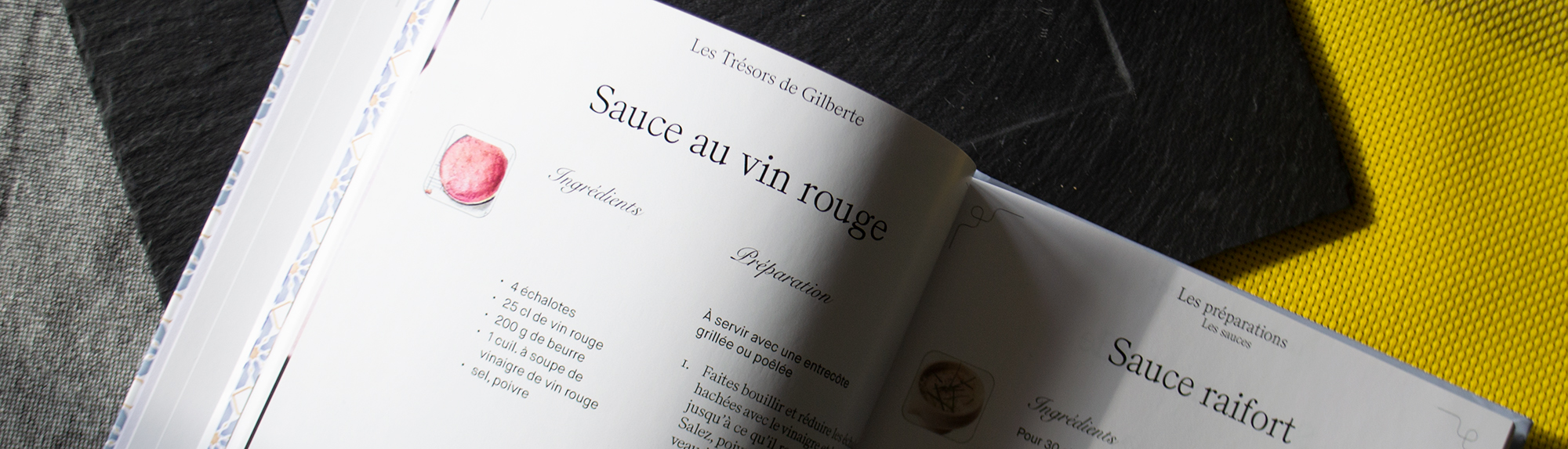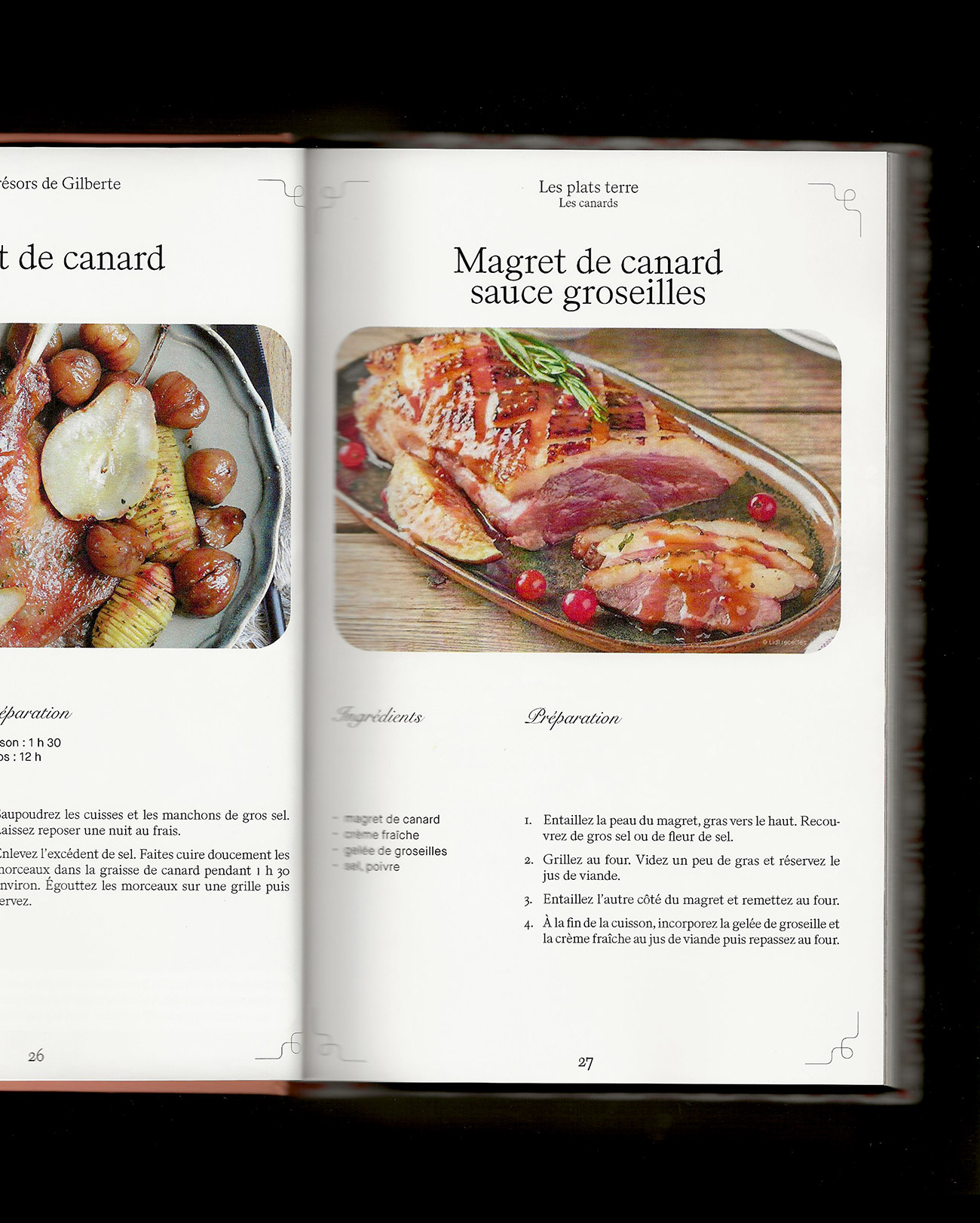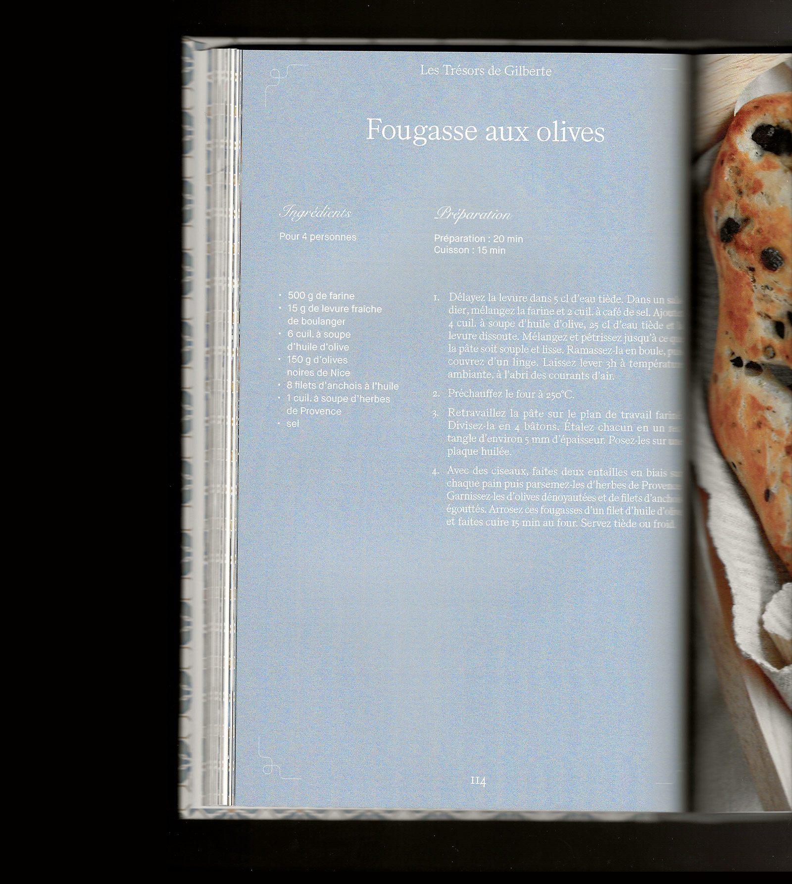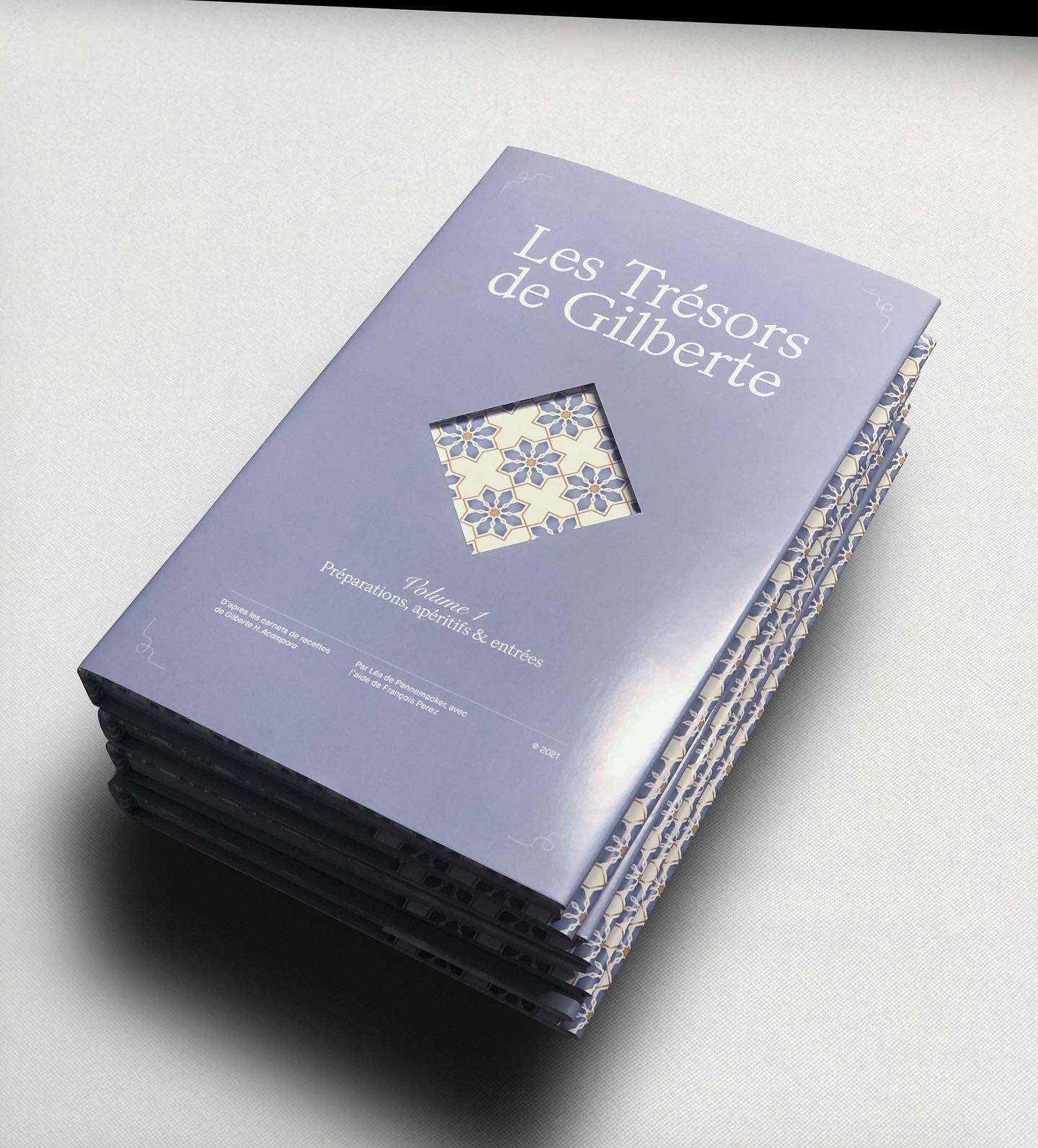 Les Trésors de Gilberte is a familial recipes book based on Gilberte H. Acampora’s kitchen notebooks. Book design by Léa de Pannemacker, setting in Kalice (by Margot Lévêque), Maison Neue (by Milieu Grotesque), and Snell Roundhand (by Matthew Carter).