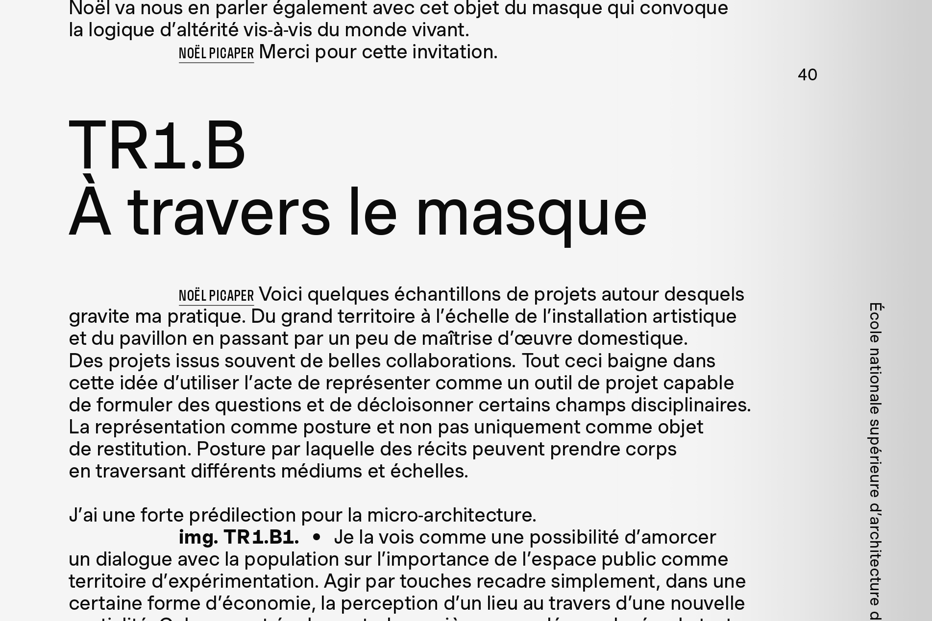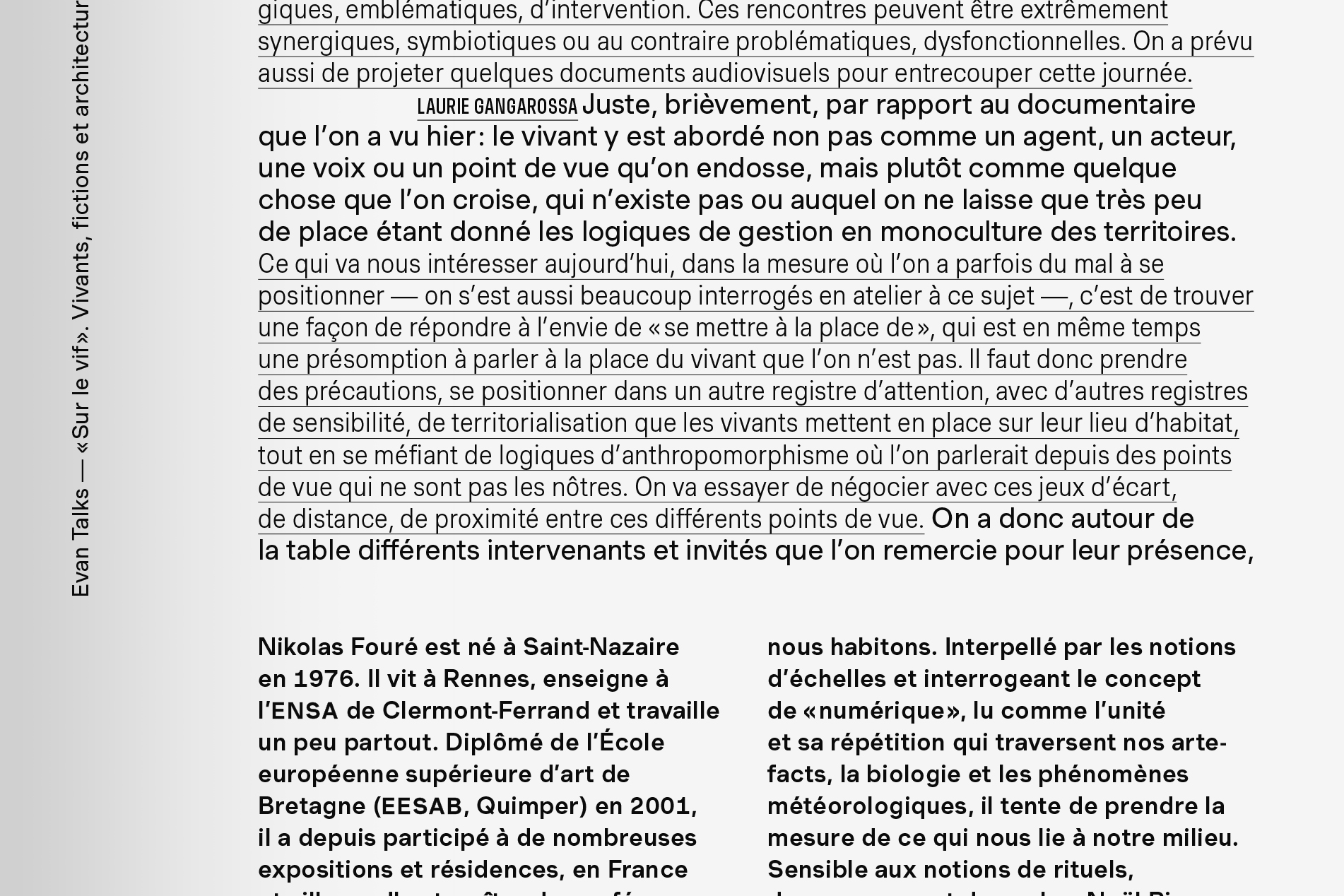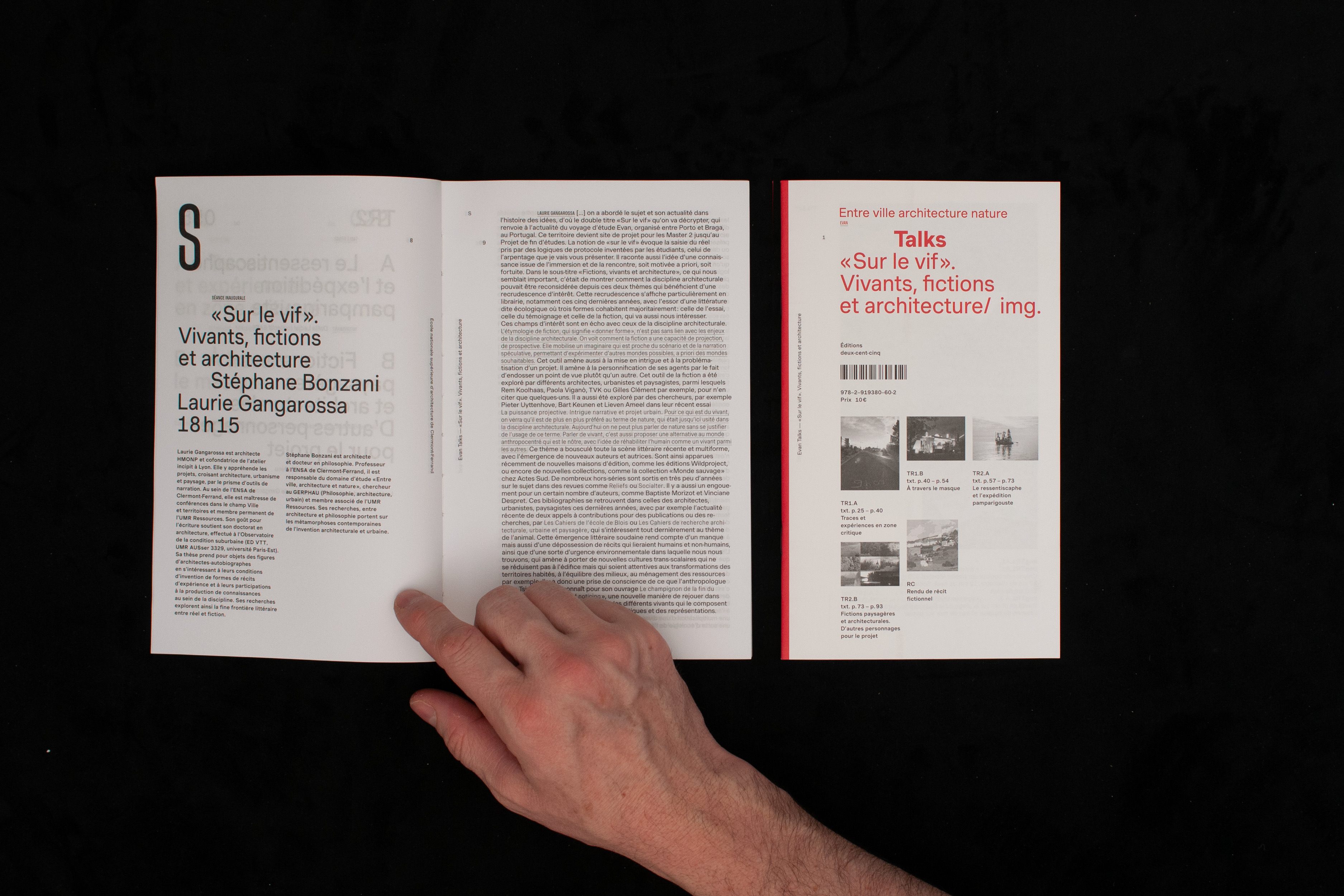 «Sur le vif». Vivants, fictions et architecture (“On the spot. Life, fiction and architecture”) was published by Éditions 205 in the “Talks” series dedicated to writings on architecture: