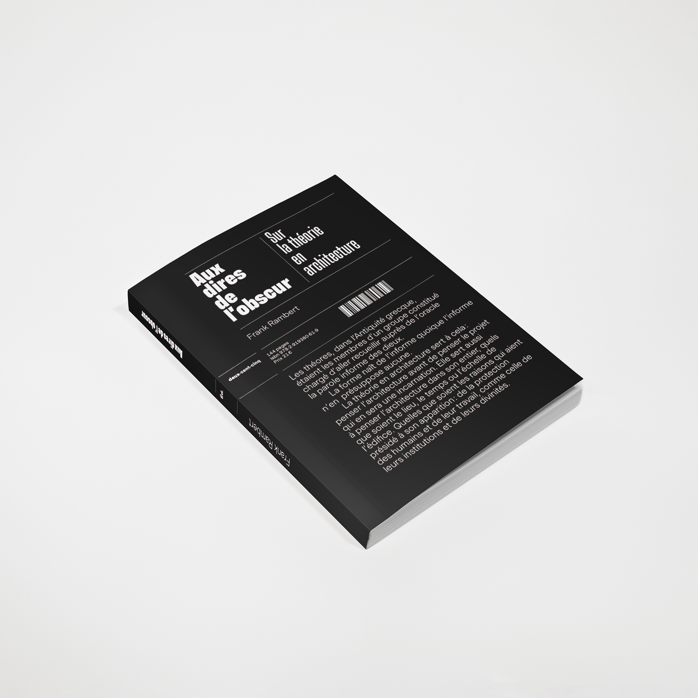 Aux dires de l’obscur. Sur la théorie en architecture (“In the words of the obscure. On theory in architecture”) written by Franck Rambert, was published by Éditions 205: