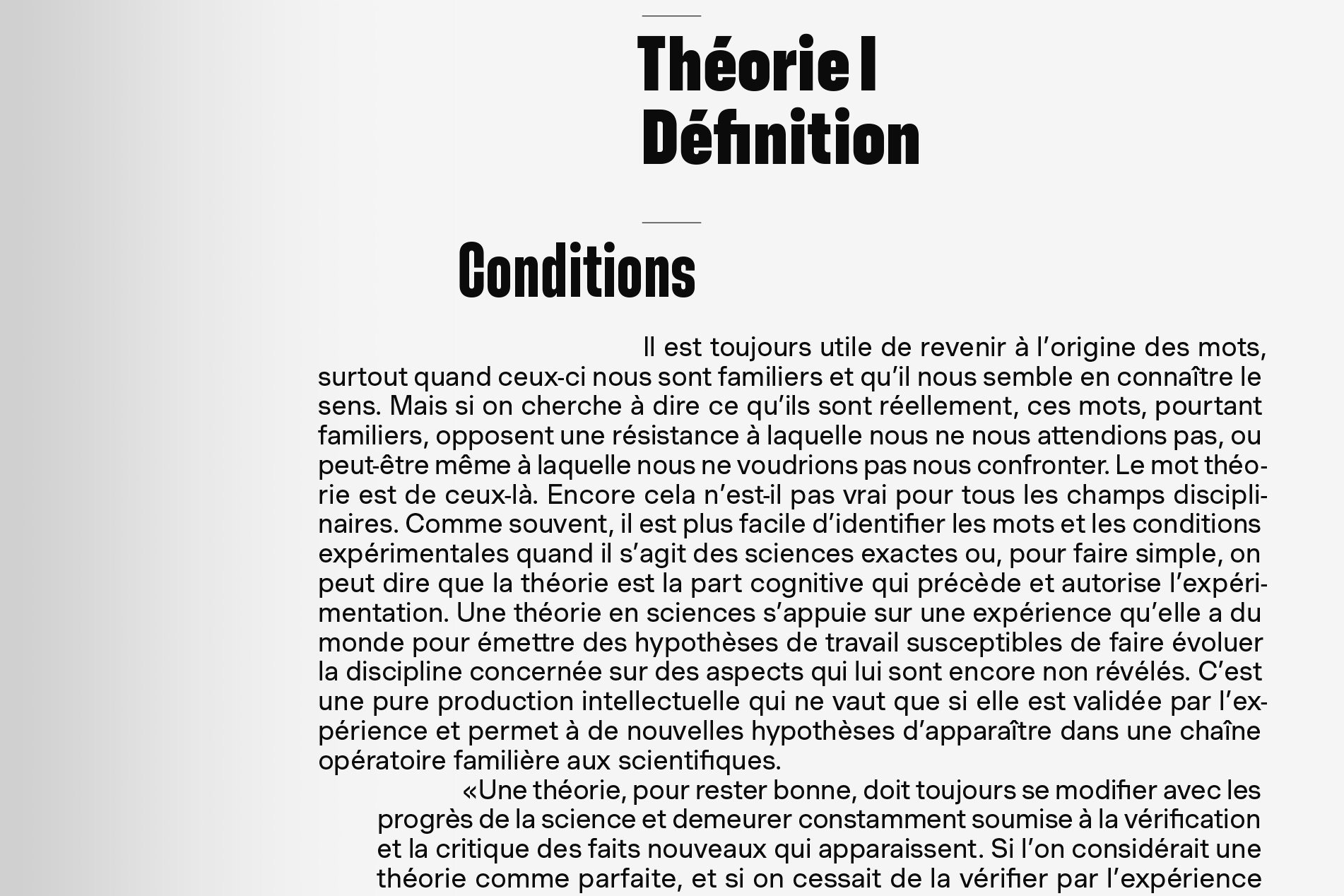 Theory in architecture is used to think about architecture before thinking about the project that will be an incarnation of it. It also serves to think the architecture as a whole, whatever the place, the time or the scale of the building.