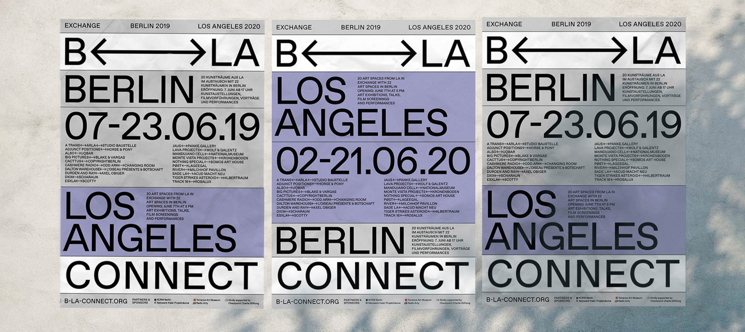 B-LA CONNECT is a platform to promote collaborations and networking between the creative communities of the twin cities of Berlin and Los Angeles. Over the next few years, a large exhibition and exchange project will take place between project spaces operated by artists, curators and collectives from both cities: in June 2019, programmes of 20 art spaces based in Los Angeles were exhibited in 22 art spaces and galleries from Berlin. In 2020, Berlin art spaces travelled to L.A. for a return visit.