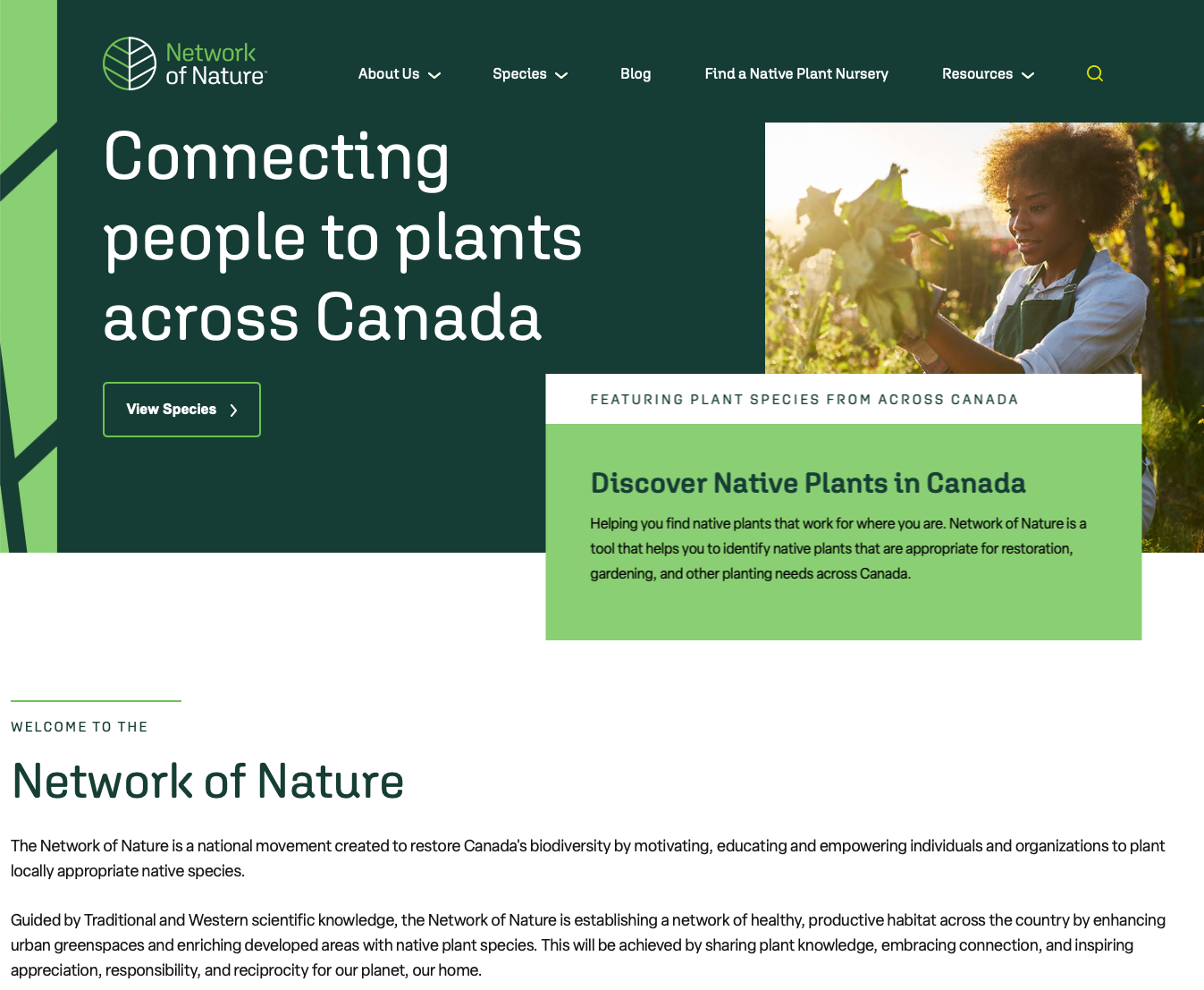 The Network of Nature is a national initiative to strengthen Canadian biodiversity by providing the inspiration, tools and knowledge to enhance existing greenspaces and naturalize developed areas with locally appropriate native plant species.