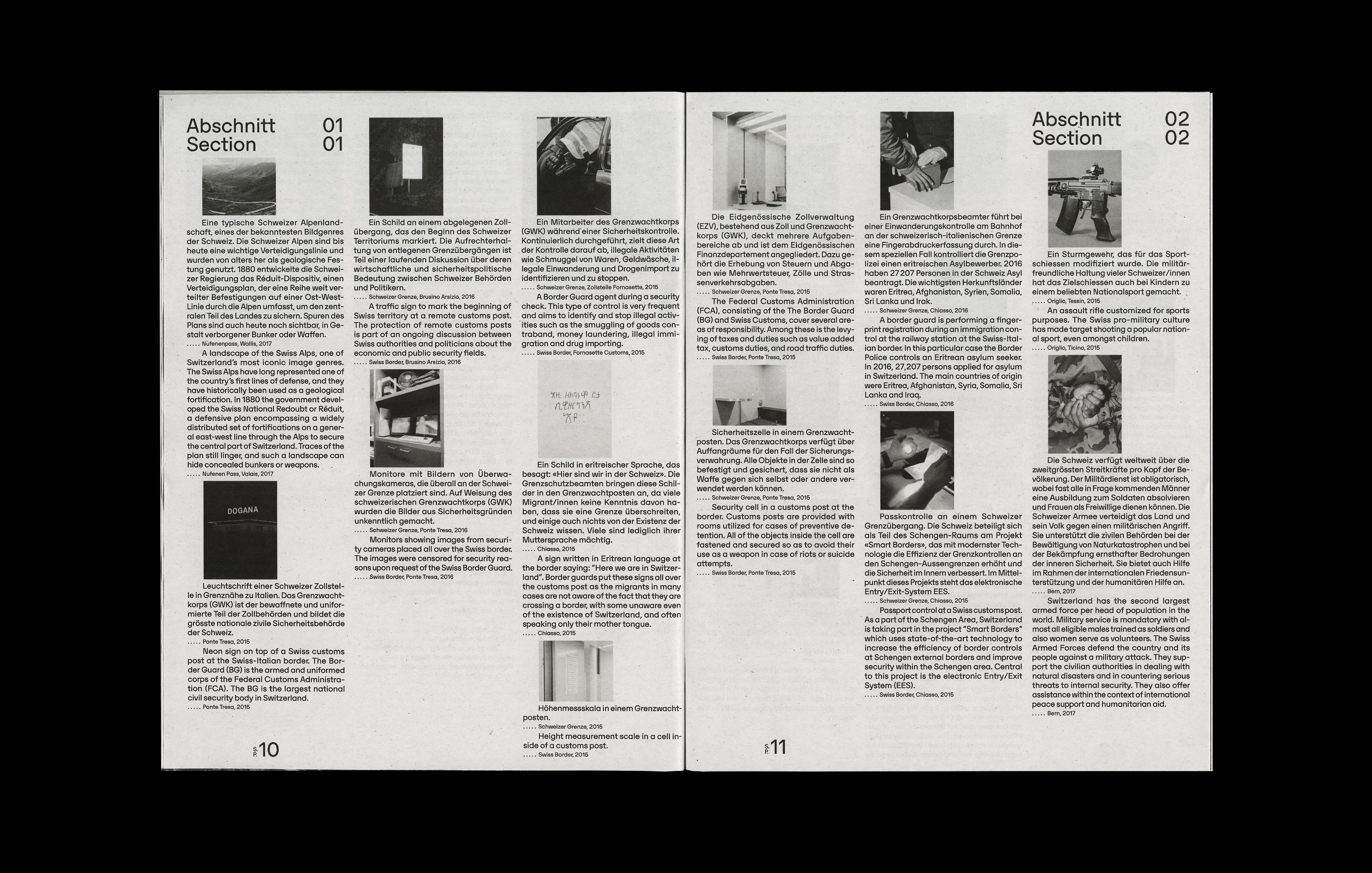 Between 2014 and 2018, Salvatore Vitale (born 1986 in Palermo, lives in Lugano and Zurich) set out on a visual research project, to discover the central underlying tenets for such a country to evolve, exist and endure. One of the central conditions he made out is the development of a culture based on securing, protecting, insuring and preventing, which is supported by the presence and production of national security. In order to do this, Vitale investigated the social and technological mechanisms underlying this preventive and defensive shield and takes a close look at the various institutional protagonists involved — police, military, customs and migration authorities, weather services, IT companies, and research institutions for robotics and artificial intelligence.