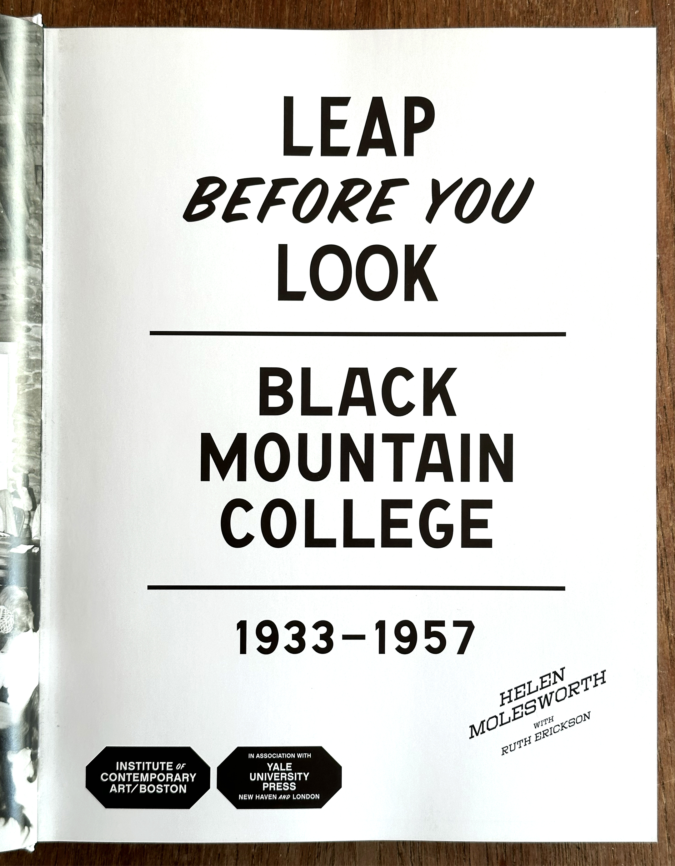 Leap Before You Look: Black Mountain College 1933–1957 is the catalogue accompanying the 2015 exhibition of the same name. Featuring works by more than ninety artists and extensive archival materials, the exhibition was organized by Helen Molesworth with Ruth Erickson and premiered at the Institute of Contemporary Arts, Boston. It then traveled to the Hammer Museum, Los Angeles, and the Wexner Center for the Arts in Columbus, Ohio.
