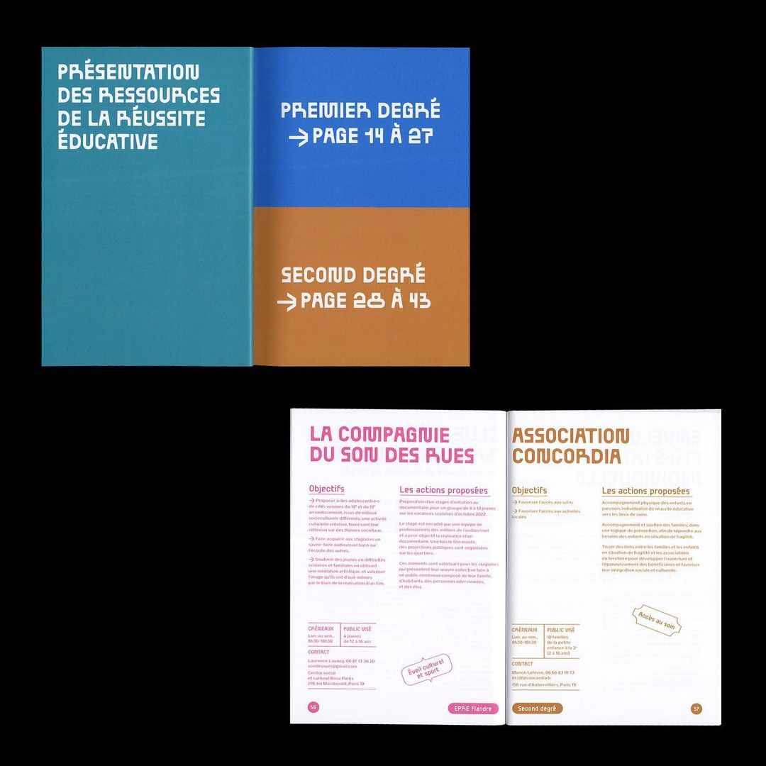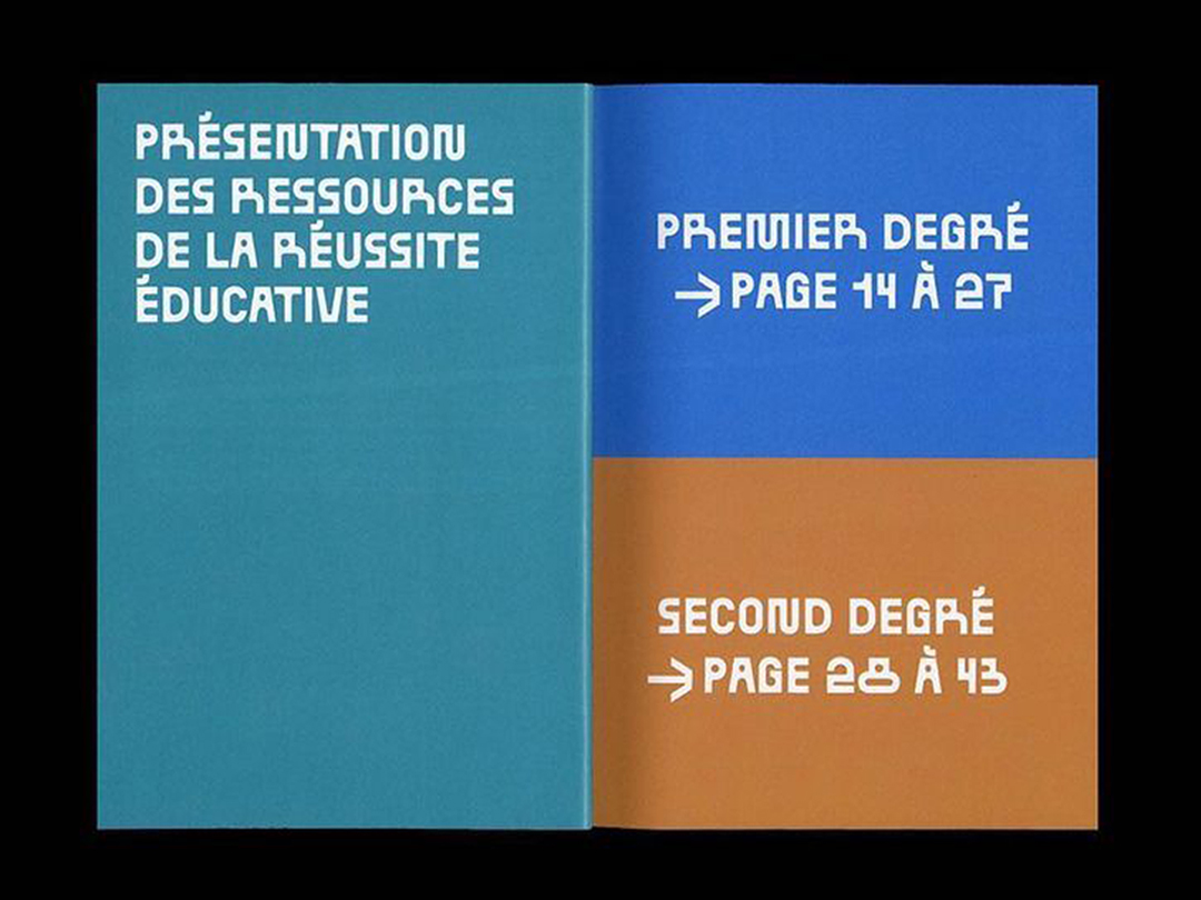 Two small booklets for Paris Maville’s Educational Success program, designed by Aéro Club Studio with BallPill typeface by Benoît Bodhuin and a yet unidentified sans serif.
