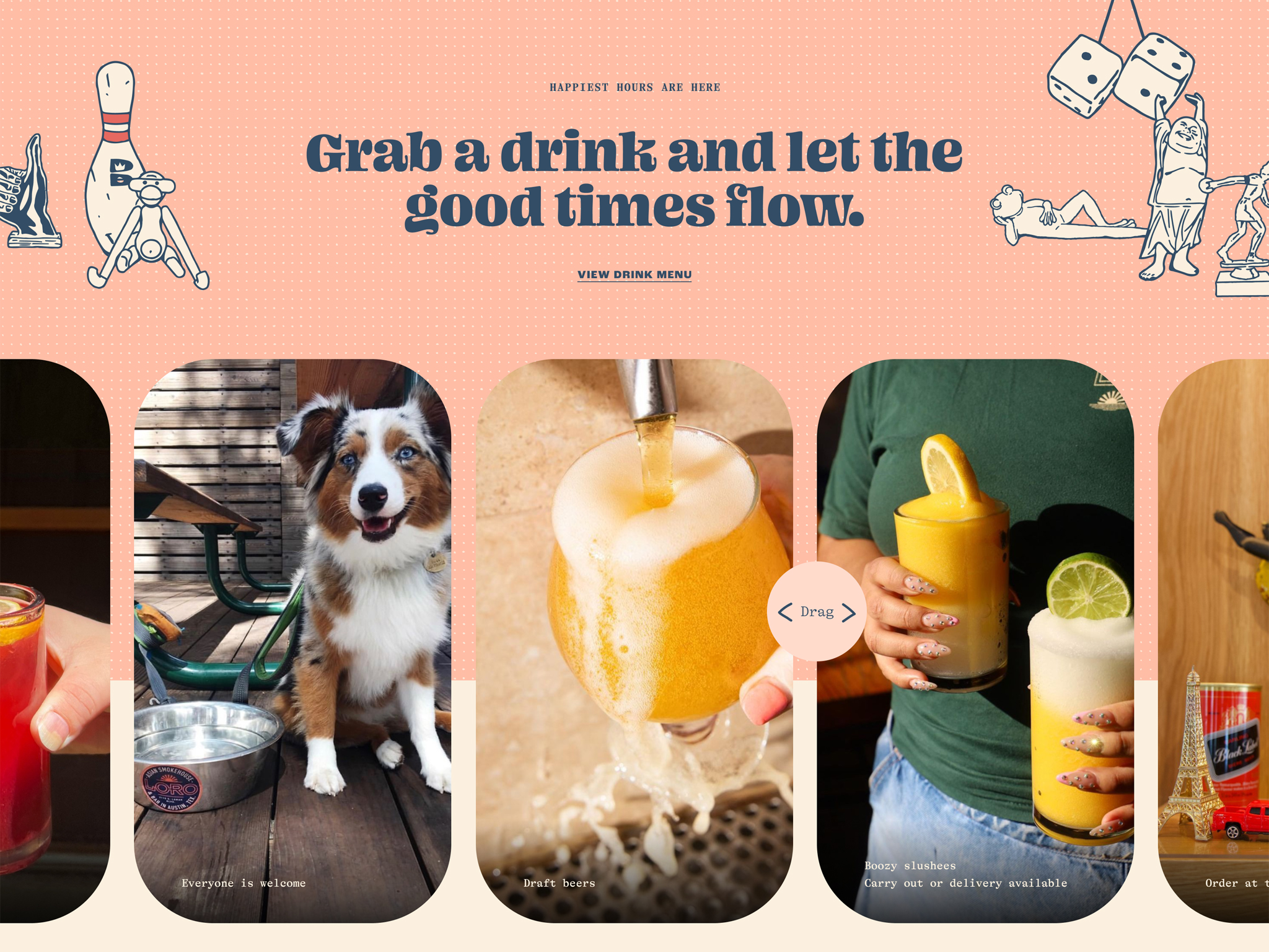 While exploring different brand expressions for a persona known as “The Effortless Entertainer”, we discovered the Ohno Blazeface and Ohno Fatface families from OH no Type Co. and immediately fell in love. Blazeface, in particular, is packed with charisma while feeling friendly and approachable. A perfect typographic representative for the voice of this witty and sometimes irreverent brand. We paired the Ohno display and headline fonts with GT Alpina Typewriter for the body, an equally playful mono font that really completed the casual vibe we were going for. Roc Grotesk is used for UI elements. The hand-drawn shaded caps are from Abby Condensed, which was specifically drawn for this use.