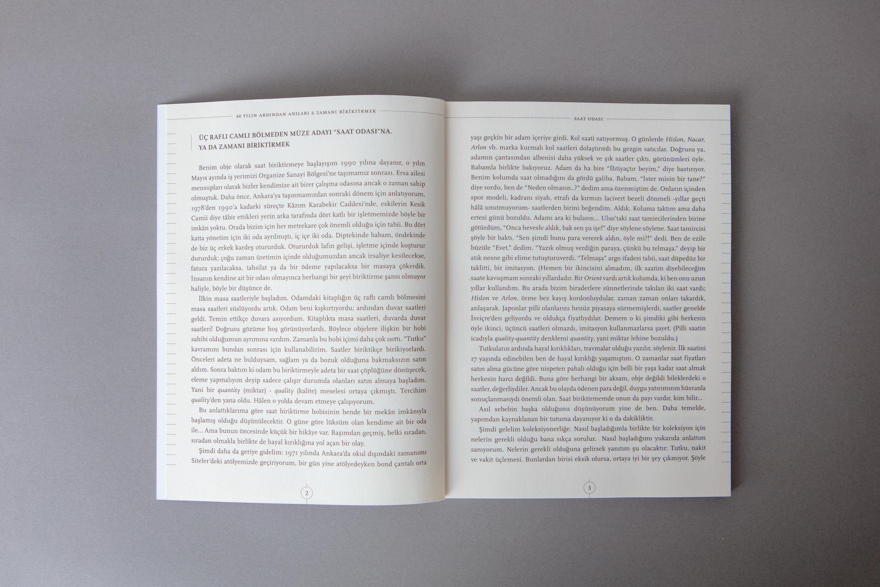 Scala is paired with custom lettering for a booklet (in English and Turkish) about Erol Ata’s Clock Museum. 60 Yılın Ardından Anıları ve Zamanı Biriktirmek (“60 years of collecting memories and time”) presents his private collection of clocks, as shown in the headquarters of Ersa in Ankara (Türkiye).