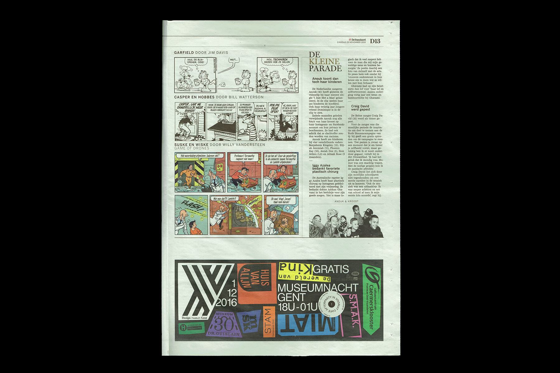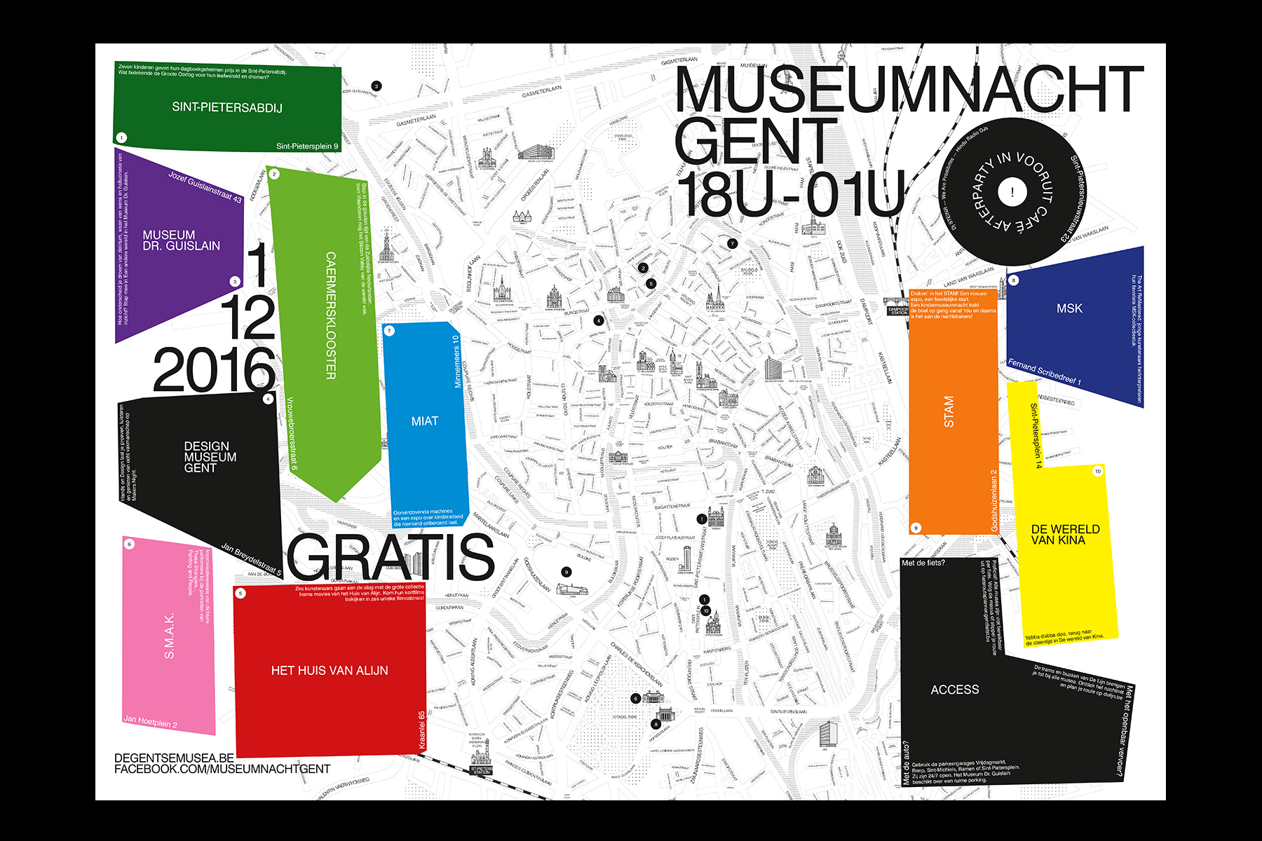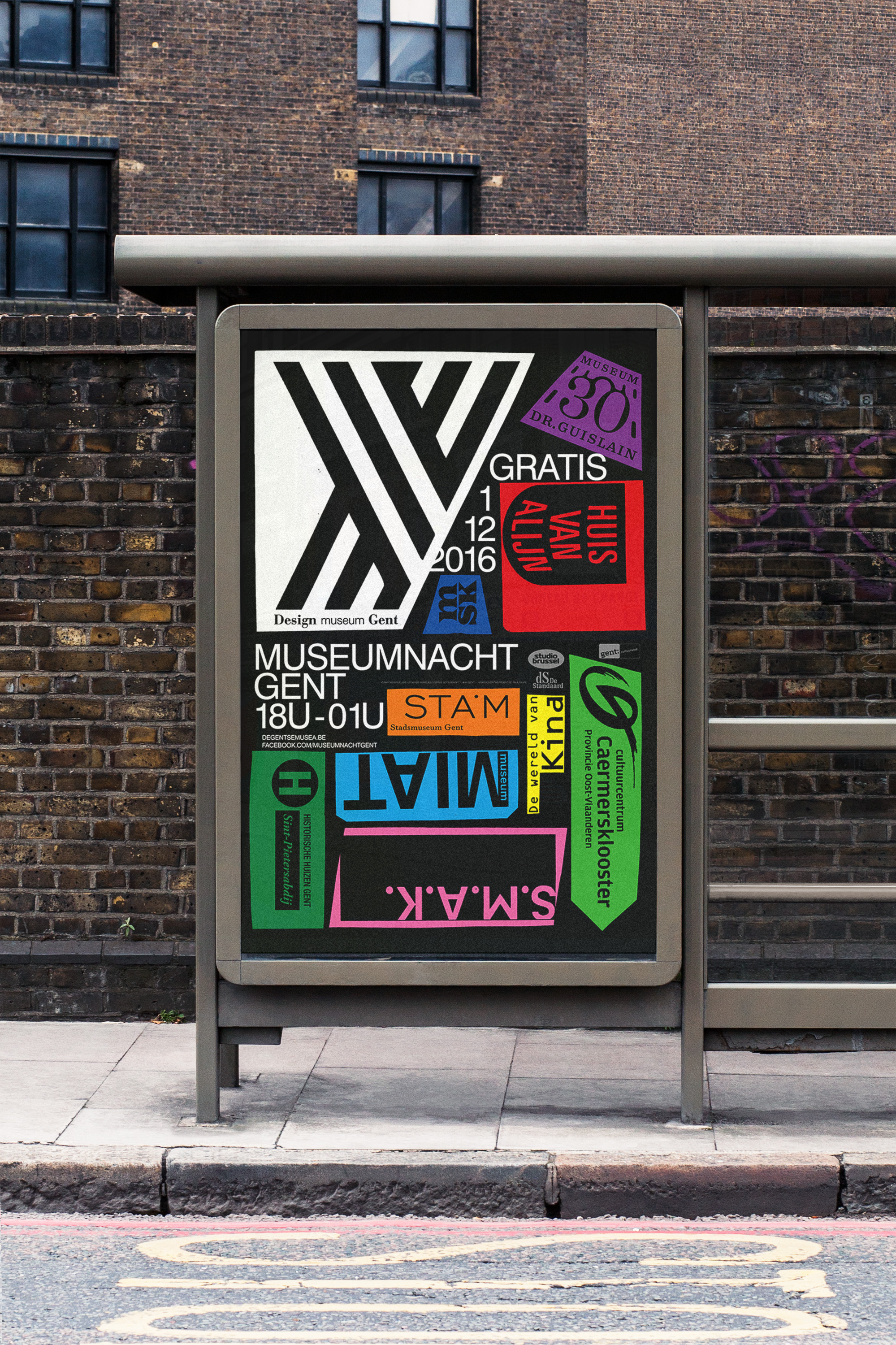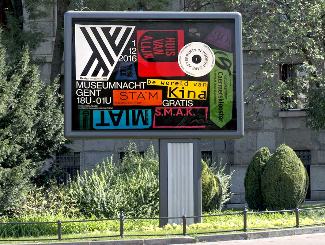 Swiss 721 was used by French graphic designer Paul Faure in the communication design for the 10th edition of the Museumnacht Gent (Ghent Museum Night) in 2016, including posters, leaflets, press banners and billboards.