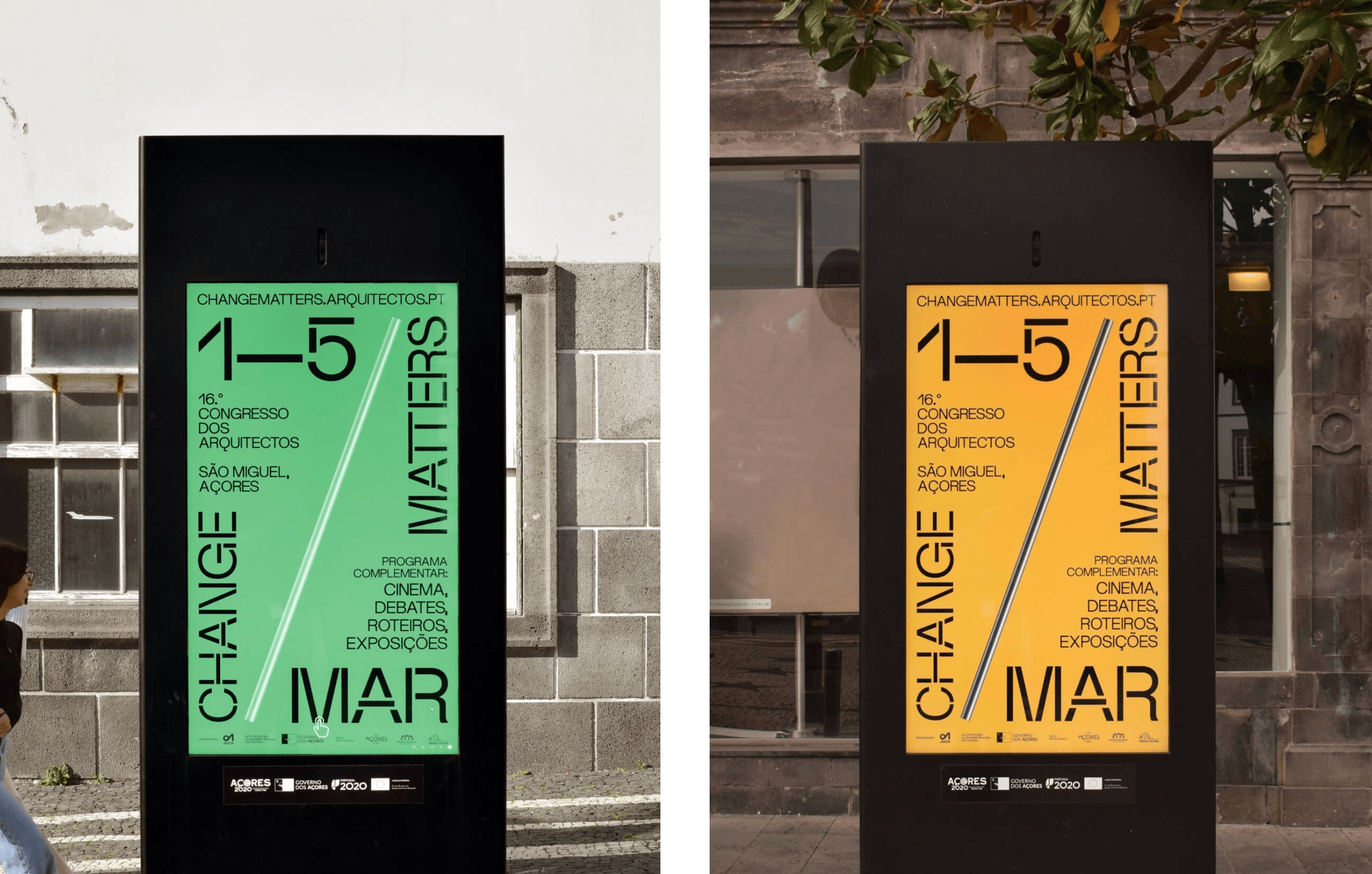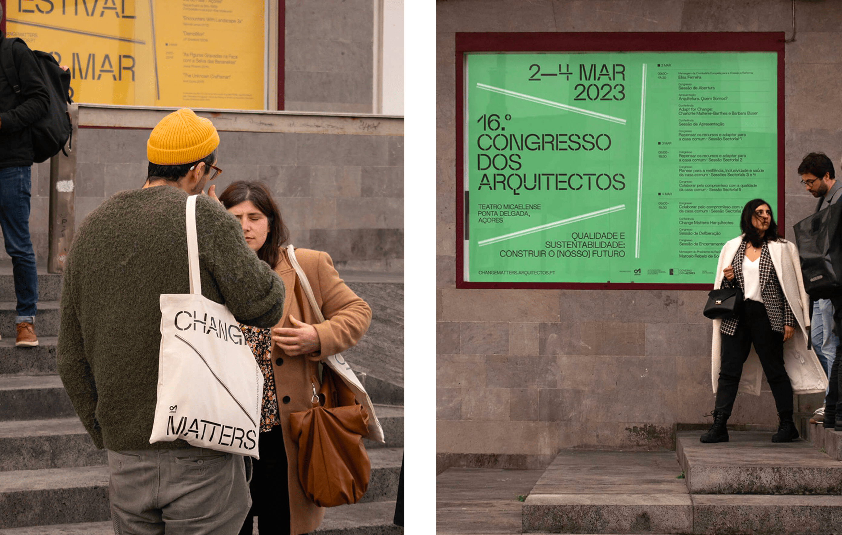 The urgent theme of sustainability presented a challenge in the communication of Change Matters, whose central event was the 16th Architects’ Congress in São Miguel, Azores, accompanied by a parallel program aimed at the general public. While architects are well-versed in the importance of sustainable practices in their field, communicating the urgency of the issue to a general audience proved to be a significant challenge. Additionally, designing a cohesive brand and website that would appeal to both audiences while still representing the values and goals of the program required a thoughtful approach.