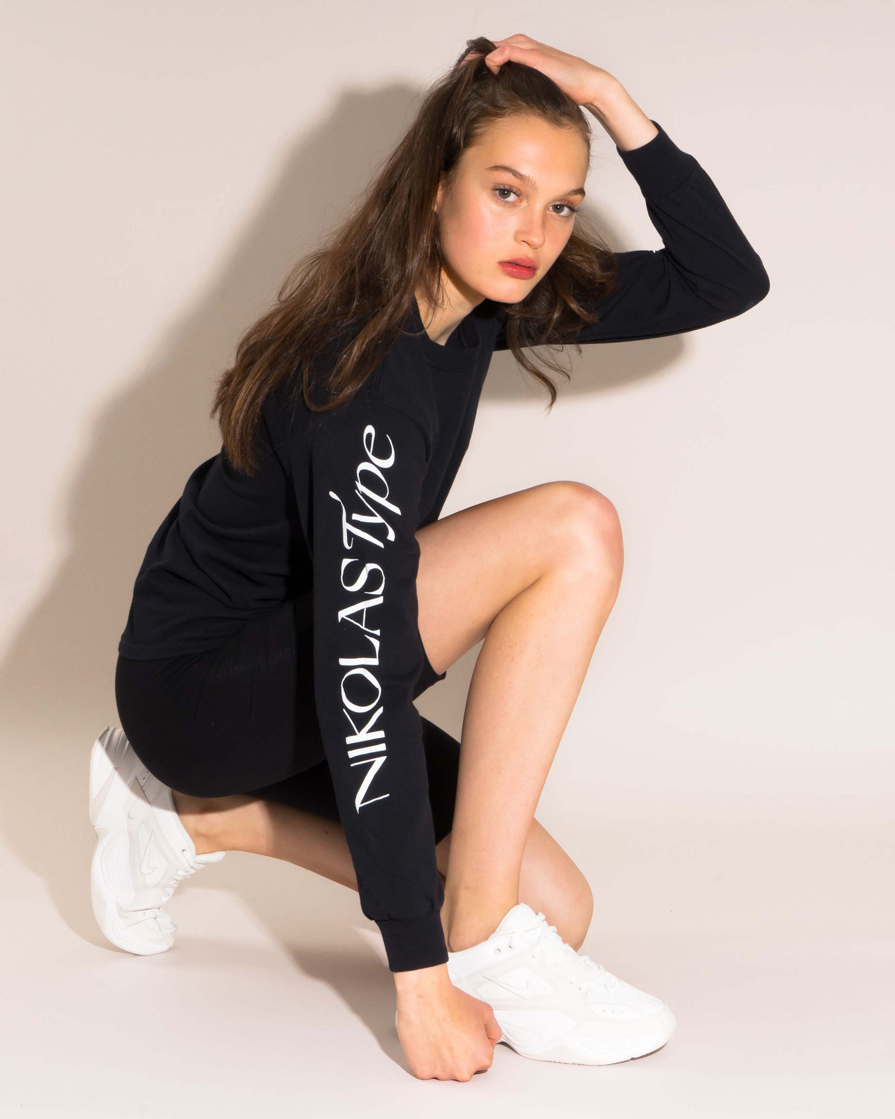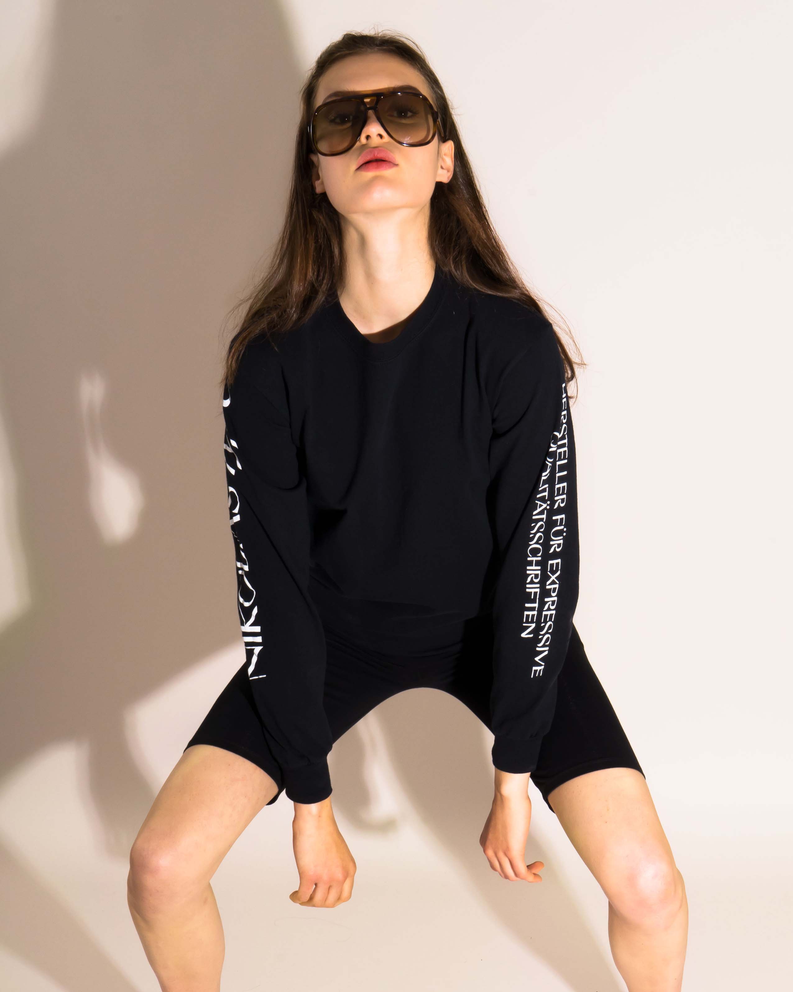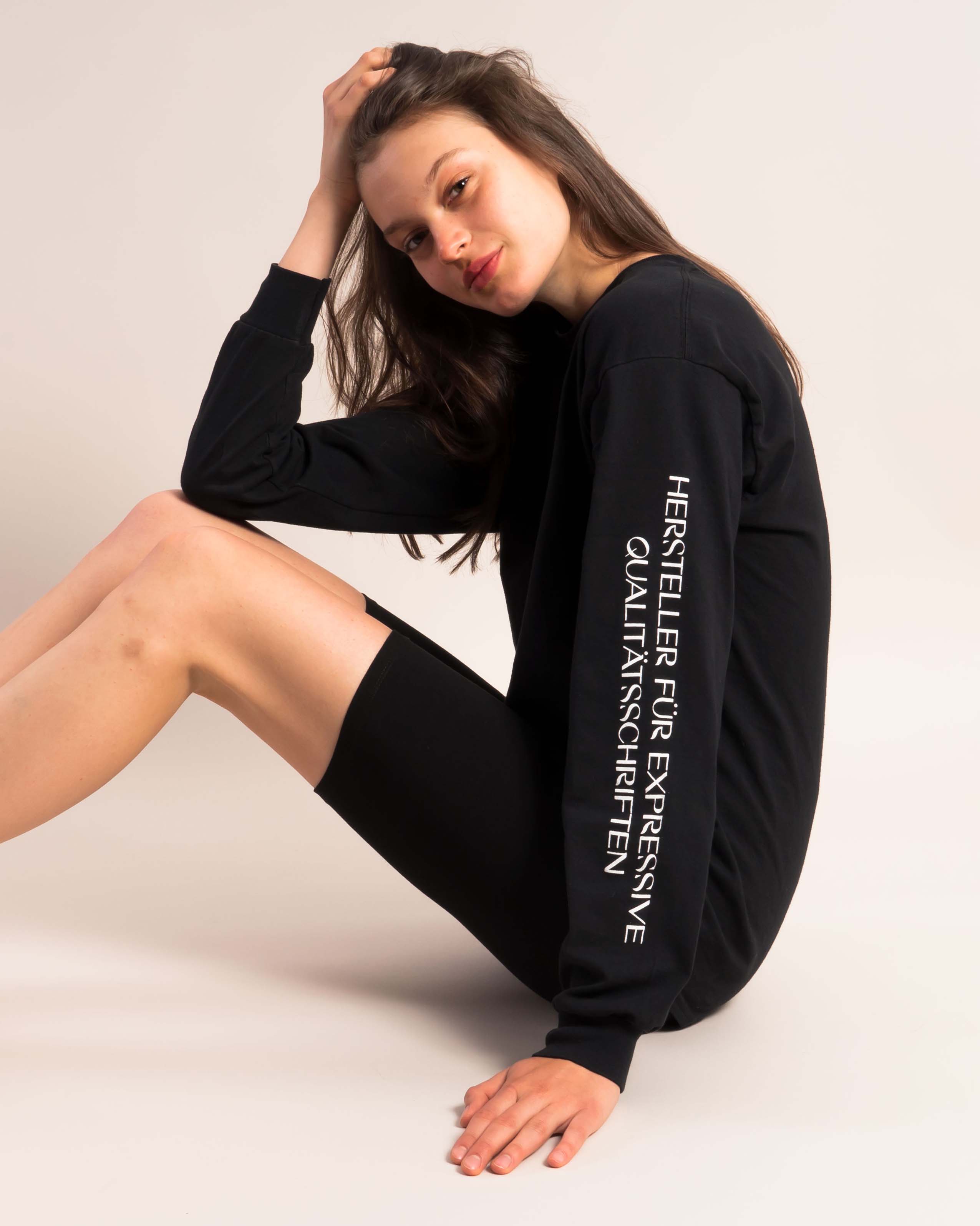Nikolas Type’s claim Hersteller für expressive Qualitätschriften, set in Cosi Times and printed on the right arm, was inspired by Bernd Fuchs’ text for a promotional video about type design at the Berthold foundry, which in one passage says Hochwertige Exklusivschriften prägen anspruchsvolle Erscheinungsbilder (“Exclusive high-quality typefaces shape sophisticated identities”). The use of German, in a rather neutral “boring” wording for this fashion item, got an instant reaction, especially outside of Germany, and was sold out in a short time.