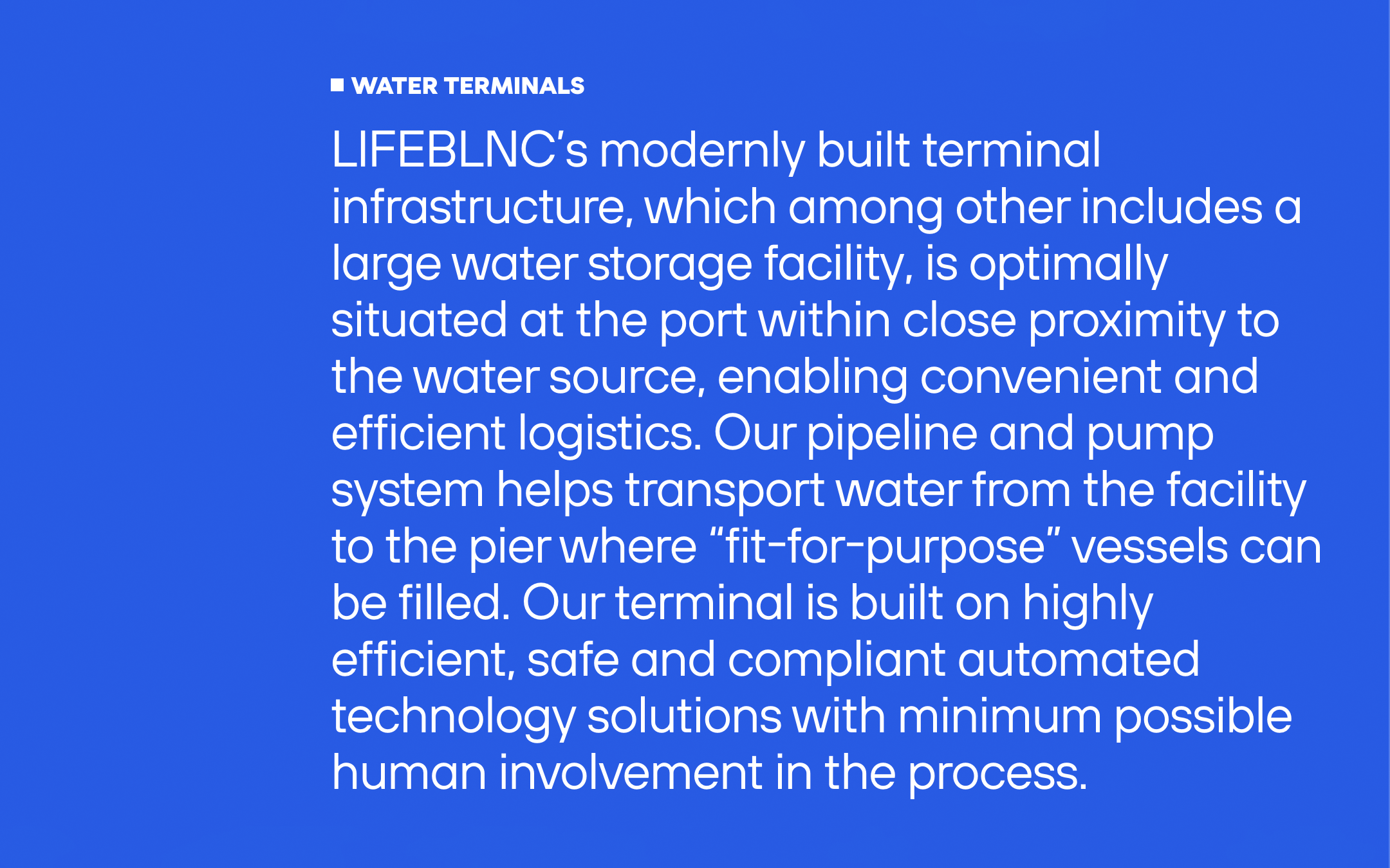 LIFEBLNC is the first large-scale global exporter of high-quality water in bulk shipments. Water scarcity is an intergovernmental problem, which is defined by the quantitative lack of fresh water resources. The UN General Assembly established the Sustainable Development Goal 6 to achieve universal and equitable access to safe and affordable drinking water for all by 2030.