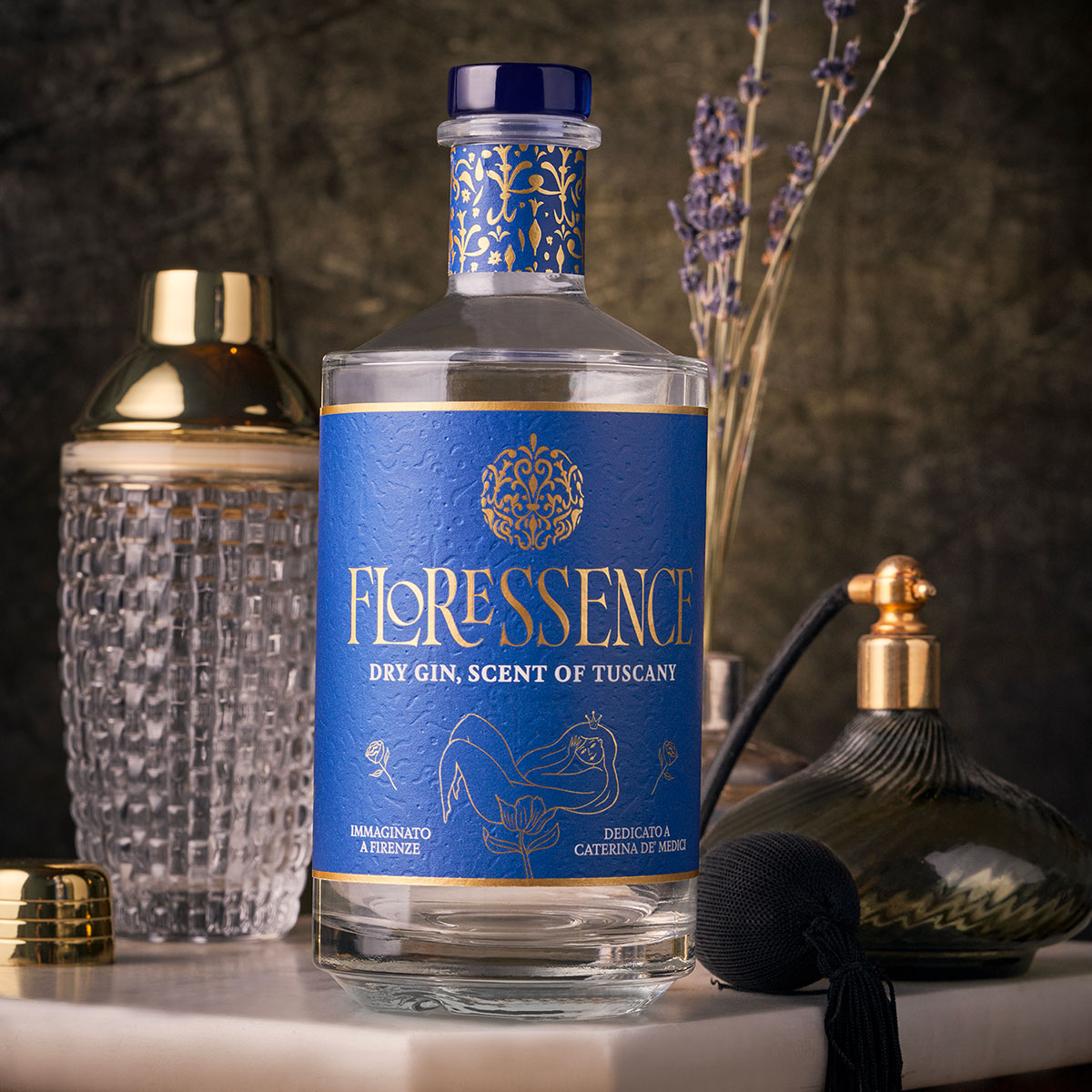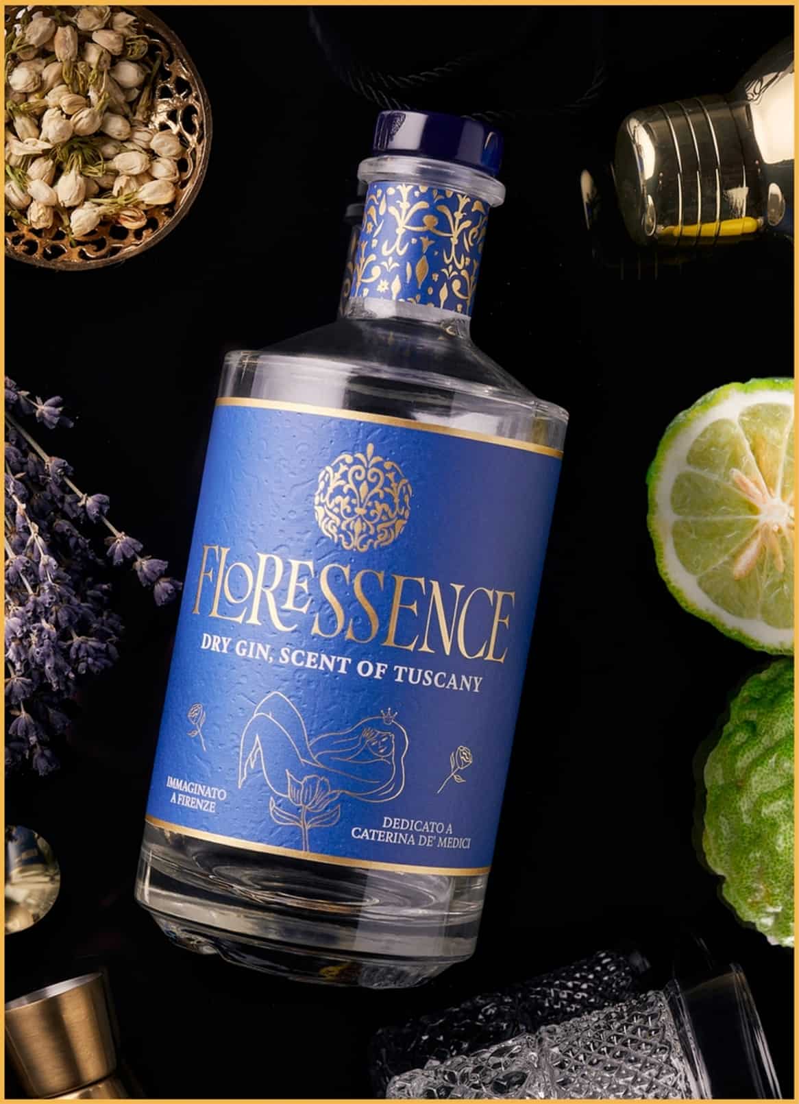 Floressence is a Tuscan dry gin with unmistakable aromatic notes inspired by Caterina De’ Medici, imagined in Florence. Every drop of Floressence comes from a delicate sensory balance, studied and created by an expert mixologist and perfumer. Oscar Quagliarini, Bartender Perfumer – a royal signature in the world of spirits – has studied and created the perfect synthesis of balance between balance, floral scents and eccentricity. It is inspired by the olfactory pyramid of the Queen’s perfume – Caterina, ça va sans dire – created for her by René Le Florentin.
