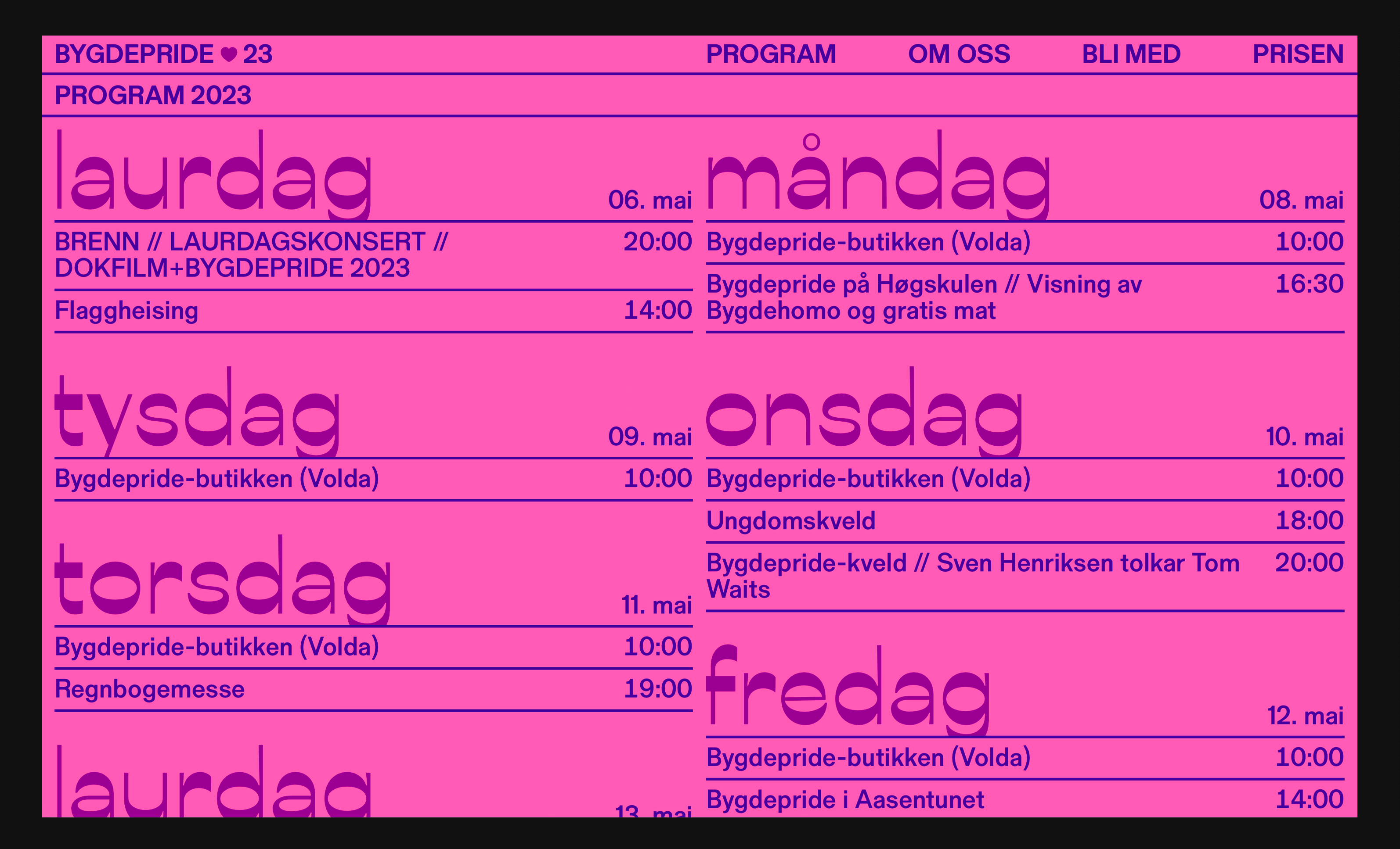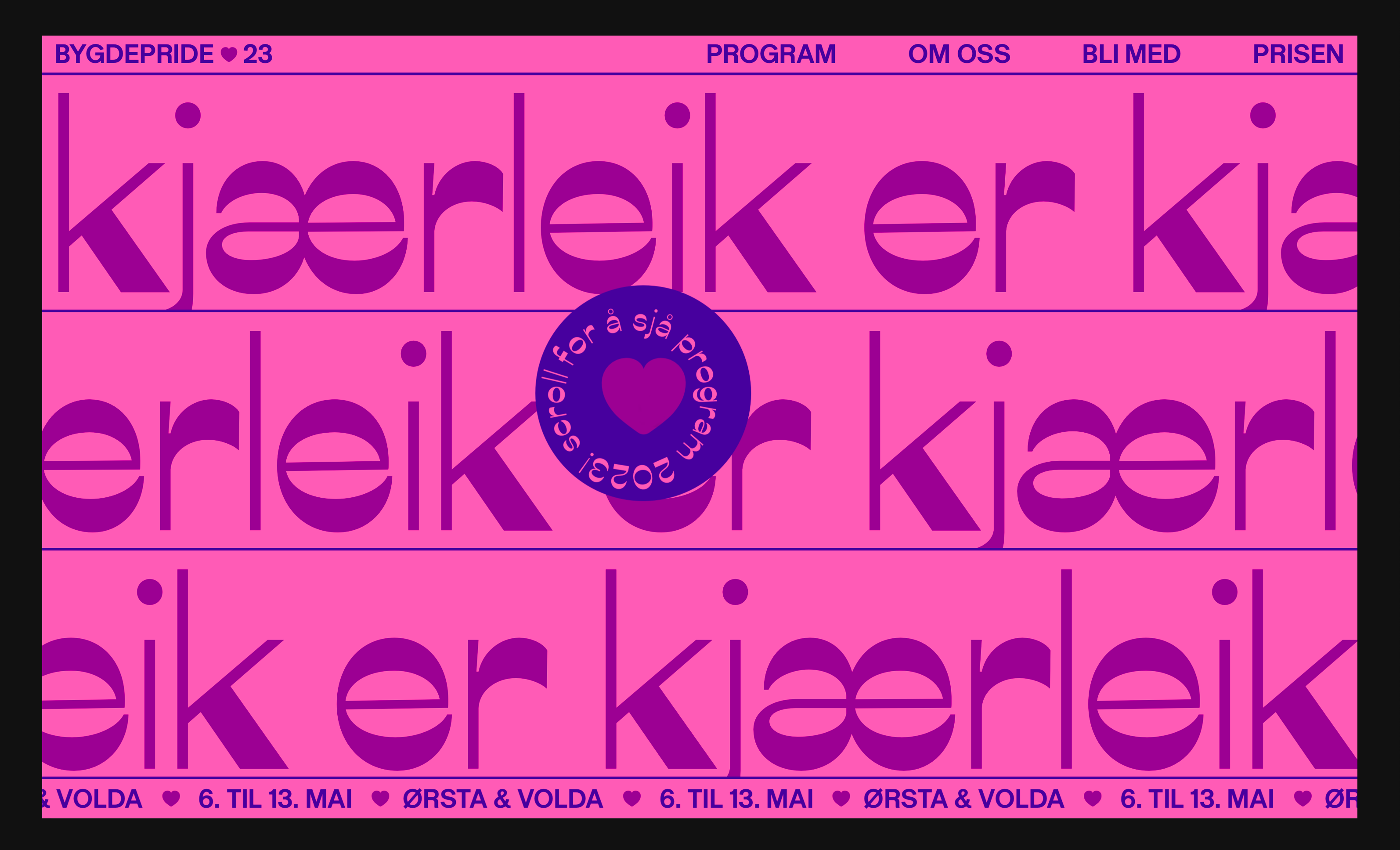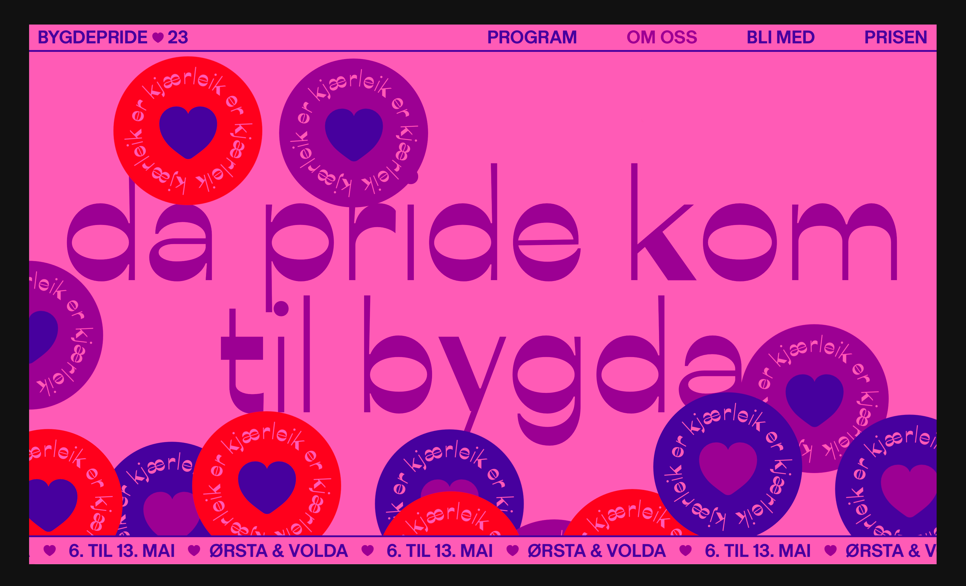 Bygdepride is a movement and a membership organisation that started in Ørsta and Volda in 2017. The festival was organised for the first time in may 2018.