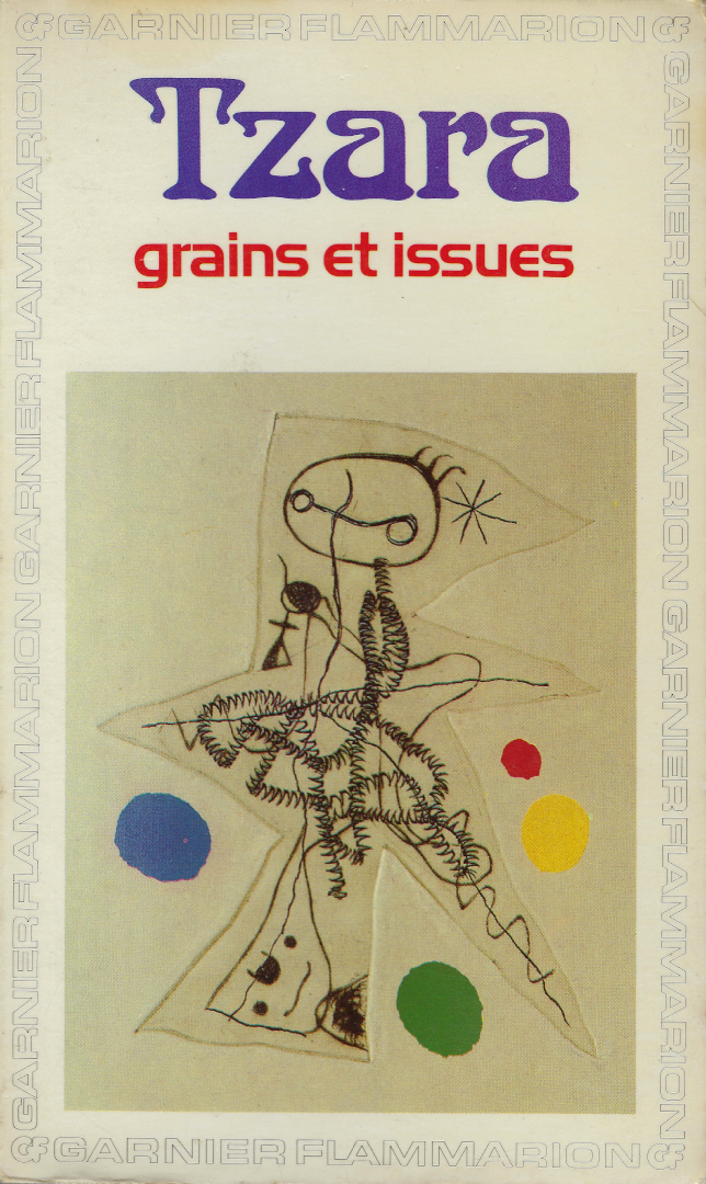 Cover of a book called Grains et issues by French writer and poet Tristan Tzara (1896–1963), first published in 1935. This edition was published in 1981 in Garnier-Flammarion’s paperback series. .