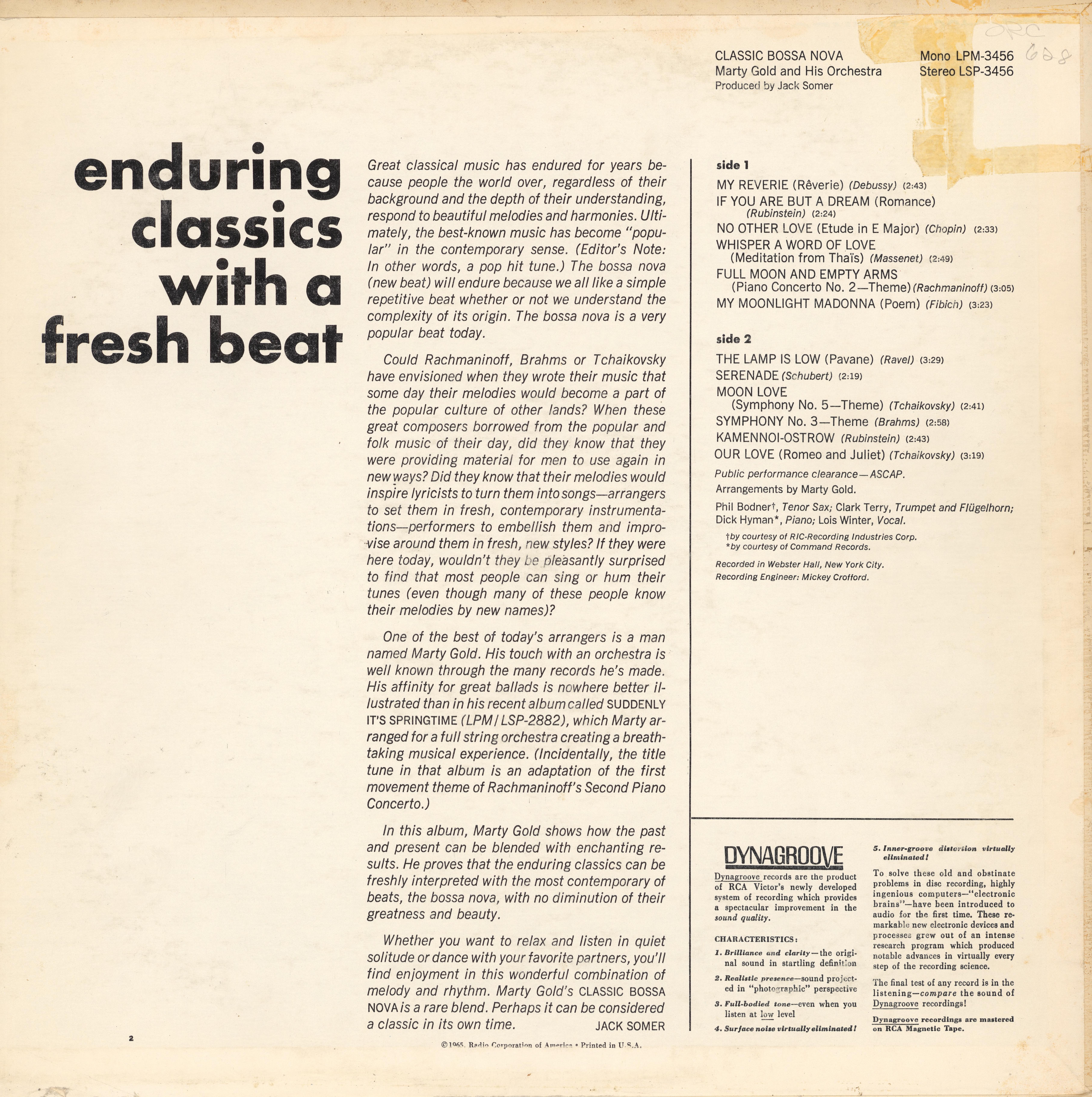 Classic Bossa Nova is a 1965 instrumental easy-listening LP from Marty Gold.