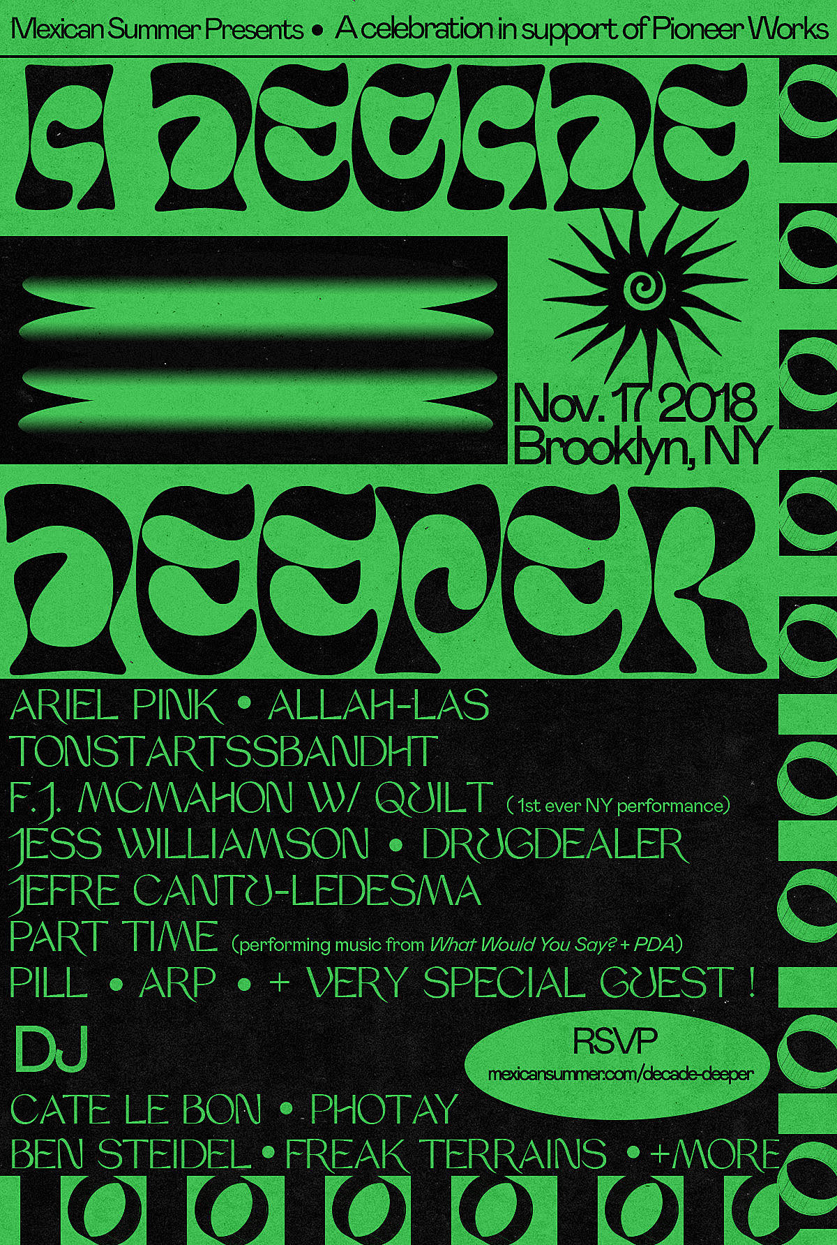 A decade deeper, a decade spent tripping the light fantastic. A nimble dance led by the many musicians euphorically followed, and the gilded spirit that has compelled Mexican Summer across a radically shifting musical landscape for ten years. The first ten years of living, breathing, and believing, Mexican Summer will host a homegrown, all day event in its Brooklyn backyard on Saturday, November 17 and release Mexican Summer: A Decade Deeper, a limited edition LP featuring unreleased music from Ariel Pink, Connan Mockasin, Drugdealer, and many others.