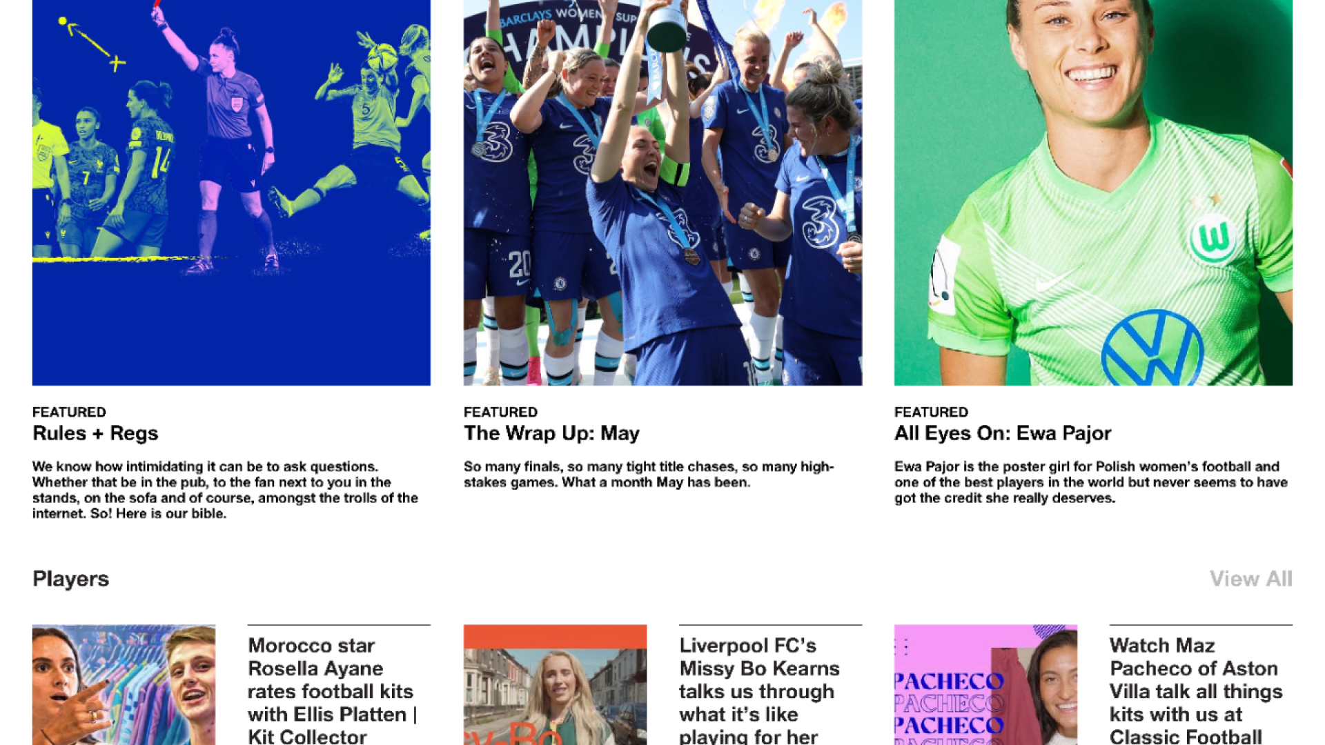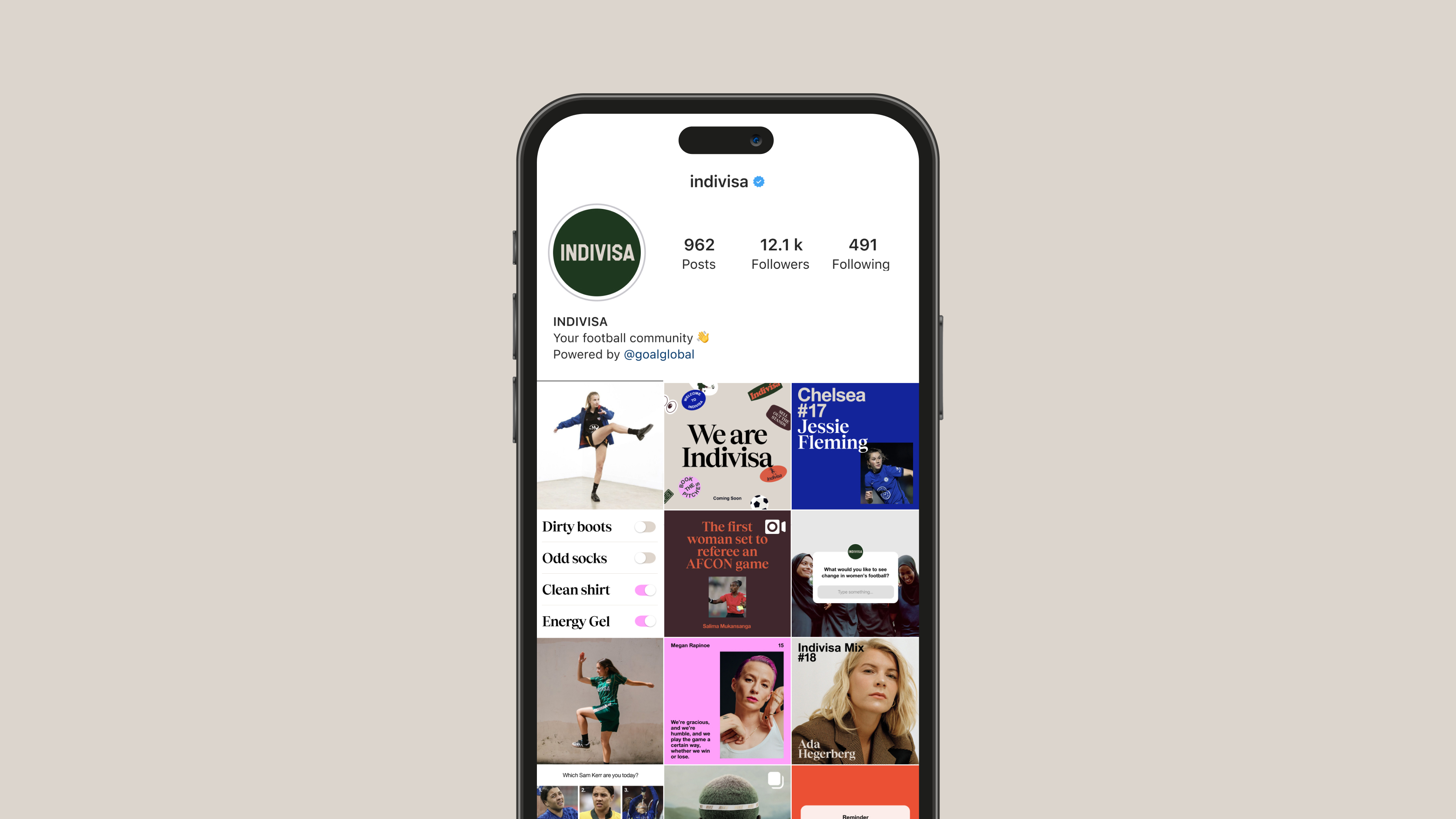 In partnership with the in-house creative team, we identified a strong visual aesthetic to help establish the awareness of women’s football, in an empowering, passionate way. Built on the idea that Indivisa is a community-first editorial platform, we created a brand that provides a timeless yet forward-thinking approach to female-focused content.