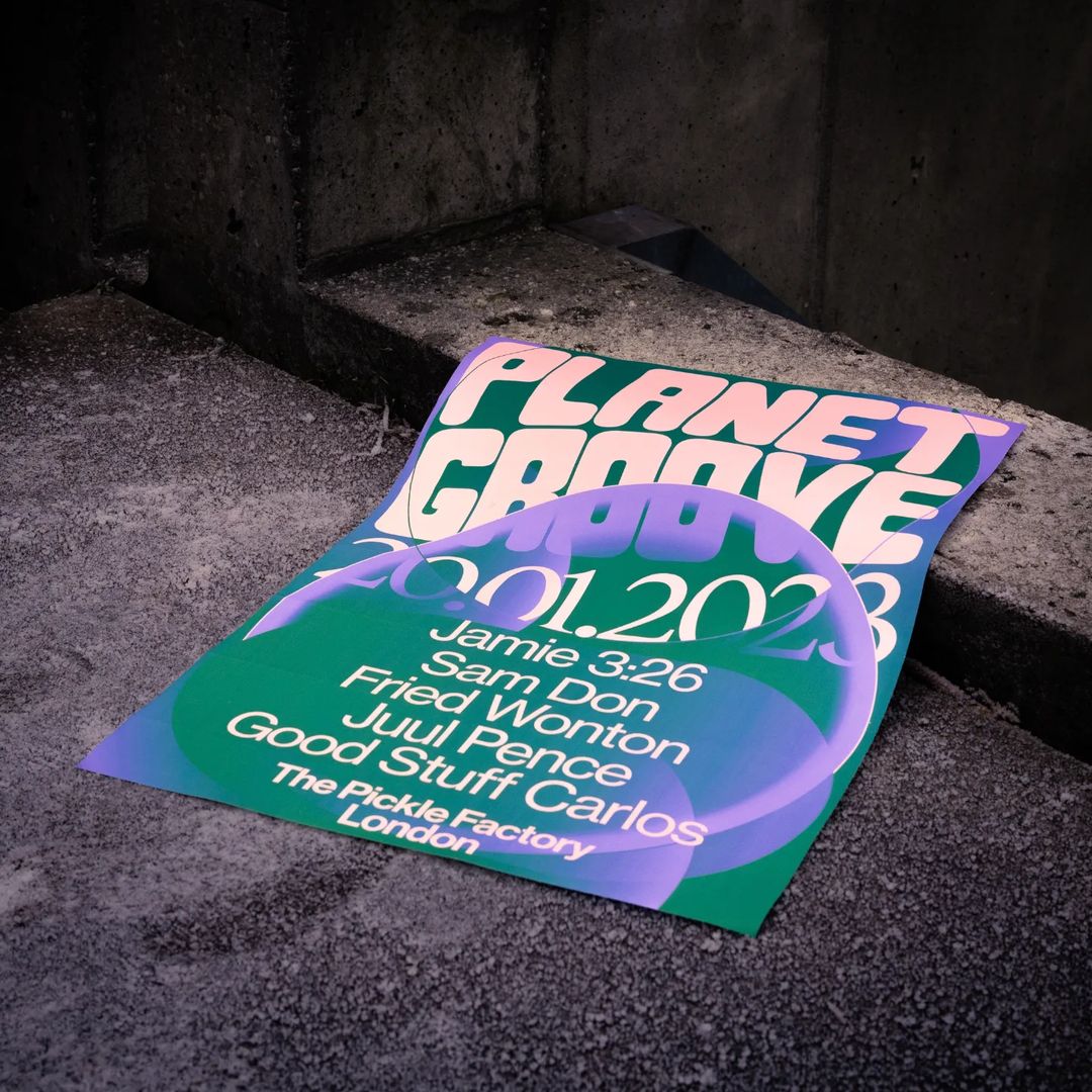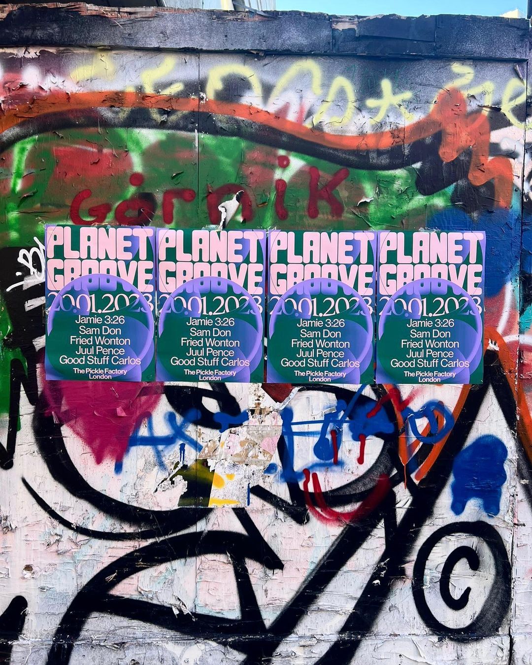 Posters and flyers designed by Ghent designer Ward Vossaert (Wurdex) for Belgian event organizer Planet Groove and their last three music events in Ghent, Kortrijk, and London.