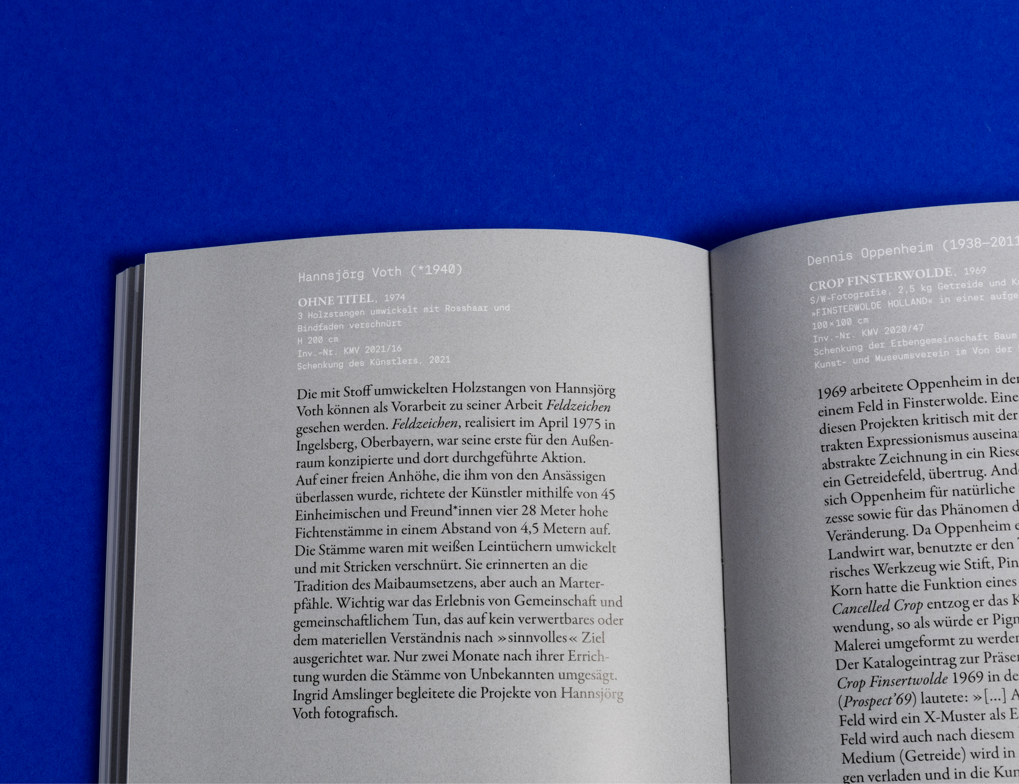 Overall, the 280-page OTA-bound catalog is a compact and highly informative work, printed on Condat matte Périgord to best reproduce the colors and textures of the artworks. We designed a second cover variant for the publisher’s edition by Verlag Kettler.
