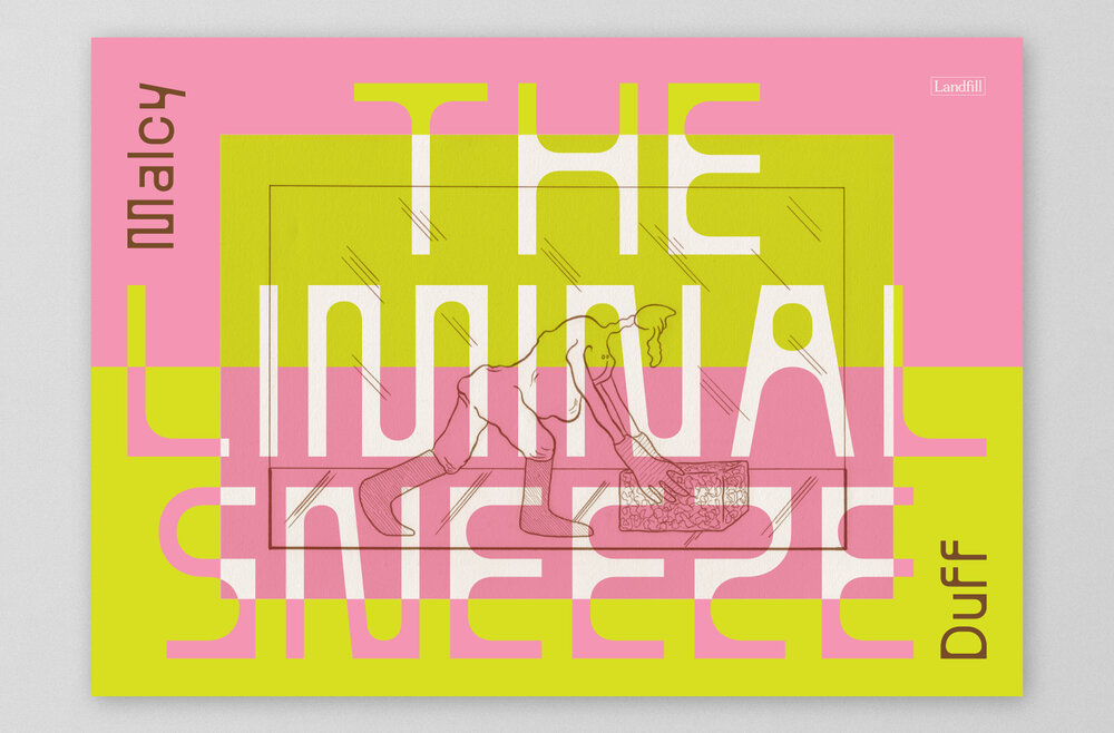The cover has a graphic typography featuring BallPill (2020) that lends itself to Duff’s style with clean shapes and plays between background and shapes. The title is set perpendicular to the artist’s name and is part of the drawing, hinting at the reading direction of the book, as does the logo of the publisher, Landfill Editions. See some of the interior pages on the Good Press website.