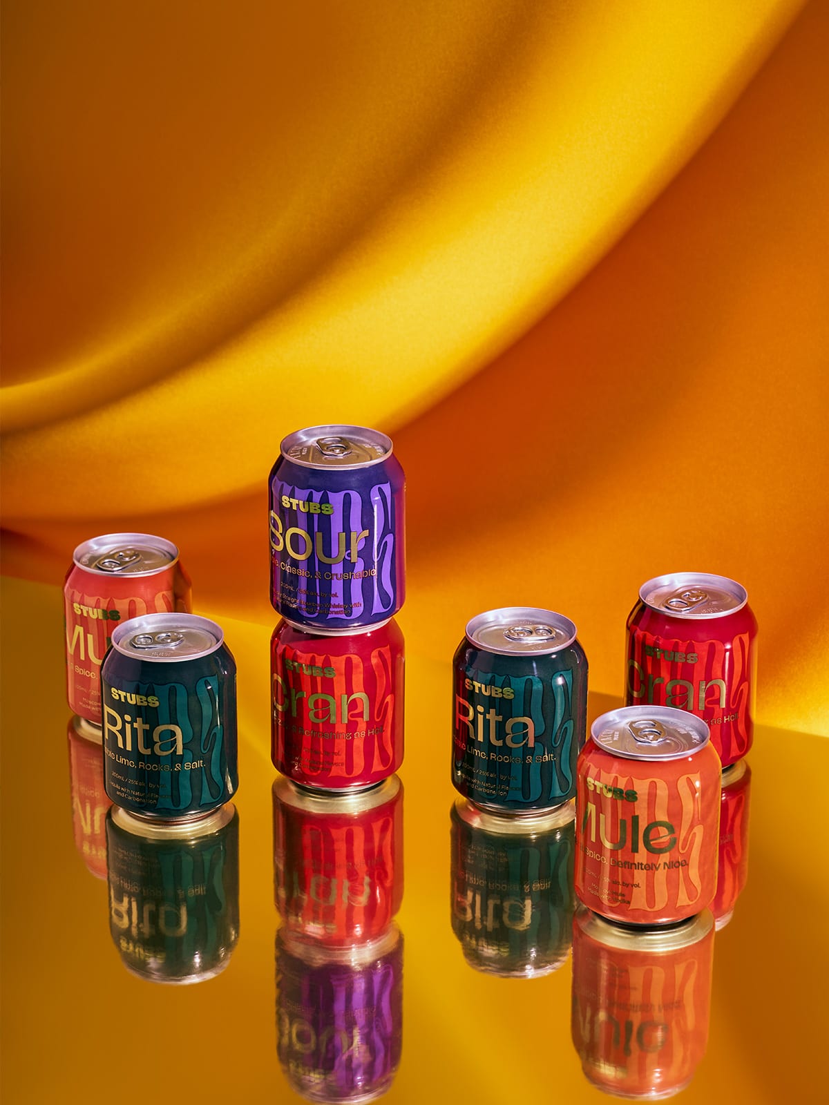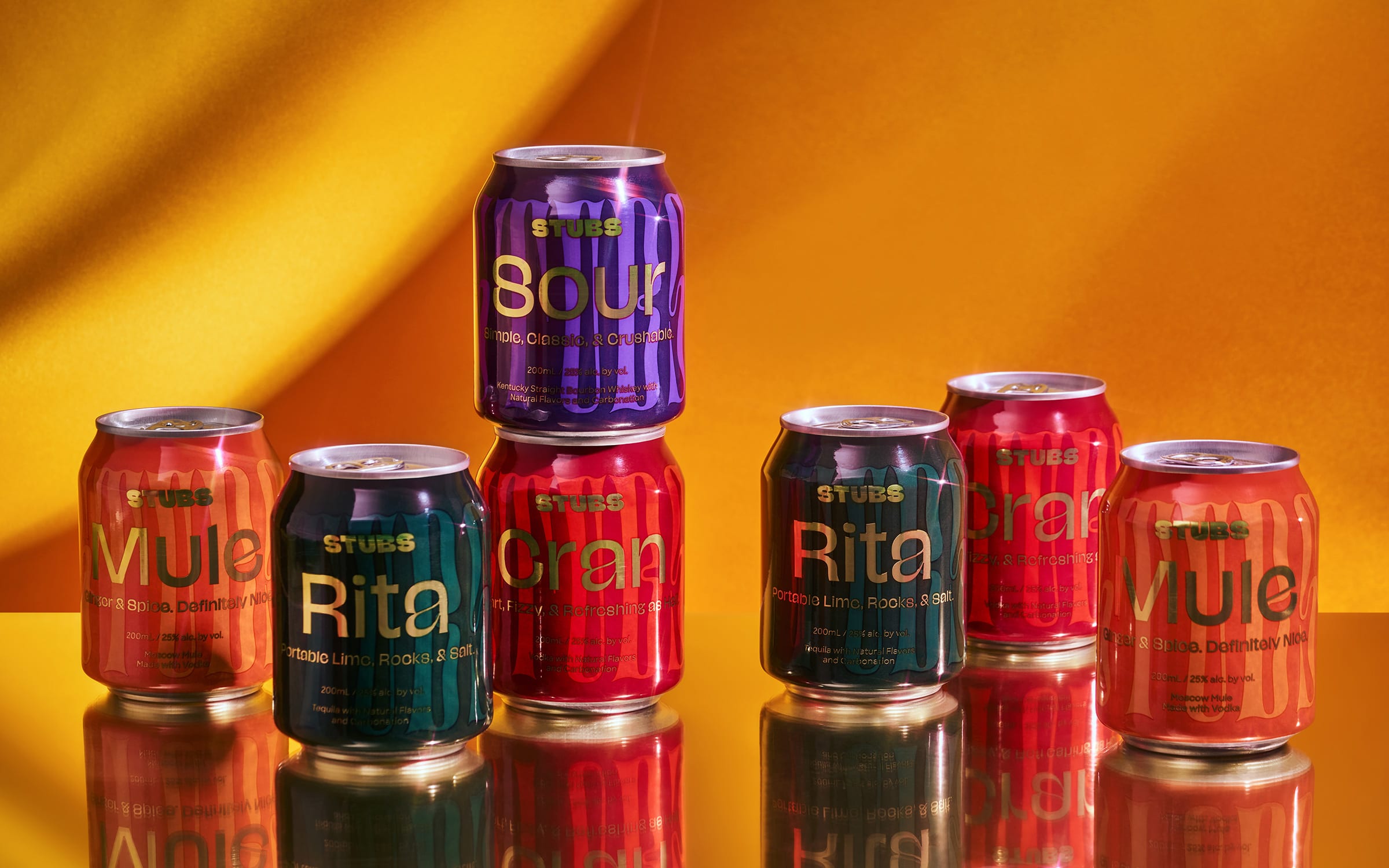 Stubs are pre-made strong cocktails, sold in cans. The brand distinguishes itself by the high amount alcohol per can (25% alc. by vol) and by the small format of its cans.