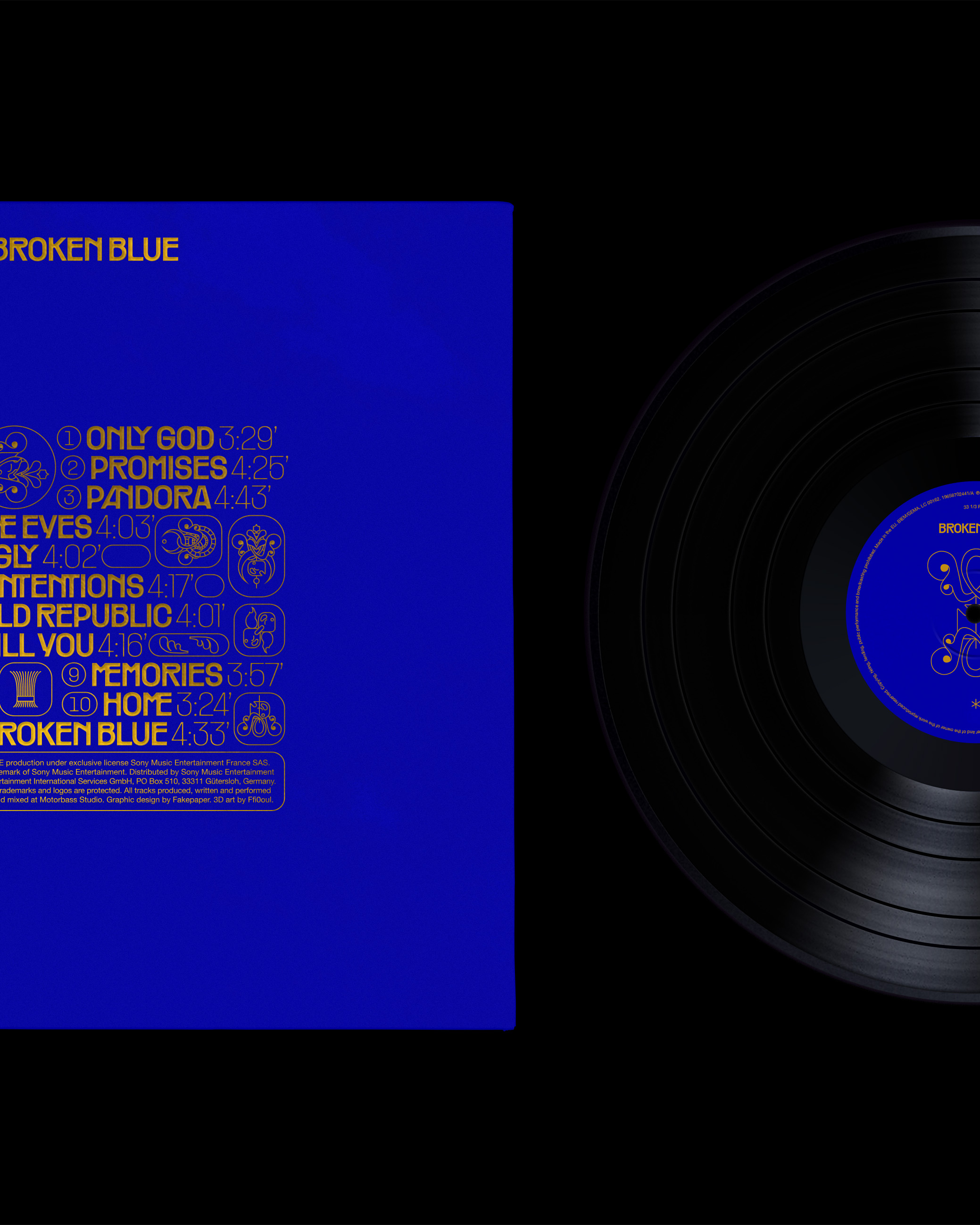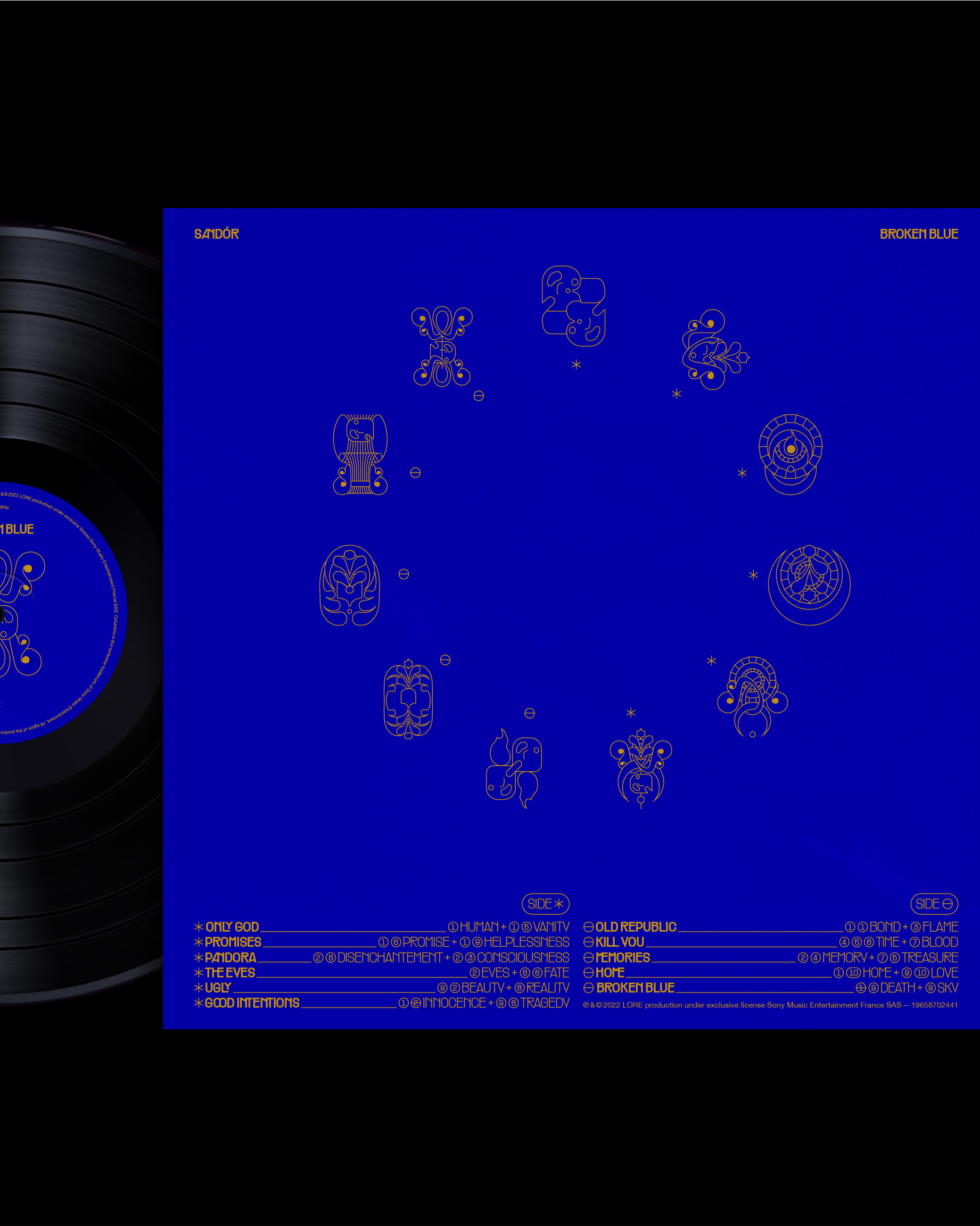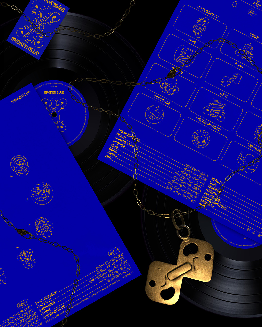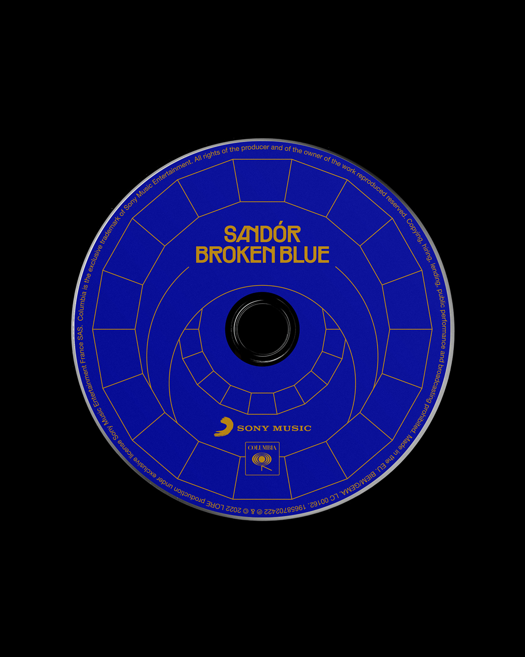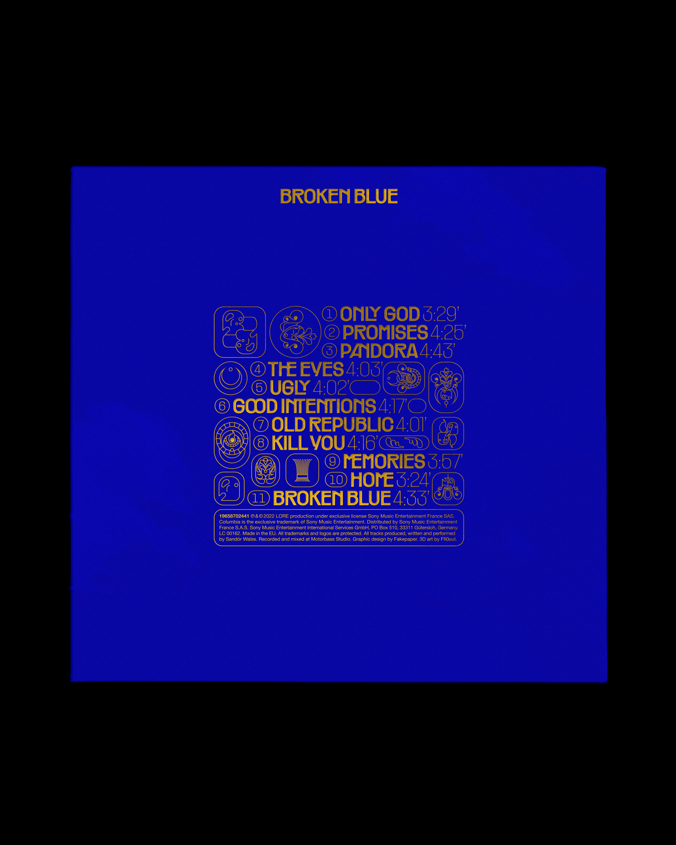Visual identity of Broken Blue, the first LP of French producer Sandór Waïss.