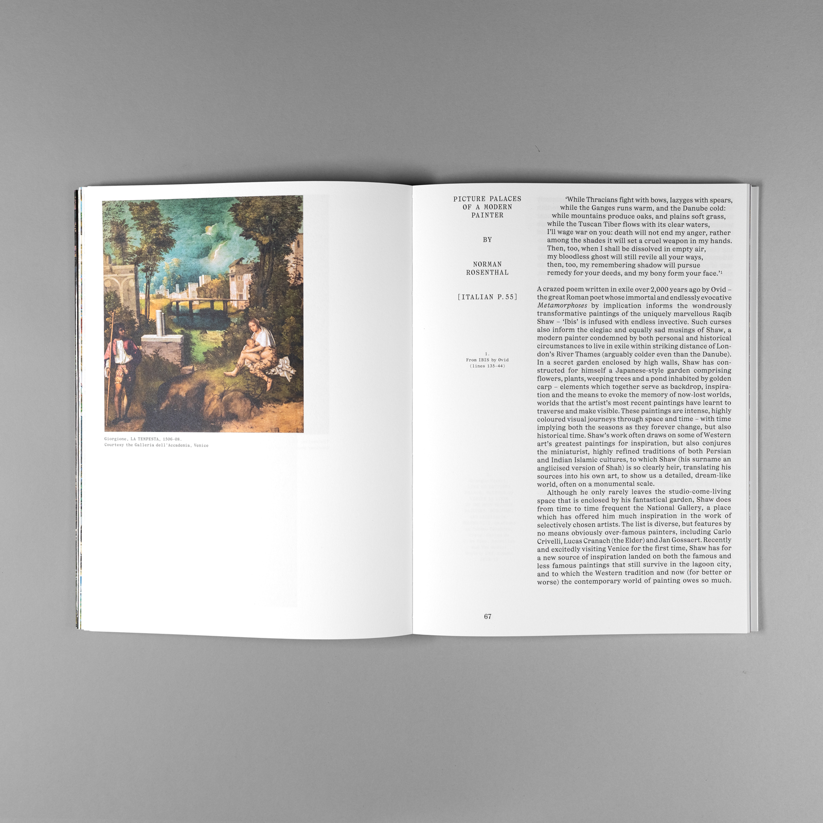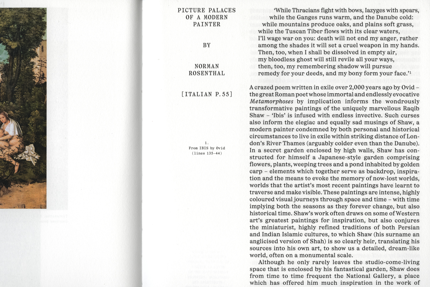 Shaw, who was born in Kashmir and now resides in London, explores themes of homeland loss and exile in his paintings. His highly detailed and elaborate works depict imaginary worlds that hold personal and psychological significance. Often large in scale, Shaw’s paintings combine various influences, ranging from Old Master techniques to miniature painting traditions and from Ovid’s poetry to Persian and Indian Islamic culture. Through his art, Shaw compresses time and space, traversing landscapes, seasons, myths, and historical eras.