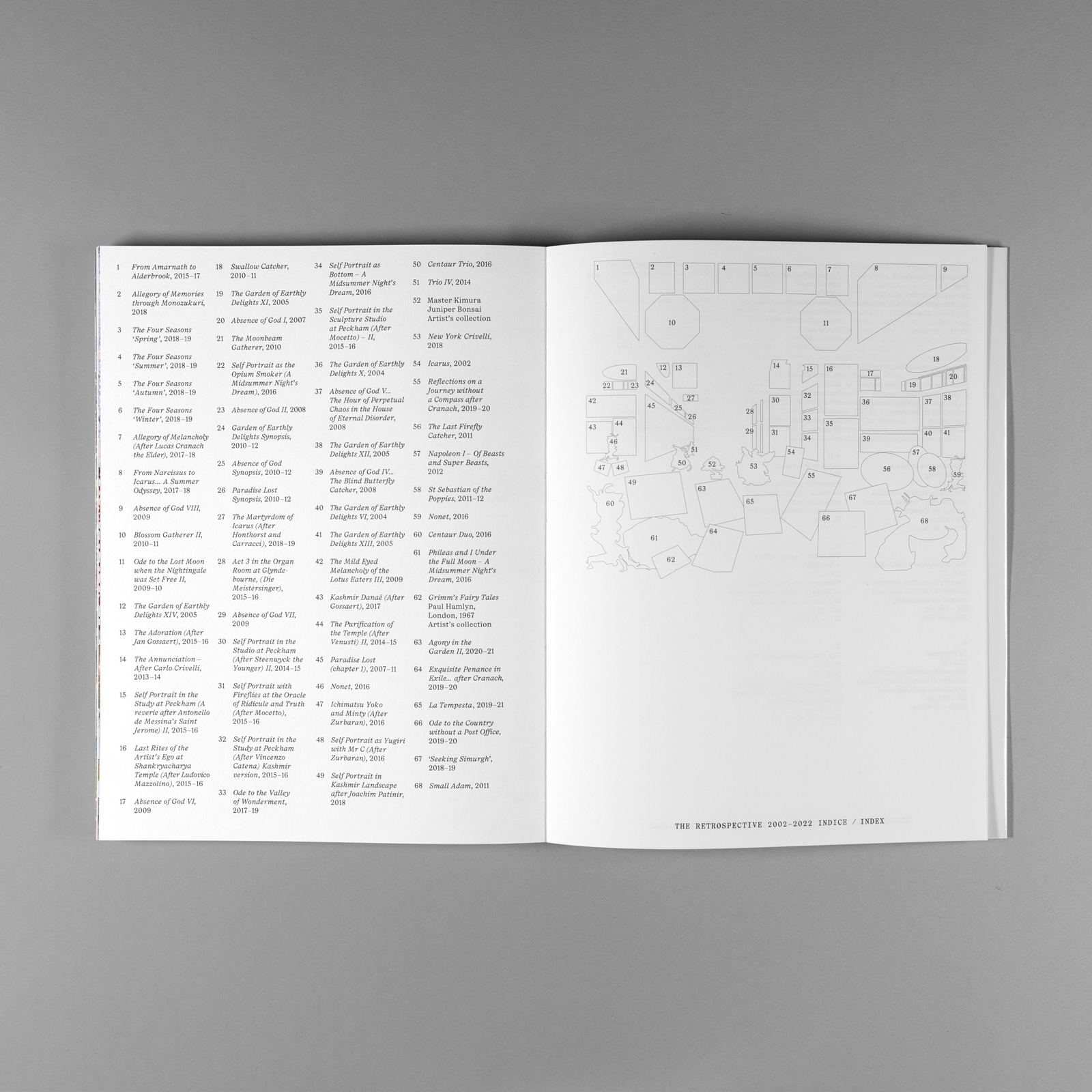 Raqib’s exquisitely detailed universe is honoured in a new softback publication designed by Studio Ard, with a glossy dust jacket, and carefully typeset in LL Ivory from Lineto.