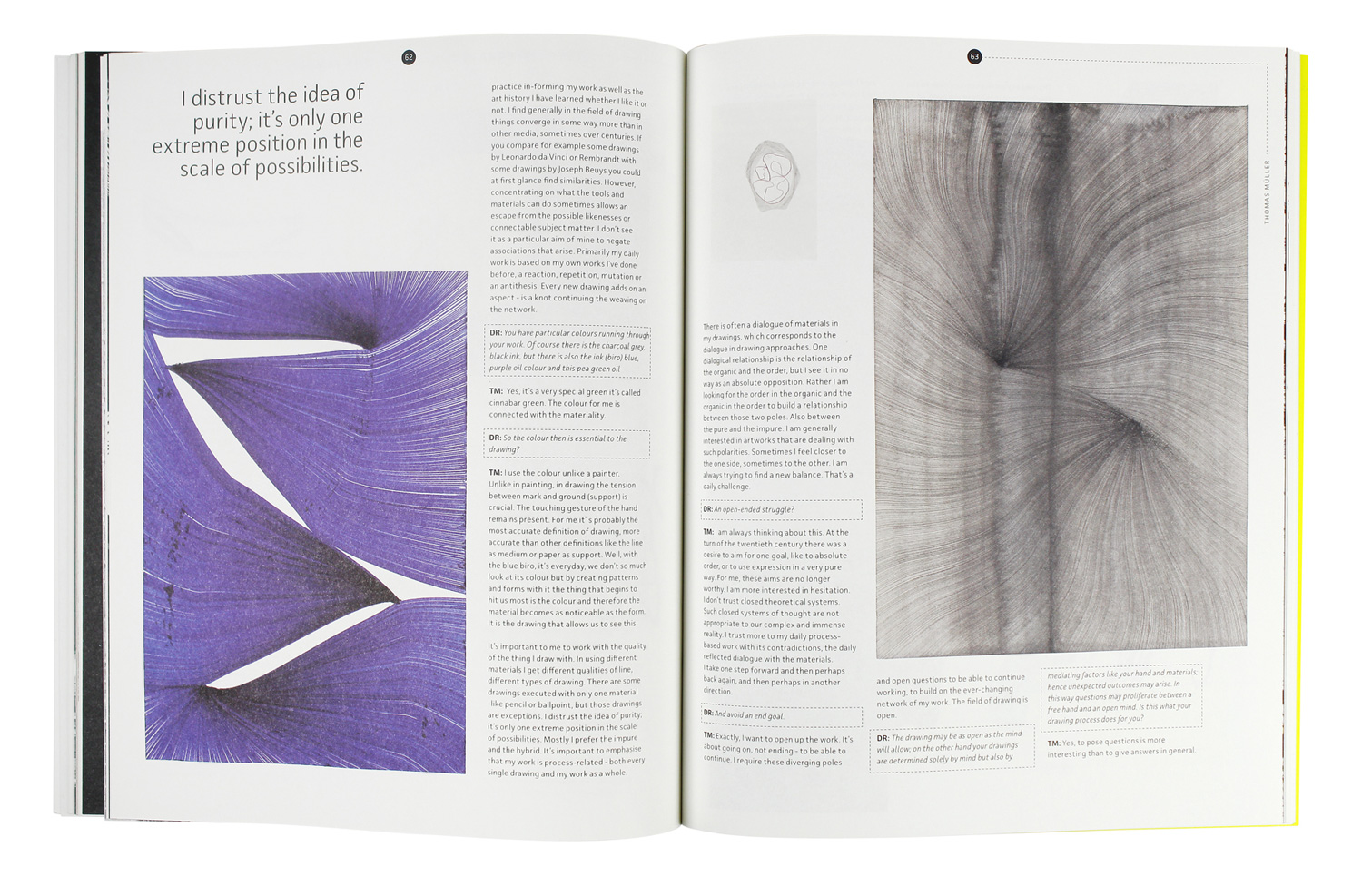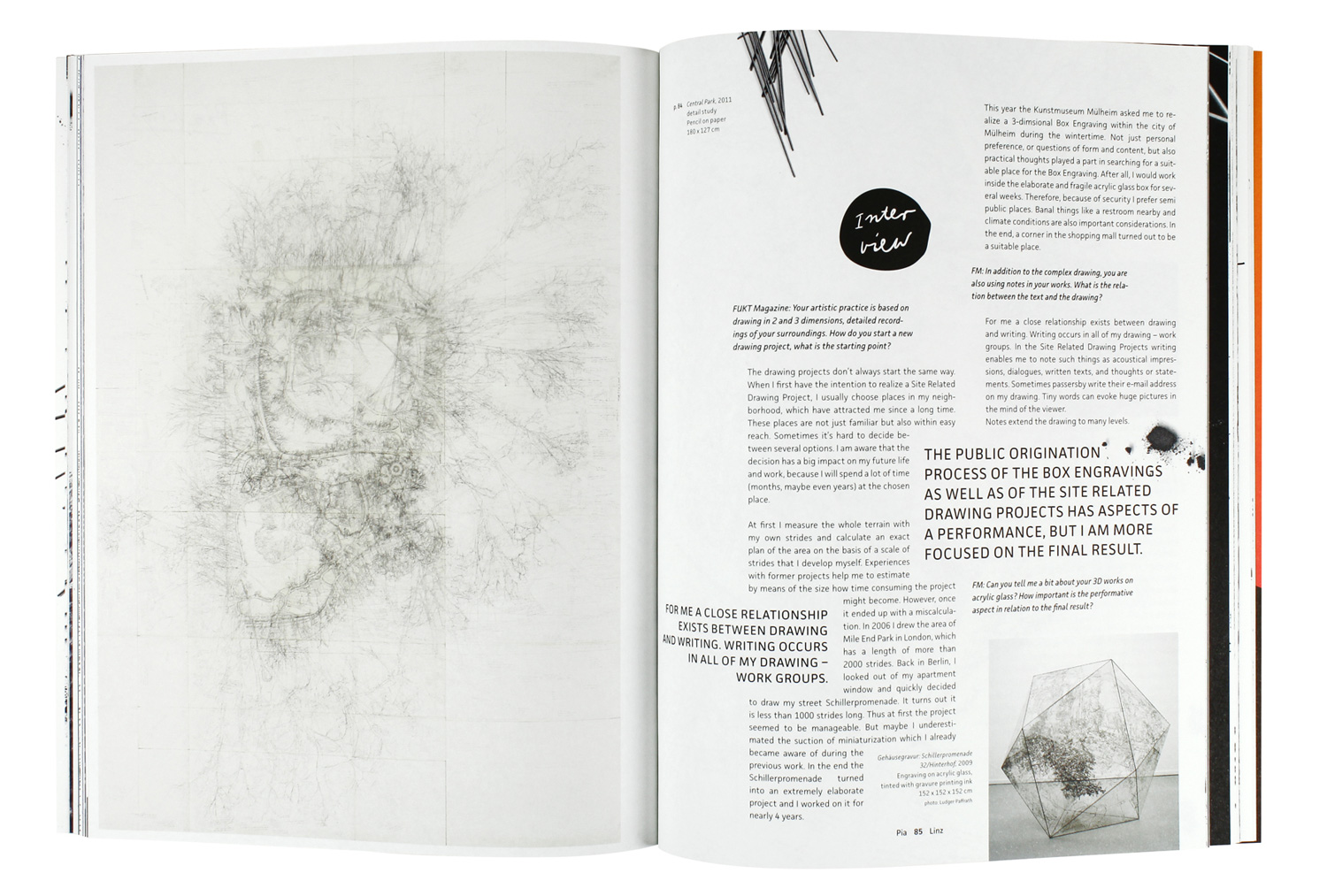 Fukt is a magazine for contemporary drawing. It comes without ads, beautifully designed with a focus on the visual, with occasional interviews with interesting artists and essays by engaging authors. The design and format are changing for each issue but the typeface JAF Facit is used throughout all issues.