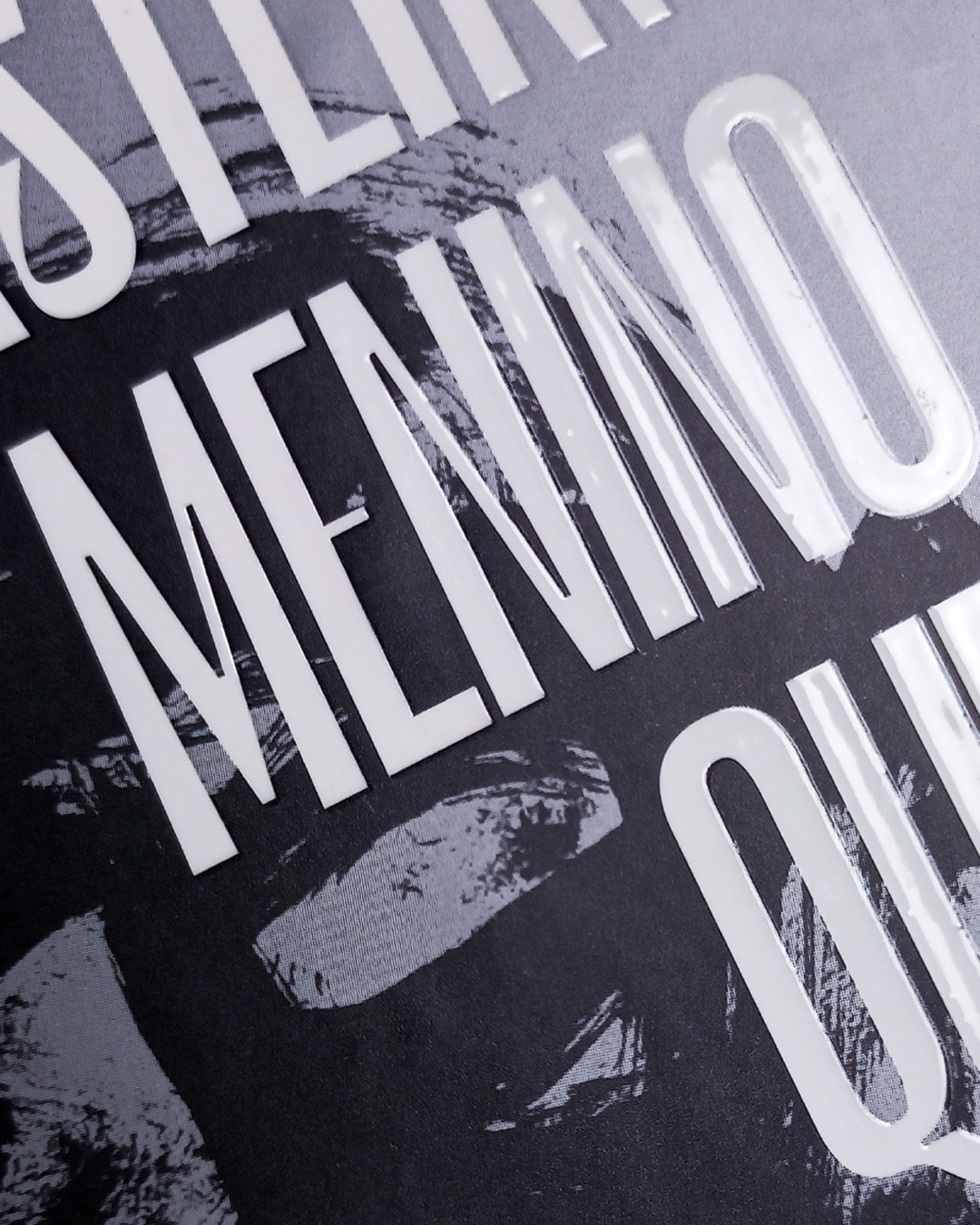 The title is playfully designed with Le Murmure (Velvetyne) in order to represent a stylised question mark. The sharpness of the composition forms alludes to Expressionist aesthetics and the use of alternatives m, n, q, j, and r adds an organic color to the otherwise squareness of the composition.