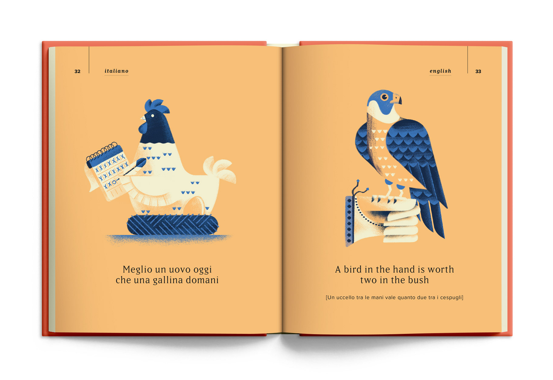 Una mela al giorno (“an apple a day”) is an illustrated anthology about proverbs and expressions in four different languages (Italian, English, Spanish and French) that often say the same things in different ways, a small guide for travelers and readers fascinated by other cultures and for those who are always looking for an expression that “fits perfectly”.