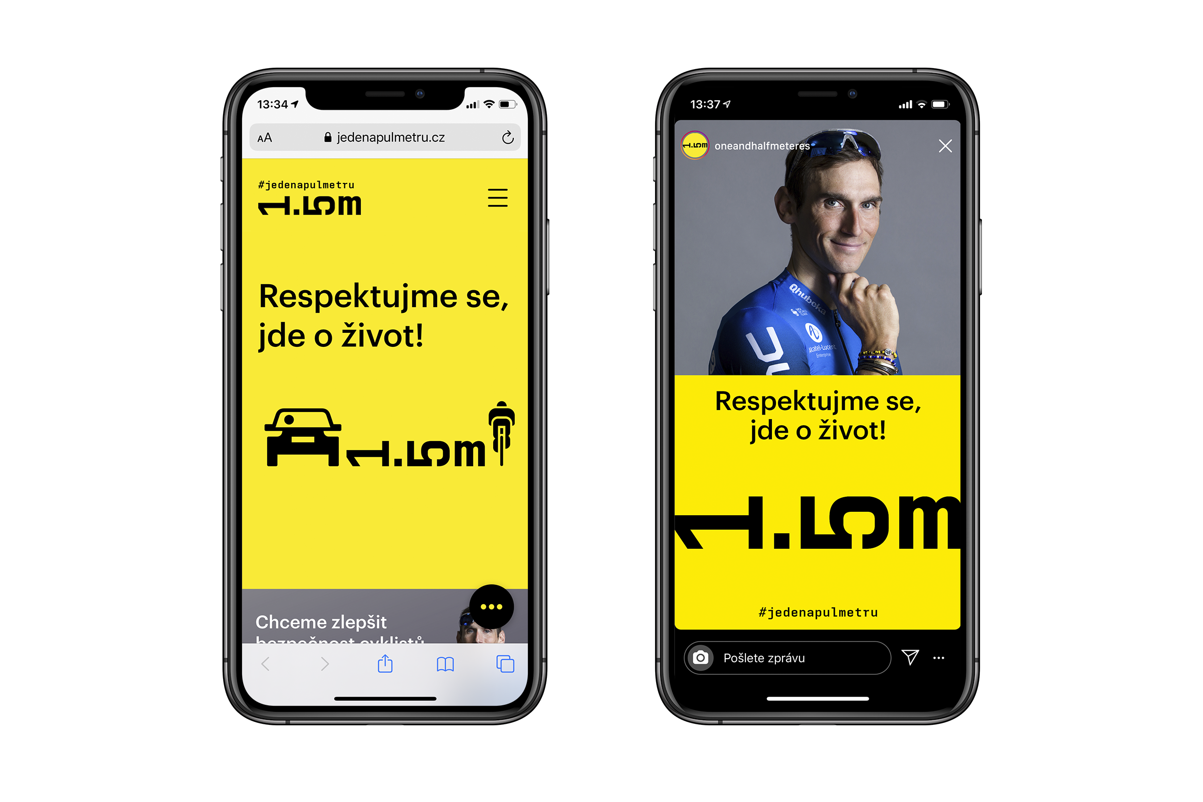 “Let’s respect each other. We want motorists to overtake cyclists 1.5 meters away,” says project initiator Roman Kreuziger, a multiple participant in the Tour de France. He is joined by Slovak cycling star Peter Sagan, motorcyclist Filip Salač, Olympians Petr Vakoč and Jaroslav Kulhavý, The Autoclub of the Czech Republic and the Czech traffic police. That 1.5 m as the appropriate safe distance is a conclusion of a number of scientific studies and as such it is enshrined in law in many European states. In Central Europe, it is currently a symbol of a more universal campaign for greater consideration on the road: “The risk of an accident affects everyone, whether you are training for the Tour or going to buy groceries to your local deli. Also, most cyclists are also motorists and vice versa,” Kreuziger explained. We are happy to join the initiative with a campaign graphics, which quite commonsensically use a warning color and an appearance of a ruler.