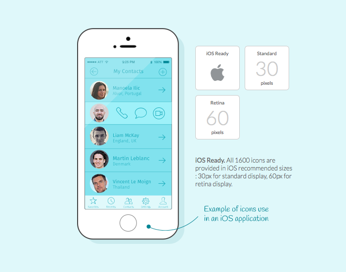 That’s why Lato, with its almost geometric style and a beautiful counterspace and generous aperture was a perfect companion for the icons. A great benefit of using Lato: it’s provided via Google fonts. Most users would have it already downloaded in their browser cache when they visit the website, make it faster to load.