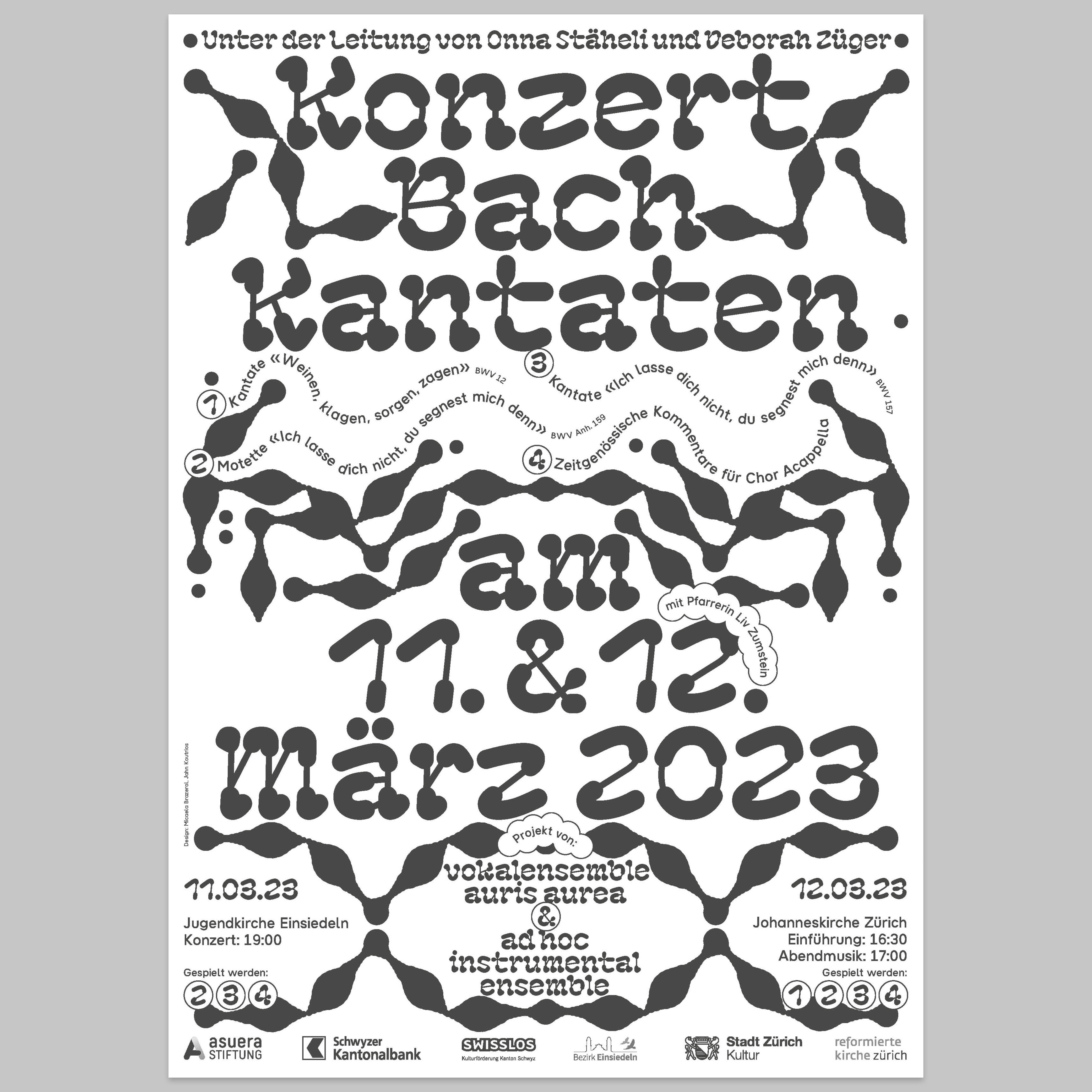 Bach Kantaten concerts Contributed by Moritz Appich on May 25th, 2023. Artwork published in March 2023. Jahn Koutrios. License: All Rights Reserved. A booklet, a poster, and flyers for the Bach Kantaten concerts at the Johanneskirche in Zürich Switzerland. Designed by Micaela Brazerol and Jahn Koutrios using G2 Ciao and a pre-release version of G2 Gitmek. Jahn Koutrios. License: All Rights Reserved. Jahn Koutrios. License: All Rights Reserved. Jahn Koutrios. License: All Rights Reserved. Typefaces More about G2 CiaoGet G2 CiaoMore about G2 Gitmek Formats Posters/Flyers (5869) Booklets/Pamphlets (2431) Topics Event (3286) Music (6440) Designers/Agencies Jahn Koutrios (5) Micaela Brazerol (2) Tagged withposters (1444)flyers (371)book covers (5978)black and white (2038)center-aligned text (1955)Johann Sebastian Bach (16)concert & gig posters (523)Johanneskirche Zürich (1)booklets (582)type on a curve (1149)contrasting sizes (680)Rorschach tests (5)typeface combinations (4023)pre-release uses (737)German (language) (2579)classical music (286) Artwork location Switzerland (1133) Zürich (311) In SetsPoster (Juan Ortega) (123)poster (han noory) (11)Mendo (Florence Kinkead) (8) Post a comment Name Email – will not be published Website Your response Submit Comment More G2 Ciao in use Sheltrc. 2023Mr. HenryContributed by Mr. Henry Staff Pick Bruksanvisning – a dog-like screen print workshop2021Tonje Lona EriksenContributed by Massimiliano Audretsch KASK School of Arts Alumni Club website2021Naomi GreensteinContributed by Massimiliano Audretsch Sponsor More in Music Sea Sleepers poster2023David MatosShutupandanceContributed by David Matos Bengt Hallberg & Kjell Bækkelund – Contrasts album art1968SidContributed by Florian Hardwig You Don’t Have to be Black to Love the Blues by Junior Parker1971Daniel Cooper-BeyContributed by Stephen Coles Beat Rodeo – Staying Out Late With album art1985Carl GrassoContributed by Javi Gonzalez More in Booklets/Pamphlets Navigating Change Through Conscious Design Education: Institutional Plan 2025–2028c. 2025Pedro LoboContributed by HAL Typefaces Judy Chicago – Revelations exhibition, Kunsthalle Recklinghausenc. 2025Ten Ten TeamContributed by Ten Ten Team Tarot instruction manual2019Ana Belén AgüeroContributed by Ana Belén Agüero Imprenta “La Fleca”2021Ekaitz SánchezContributed by Gerard Sierra More Fonts In Use Wuträumec. 2024Anna-Lena SchmittJosephine SchröderContributed by Lea Johanna Becker Staff Pick The Essence of the Hay2020ABCDesignDmitry MordvintsevSvetlana DanilyukContributed by Adelina Shaydullina Staff Pick Lyon Confluence, 15 ans déjà2018Bureau 205Contributed by 205TF Staff Pick Built by Buffalo2013Built by BuffaloContributed by Stephen Coles Staff Pick