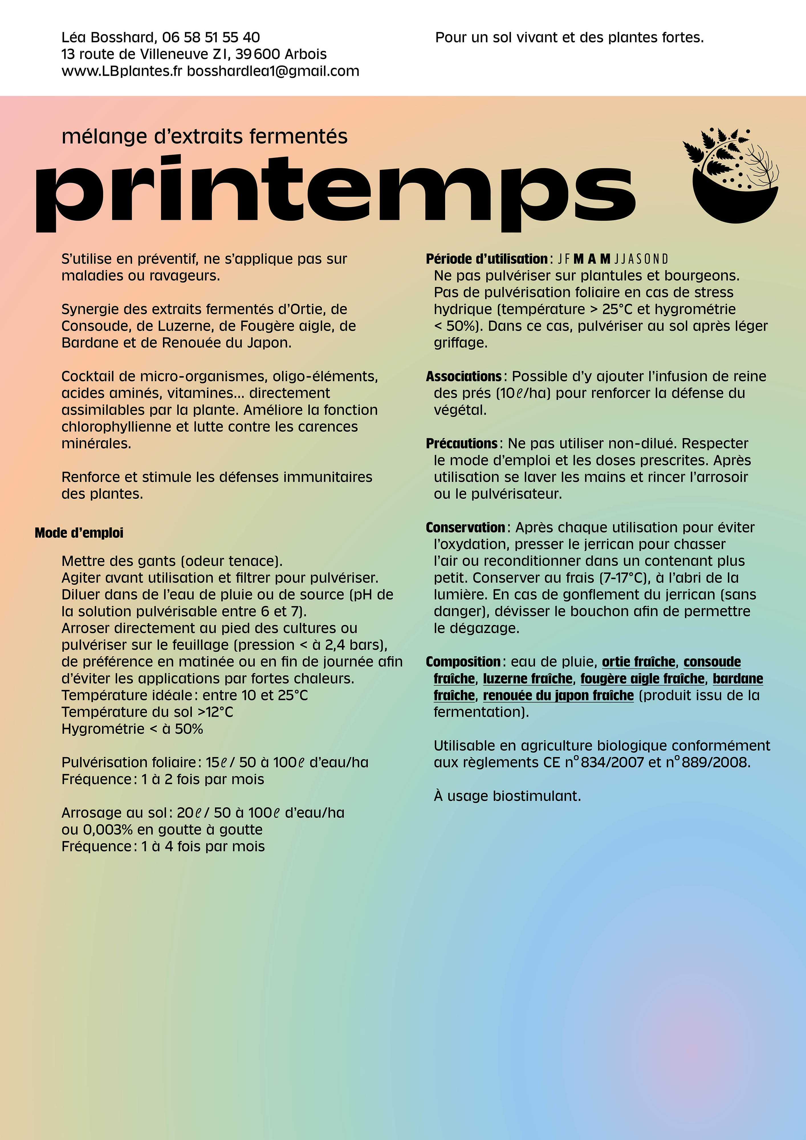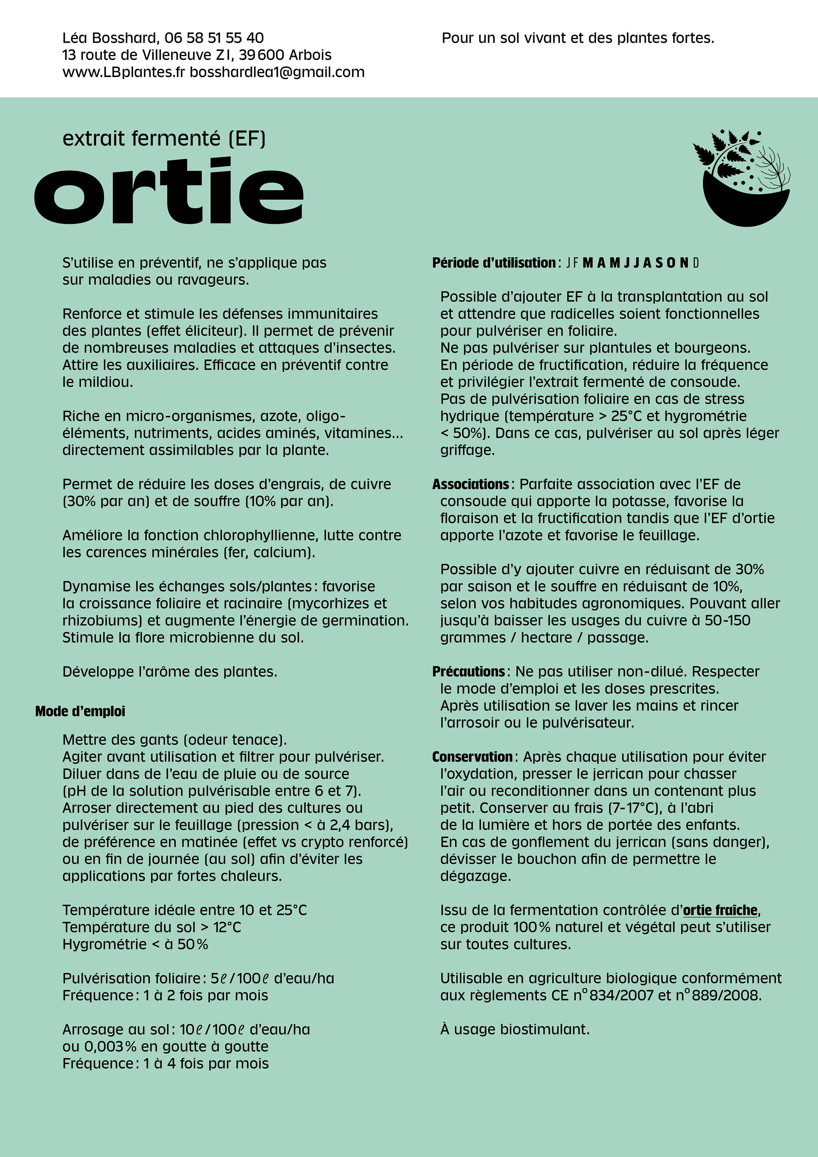 The primary purpose of these extracts is to stimulate plants and enable them to better assimilate the elements available in the soil, with indirect effects to help plants defend themselves against certain diseases or insects. A mixture of these different extracts can therefore reduce the use of chemical inputs and fertilisers.