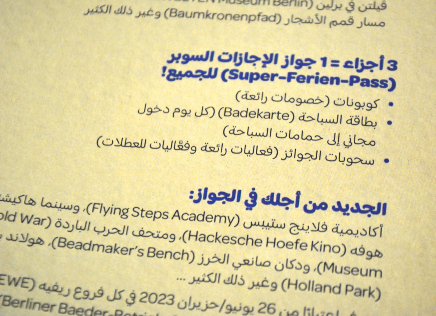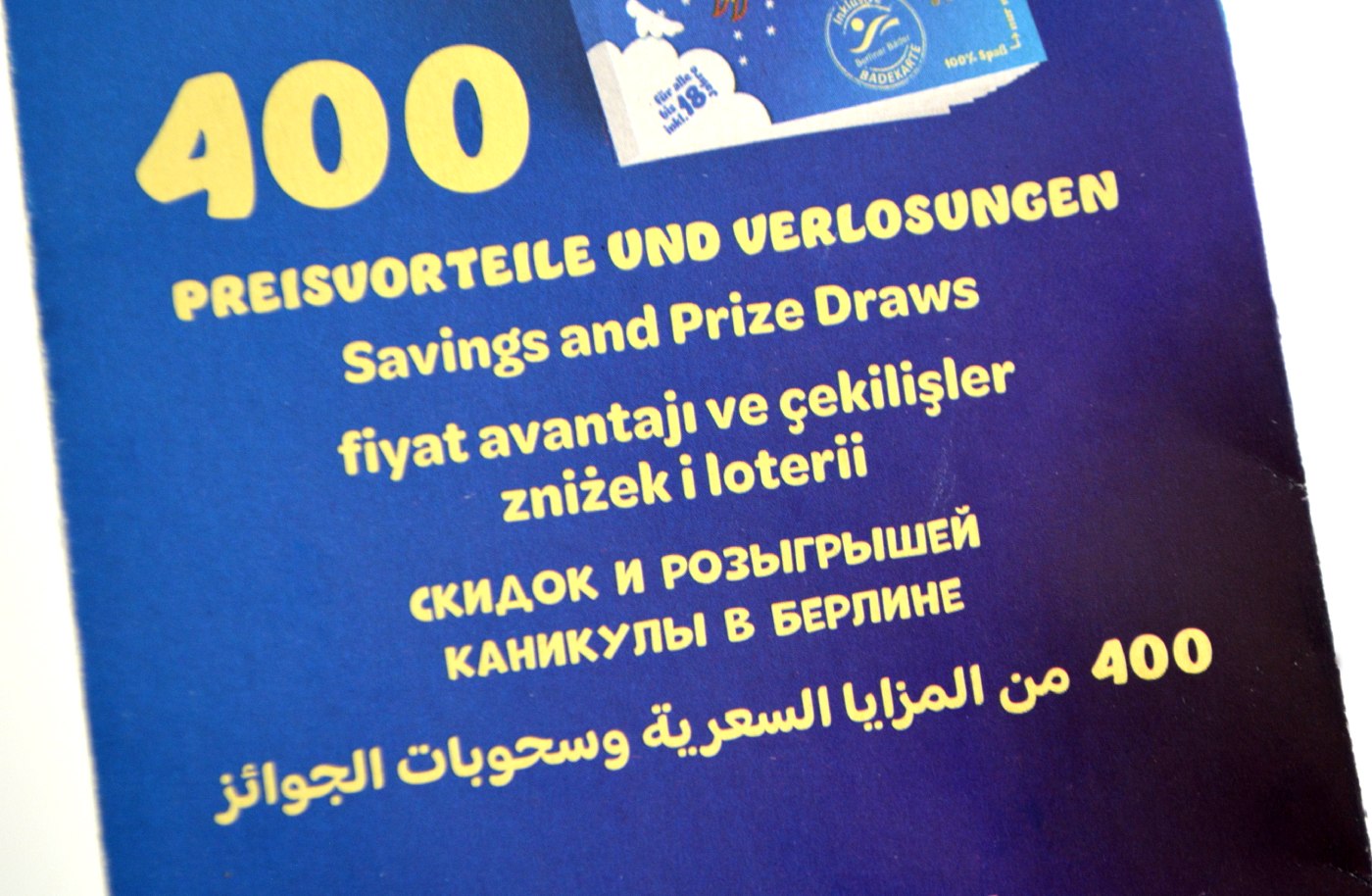 Darden Studio’s Omnes including Omnes Arabic is used for a leaflet advertising Berlin’s Super-Ferien-Pass.
