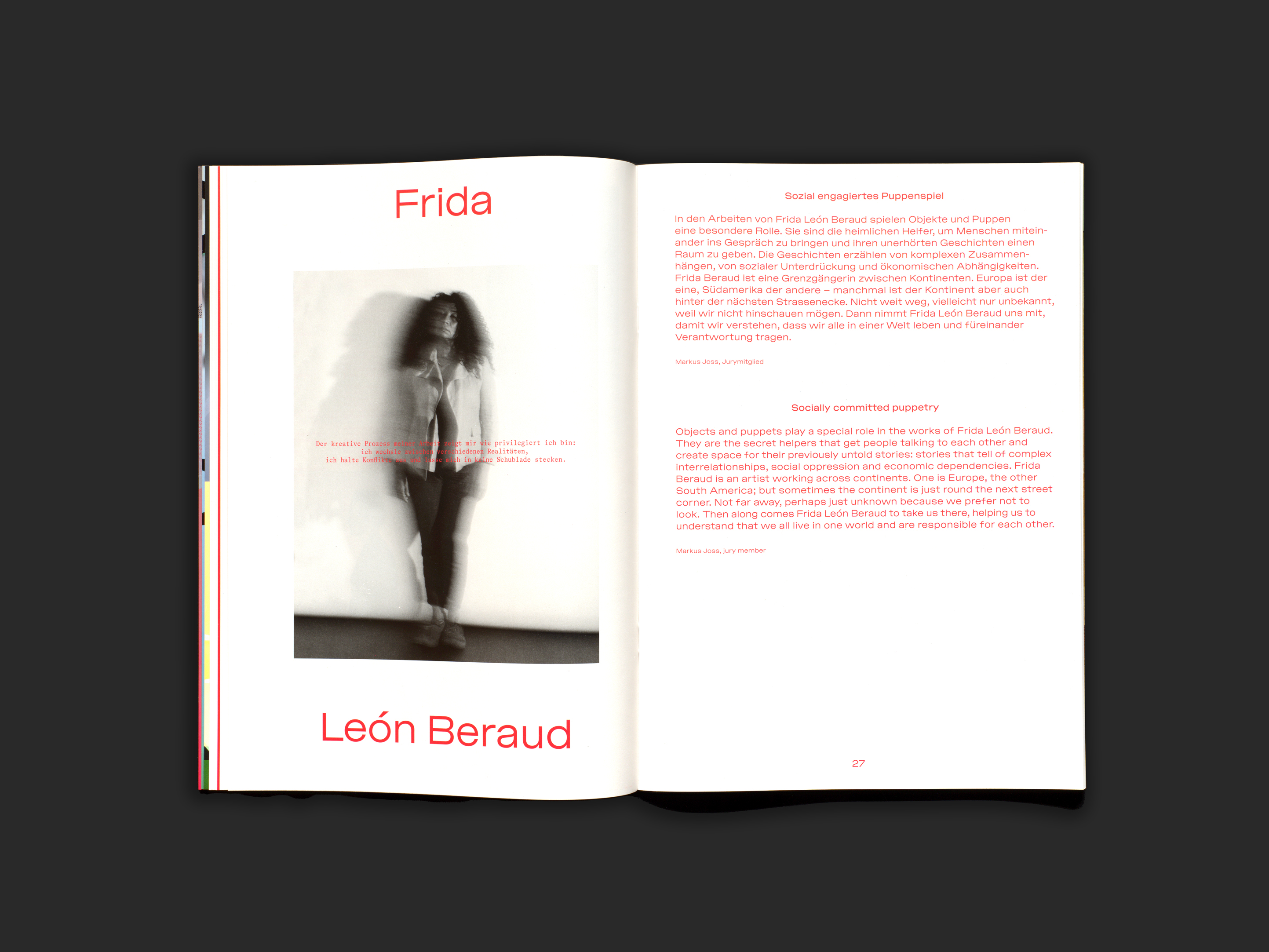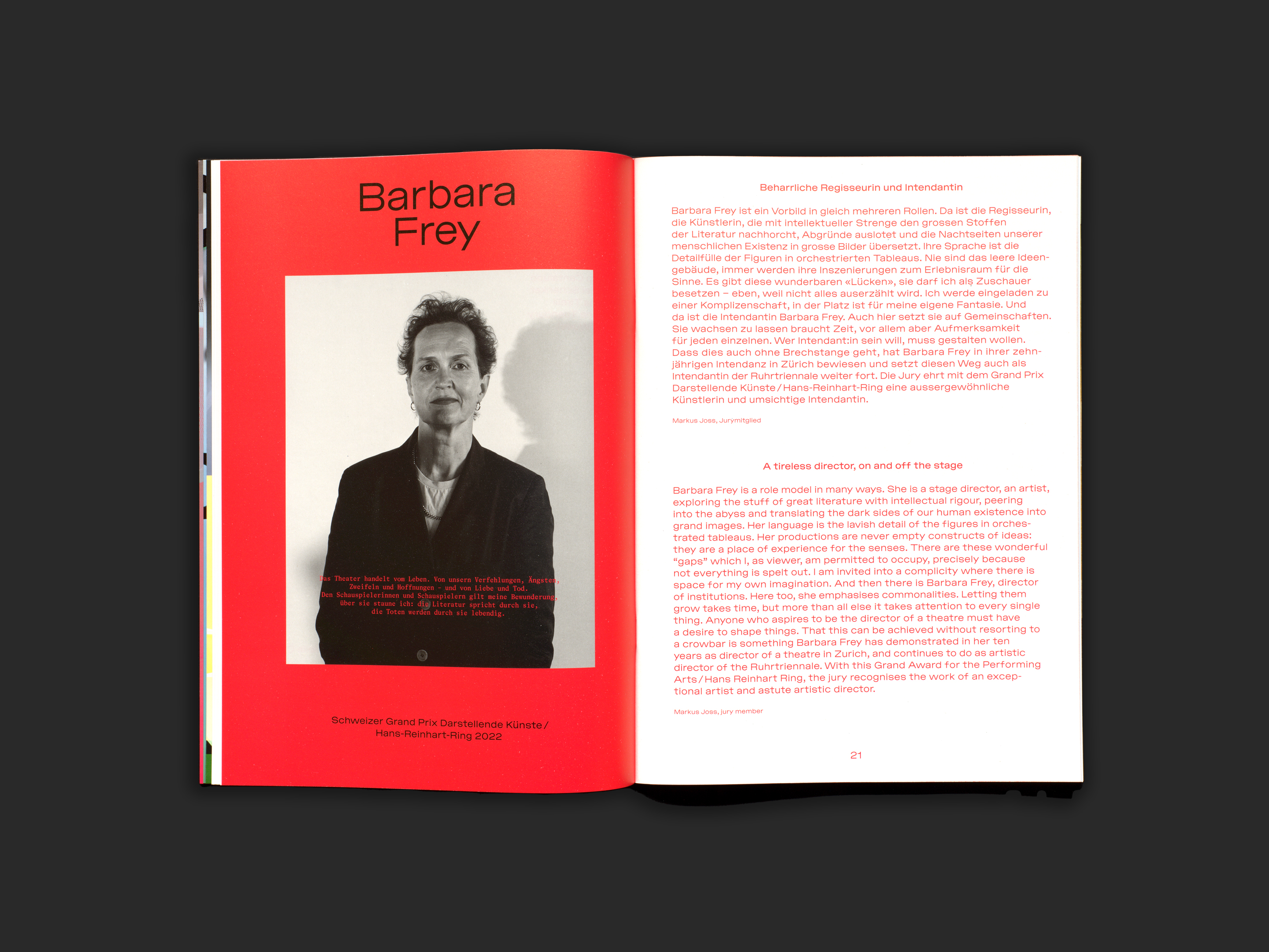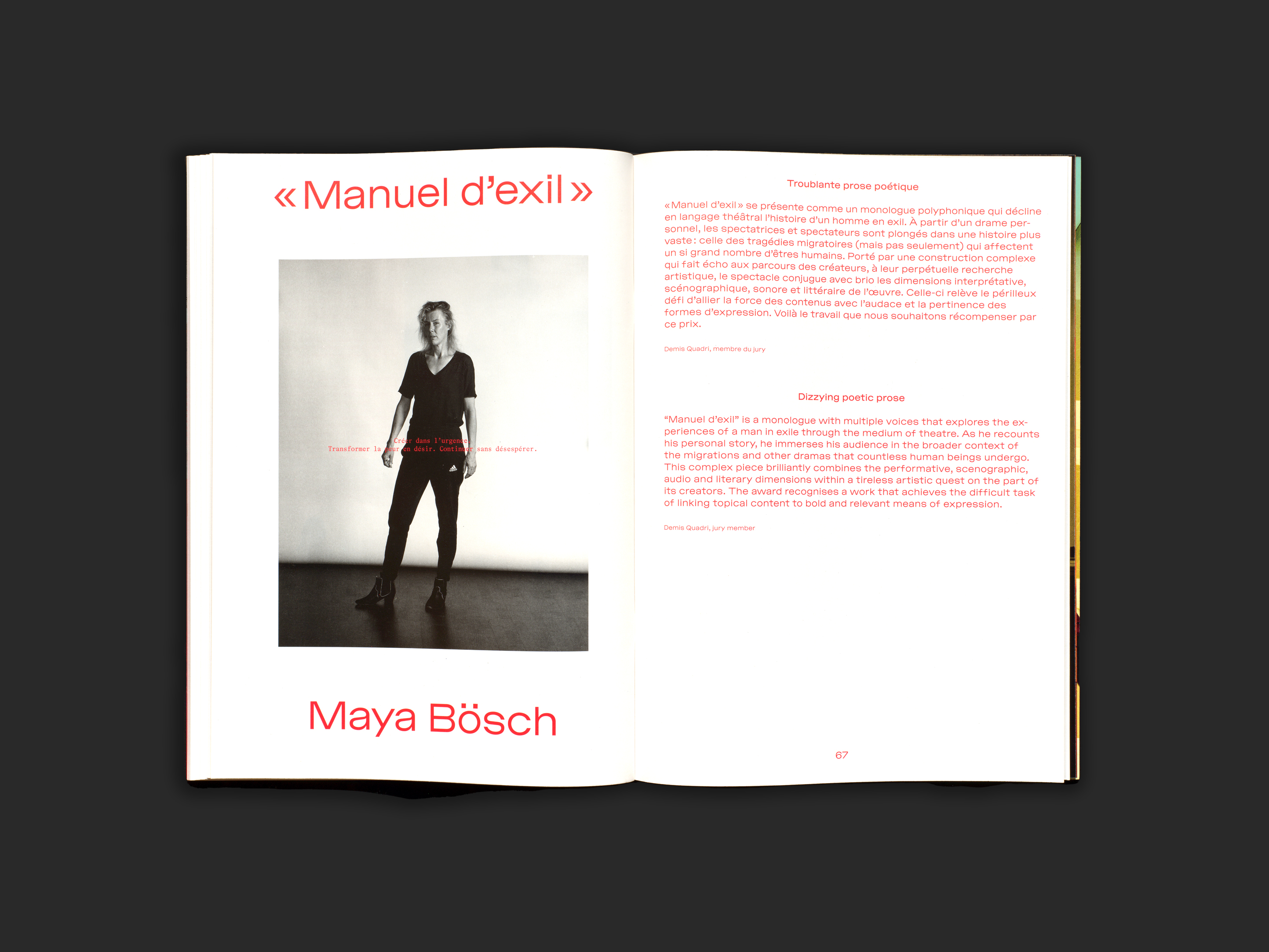 Swiss Performing Arts Awards 2022 Contributed by Source Type on Jun 21st, 2023. Artwork published in 2022. Source: www.adelinemollard.ch Adeline Mollard. License: All Rights Reserved. The booklet for the Swiss Performing Arts Awards 2022 was designed by Adeline Mollard, with photos by Charlotte Krieger. Chroma ST is used throughout the publication, for body copy and headlines. It is supported by LL Bradford Mono for the text on the photographs. Source: www.adelinemollard.ch Adeline Mollard. License: All Rights Reserved. Source: www.adelinemollard.ch Adeline Mollard. License: All Rights Reserved. Source: www.adelinemollard.ch Adeline Mollard. License: All Rights Reserved. Source: www.adelinemollard.ch Adeline Mollard. License: All Rights Reserved. Source: www.adelinemollard.ch Adeline Mollard. License: All Rights Reserved. Source: www.adelinemollard.ch Adeline Mollard. License: All Rights Reserved. Source: www.adelinemollard.ch Adeline Mollard. License: All Rights Reserved. Source: www.adelinemollard.ch Adeline Mollard. License: All Rights Reserved. Source: www.adelinemollard.ch Adeline Mollard. License: All Rights Reserved. Source: www.adelinemollard.ch Adeline Mollard. License: All Rights Reserved. Typefaces More about Chroma STGet Chroma STMore about LL Bradford MonoGet LL Bradford Mono Formats Booklets/Pamphlets (2432) Topics Governmental/Civic (738) Performing Arts (1013) Designers/Agencies Adeline Mollard (8) Tagged withbooklets (583)pre-release uses (737)Swiss Federal Office of Culture (BAK) (10)Swiss Culture Awards (5)dance (223)choreography (13)multilingual (2704)German (language) (2582)French (language) (2597)Italian (language) (617)Romansh (language) (13)English (language) (2512)book covers (5985)back covers (2321)book interiors (3763)colored body text (952)guillemets («») (187)title pages (1066)ragged right text (1063)two columns (553)awards (113) Artwork location Switzerland (1133) Zürich (311) In SetsSource Type (Source Type) (12)Designs by Women (Fonts In Use Staff) (3709)Type Designs by Women (Fonts In Use Staff) (1950)jimenea (Jimena LUJAM) (4)Colors (Lucas Bevilaqua) (862)Minimal/Clean (Lucas Bevilaqua) (425)Pairings (Lucas Bevilaqua) (578)Serif Mono (Lucas Bevilaqua) (5)Photography (Lucas Bevilaqua) (161)2 Languages (Lucas Bevilaqua) (17)Skybar (Rafael Versiani) (6)Beautiful Typesetting (Lucas Bevilaqua) (684) Post a comment Name Email – will not be published Website Your response Submit Comment More LL Bradford Mono in use COURAGE by LOS YORK2024LOS YORKContributed by WELTKERN® Typefaces Swiss Performing Arts Awards 20212021Adeline MollardContributed by Source Type CellarSpace2022Swear WordsContributed by NaN Staff Pick Sponsor More in Governmental/Civic Federal Reserve Bank San FranciscounknownContributed by Paul Shaw Regional Transportation Authority (RTA) rebrandc. 2023SpanJohn PobojewskiValeria BernalContributed by Nick Adam German Federal Parliament Corporate Identity2009Büro UebeleContributed by Indra Kupferschmid Staff Pick Gottardo 2016 stamps2016Vaudeville StudiosMartin BrunnerBeni MorardContributed by Fonts In Use Staff More in Booklets/Pamphlets Bien Vieillir Ensemble exhibition and catalogue2021République StudioContributed by République Studio Bremer Philharmonikerc. 2019oblik identity designContributed by Production Type Wellington to Johnsonville Souvenir Time-Table, New Zealand Railways1938New Zealand Railways studioContributed by Blythwood Dublin Fringe Festival 2019c. 2019NugnoContributed by Nikolas Wrobel More Fonts In Use HAK Studiosc. 2021SemiotikContributed by Gayaneh Bagdasaryan Staff Pick Techno Cafe2014Fabienne FeltusBureau FContributed by Michael Hochleitner Staff Pick Schrijversportretten2010Karen PolderContributed by Matthijs Sluiter Staff Pick Funkadelic – Free Your Mind… and Your Ass Will Follow album art1970David KriegerStanley HochstadtThe GraffiteriaContributed by Rob Hudson Staff Pick