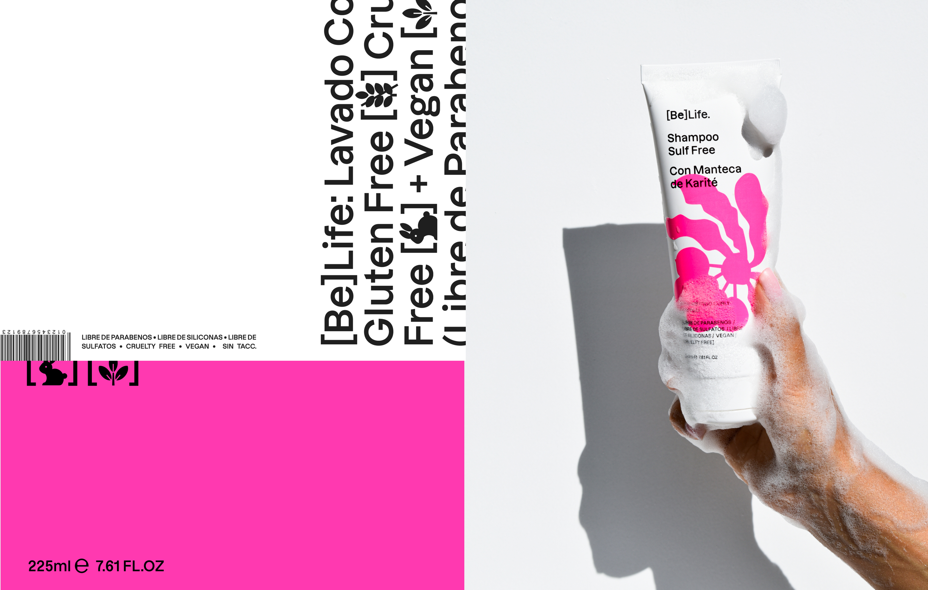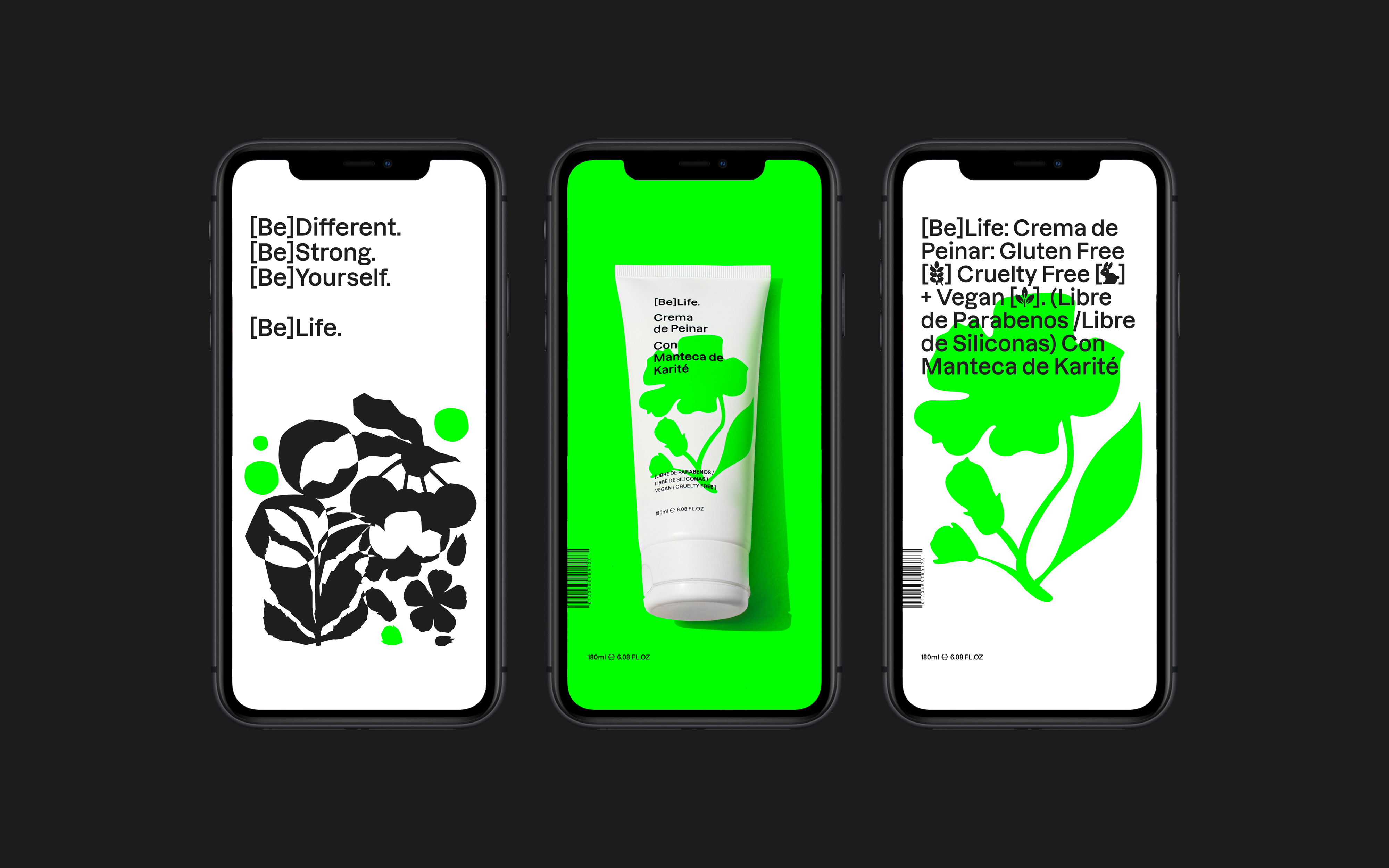 [Be]Life is a young brand dedicated to developing healthy hair products. The products are vegan, cruelty-free, sulfate-free, paraben-free, and petroleum-free. The brand asked us to create its identity, packaging, and web design. The premise was to create something that would capture attention and stand out in the current market within its industry.