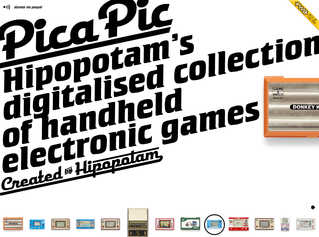 Pica Pic website Contributed by Nick Sherman on Dec 13th, 2013. Artwork published in 2013. Source: www.pica-pic.com License: All Rights Reserved. Pica Pic is an online collection of handheld electronic games. The choice of Crillee seems particularly appropriate, given the era and branding of the devices that are being emulated. License: All Rights Reserved. Typefaces More about DeliscriptGet DeliscriptMore about CrilleeGet Crillee Formats Web (5717) Topics Entertainment (1559) Technology (1507) Designers/Agencies Hipopotam (2) Tagged withvideo games (252)retro/vintage (126)gaming (33) Post a comment Name Email – will not be published Website Your response Submit Comment More Crillee in use Real City Heroes (RCH)2014CoilbookContributed by Aidan Nester Palomino Blackwing pencils and packaging2010Contributed by Stephen Coles Metra tickets, 1990–1991c. 1990unknownContributed by Florian Hardwig Blog Sponsor More in Entertainment The Hellebore Guide to Occult Britain2021Winter-HébertNathaniel HébertContributed by Nathaniel Hebert Jurassic Park 2: The Chaos Continuesc. 1994Ocean SoftwareContributed by tabmok99 Rack-o game, French editionc. 1960unknownContributed by Stephen Coles Red Bull TV Mobile App2013Red Bull Media House GmbHContributed by Letters from Sweden More in Web The California Sunday Magazine website2014Jessica HischeLeo JungContributed by Stephen Coles Tonal blogc. 2019Rob StensonContributed by Matthijs Sluiter Staff Pick Wilson WenzelDesign MWJP WilliamsContributed by Stephen Coles Staff Pick Yellow Fellow2025Yellow FellowAnat GutbergGuy TreflerContributed by Guy Trefler More Fonts In Use Tomorrow Elsewhere2025Pavel KedzichContributed by Pavel Kedzich Staff Pick Slashed-O Cabinet2012Børge MogensenStellar WorksContributed by Nick Sherman Staff Pick Super-Sonic Jazz Festival2017MachineContributed by Florian Hardwig Staff Pick NZZ.ch (2017 relaunch)c. 2017EdenspiekermannContributed by Nils Thomsen Staff Pick