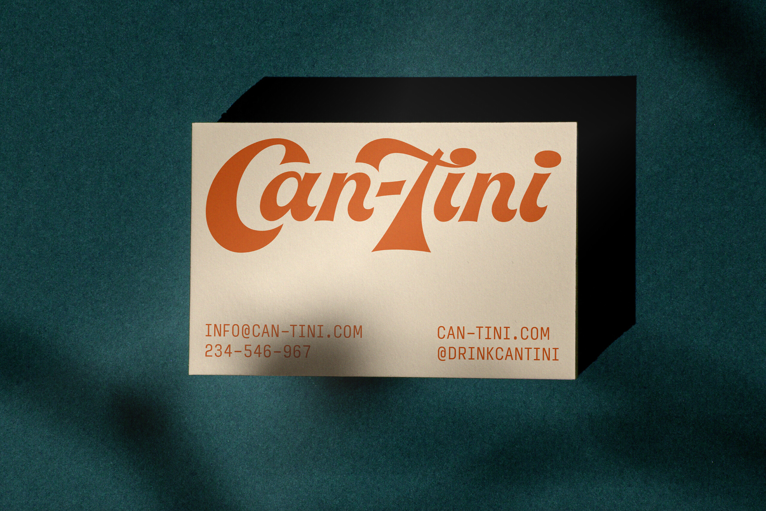 Knowing we wanted to pursue a retro-futuristic direction, we started our research phase by doing a deep dive into late 60s and early 70s Italian magazine archives. We emerged full of valuable insights into the design language of the era and the casual-cool attitude of vintage drinking culture. Using our findings, we created a custom script logo that embodies Can-tini’s playful sophistication and developed a color palette, typographic system, and layout style that, while inspired by the era, was altogether modern and distinct. The logo became the focal point on the cans and boxes, while a repeating pattern added a whimsical touch, complementing the brand’s retro aesthetic.