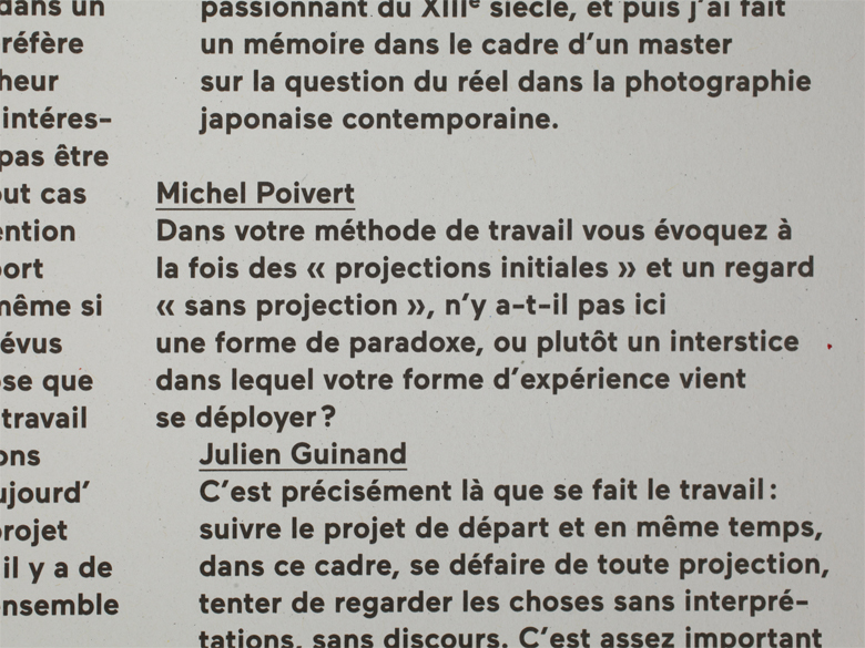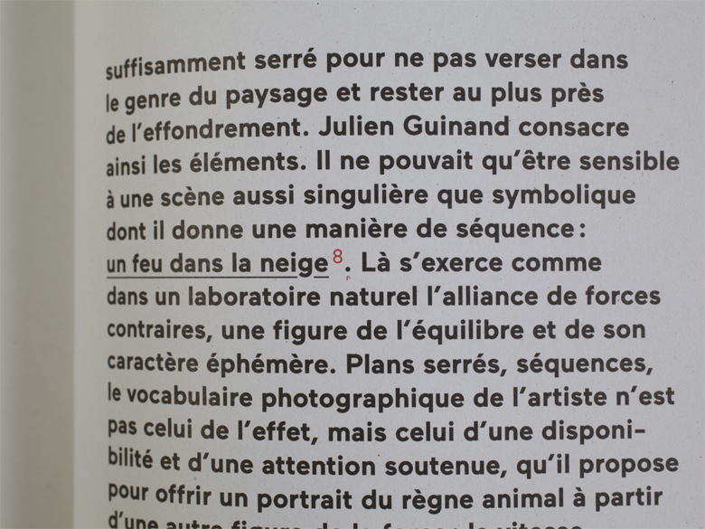 The book “Forces” is showcasing the work of the photographer Julien Guinand. The texts are sets in Maax bold and medium, design by Bureau 205.