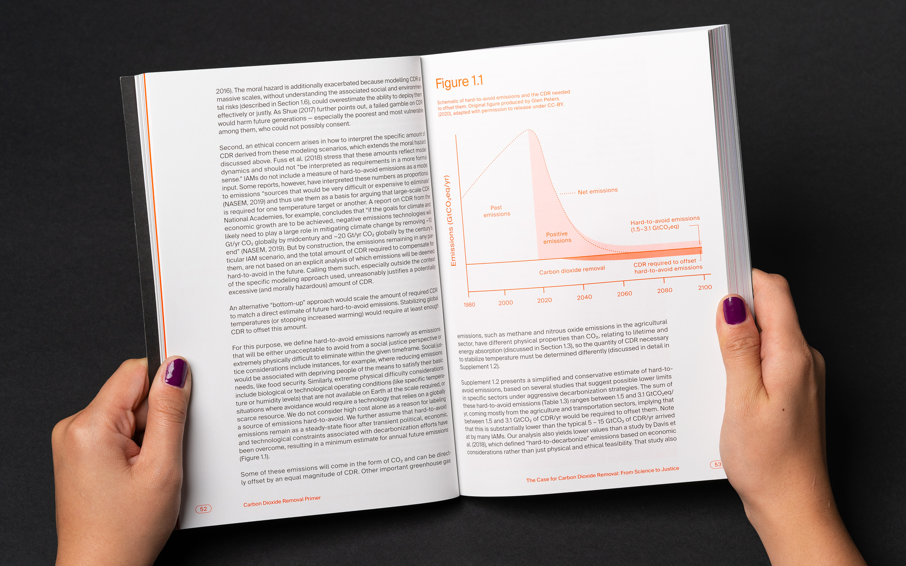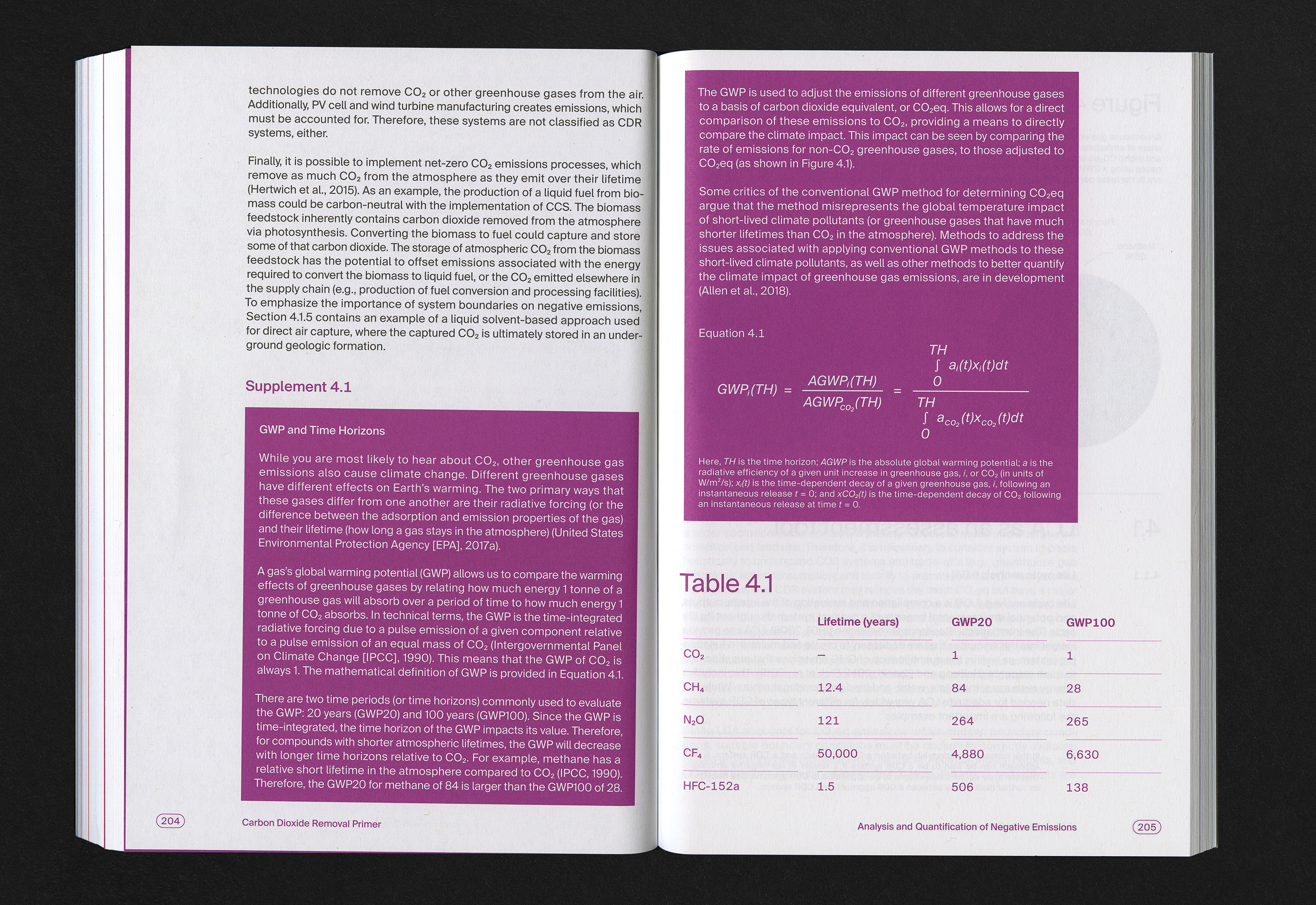 CDR Primer exists as a printed book and website (essentially an ebook), ensuring as wide an audience reach as possible. In order to maximize comprehension and accessibility for the CDR Primer, a single type family was used: Suisse Int’l. A highly legible and meticulously cut font, Suisse provides the necessary versatility and elegance to support long, dense text, scientific formulas, infographics, all while still looking great at large point sizes. While the primer seeks to elevate scientific research through sophisticated, rigorous design, it was essential to avoid weighing the content down with an unnecessary preoccupation with aesthetics. Suisse maintains the caliber and function, while also not over-asserting itself visually. Body text uses its alternate lowercase l (with a tail).