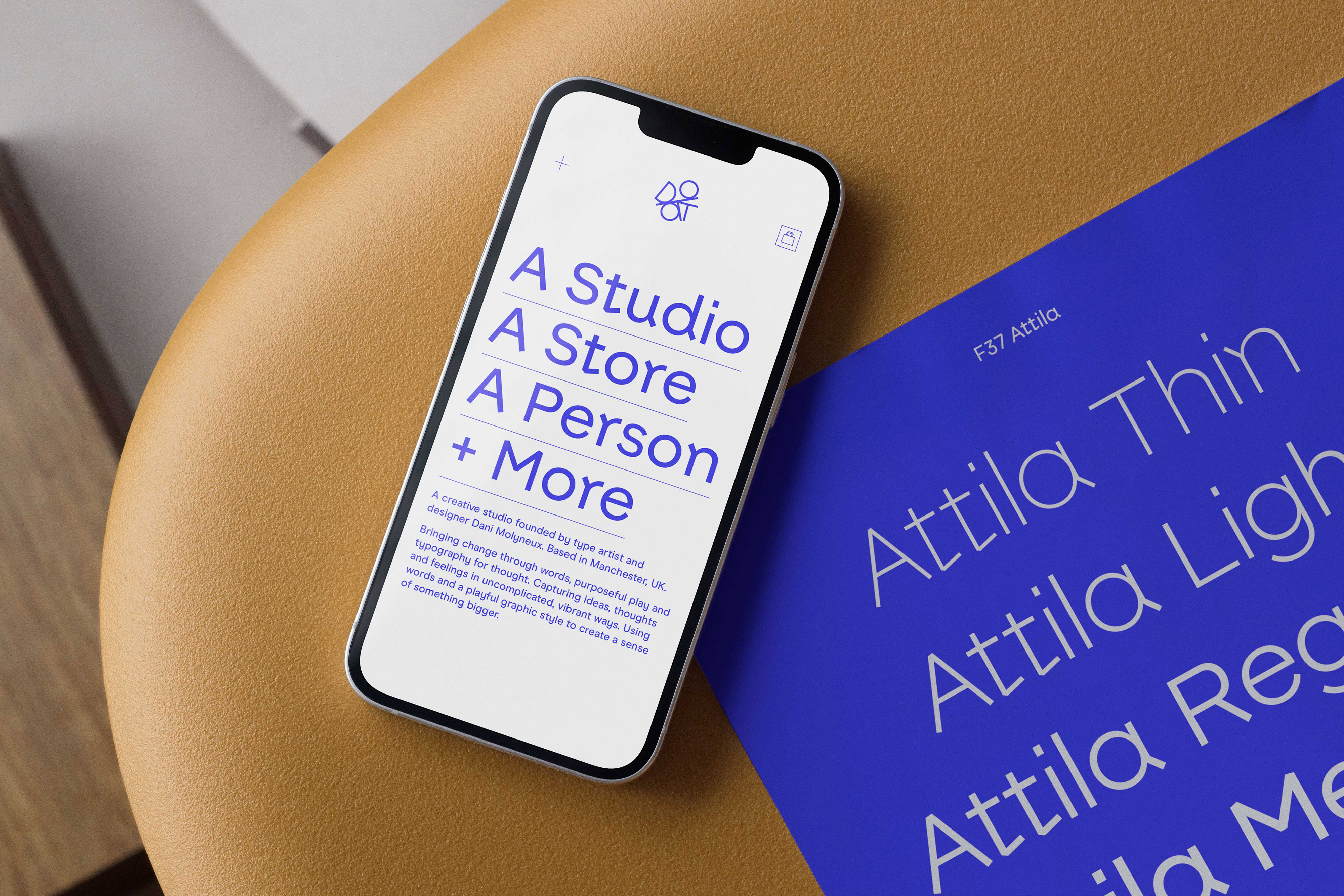 I was looking for something to use as the Dotto brand font suite when I was redesigning the brand identity / website / various applications. I wanted something clean and simple but with a bit of an edge. I loved F37 Attila as it combined a balanced rounded feel with sharp edges. Just subtle enough to make it legible but distinctive enough to set it apart from the usual sans serif. It really complemented the new Dotto brand wordmark and I loved the way I could use it for big statements on the website. I design a lot of lettering with a monoline style and it felt really in keeping with that too. I love the cap A for example. It was pretty much just what I was after – the perfect pairing.