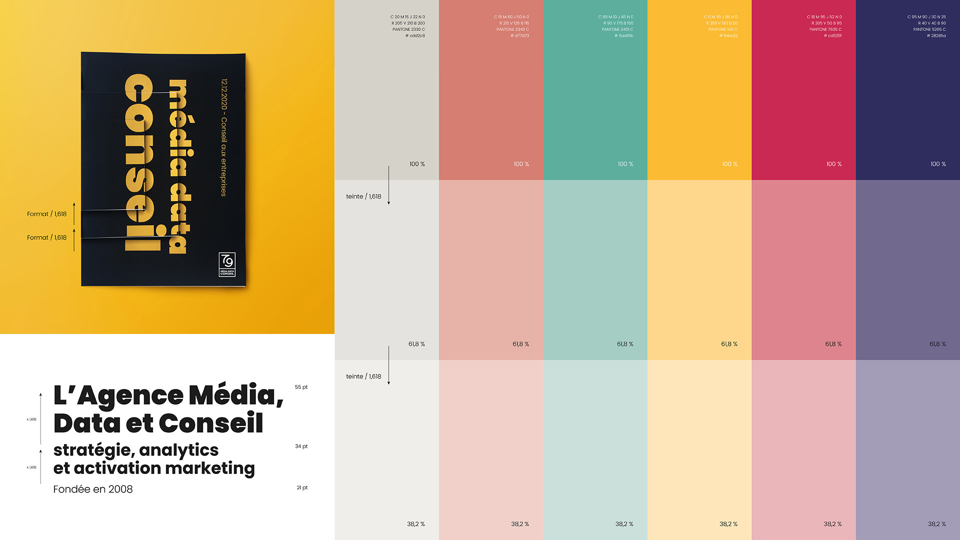 79, a nod to the year of birth of its creators, but also the atomic number of gold… It was enough to pull the thread of the golden ratio, a proportion of 1.618 said to be perfect and ubiquitous around us. A proportion that echoes the agency’s offer: to offer its clients the best media support / efficiency compromise.
