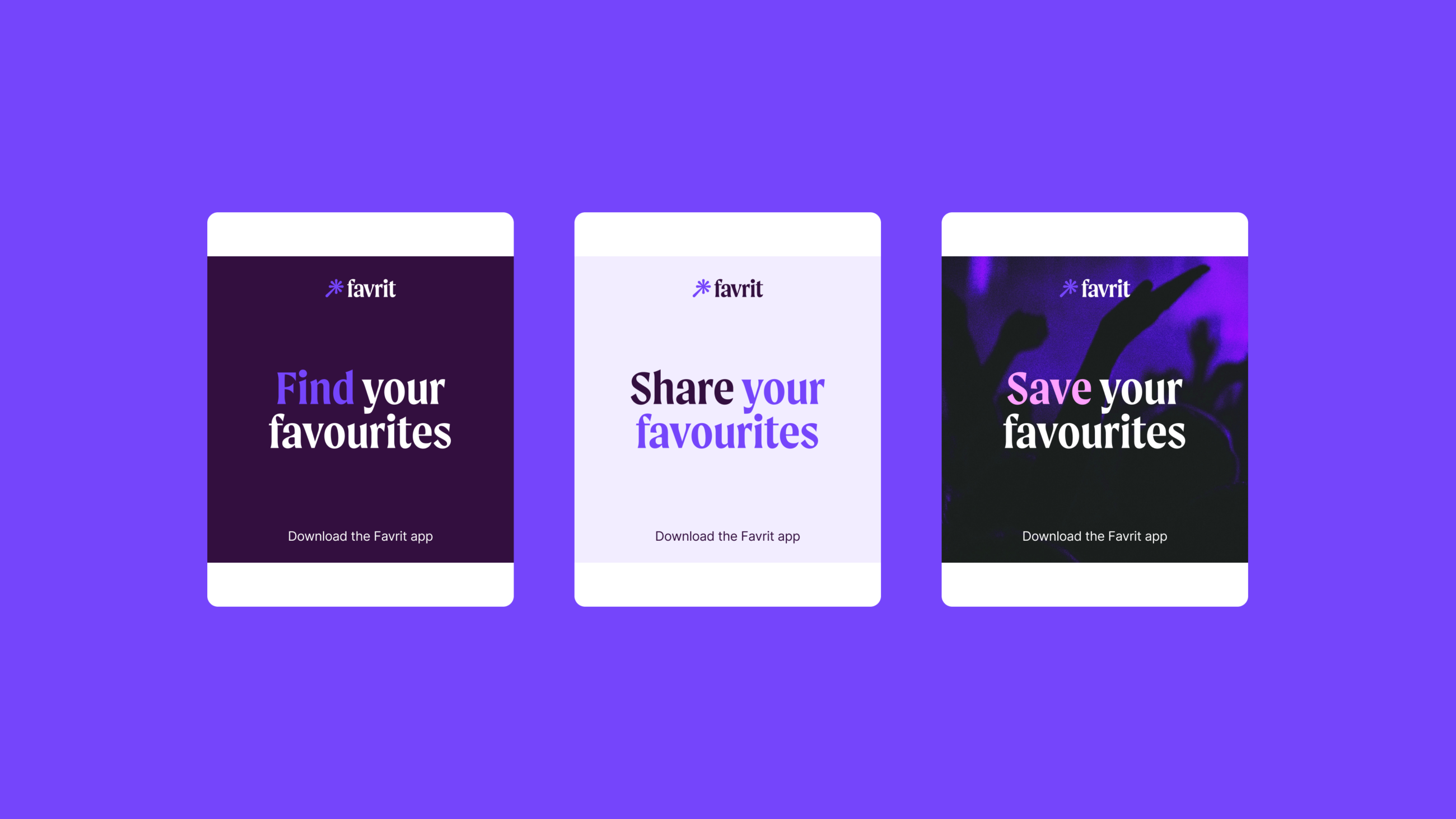 A bold but controlled serif display typeface gave Favrit the perfect voice to communicate the engaging tone of voice, across all screens and mediums. It provides human warmth and a personal sensibility to the brand. Combined with a pragmatic and highly functional sans serif to maximise legibility on smaller copy, the typopgraphy strikes a balance between human warmth and technical precision — a combination also embodied in Favrit’s product.